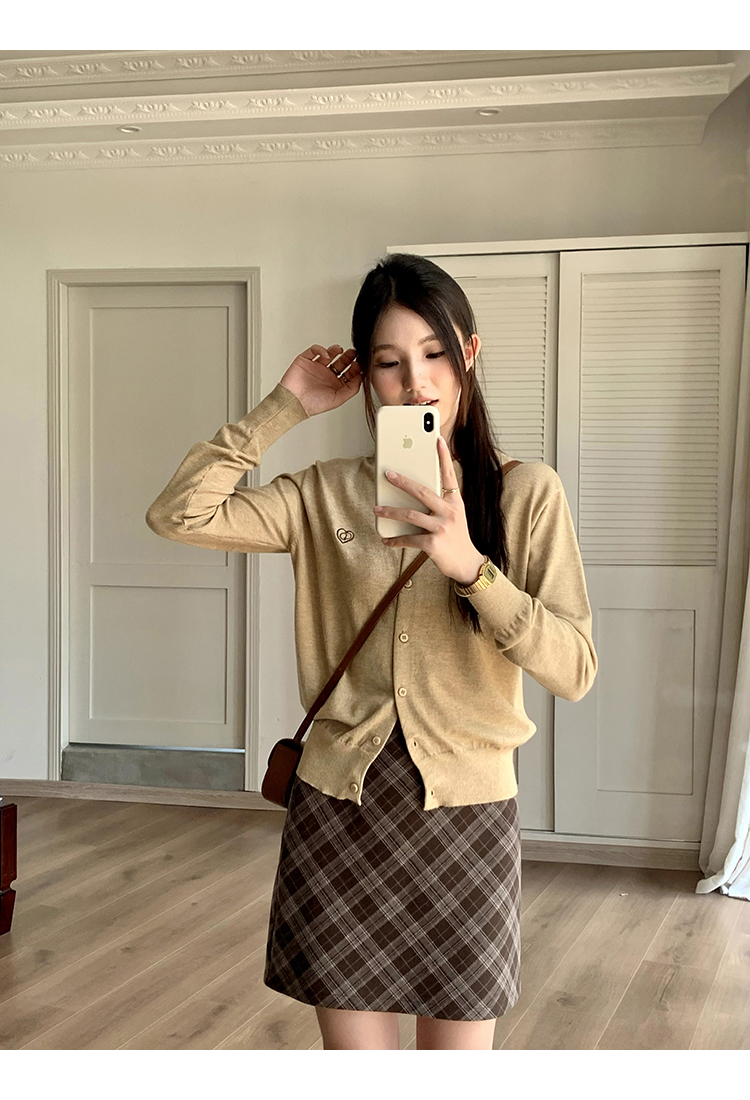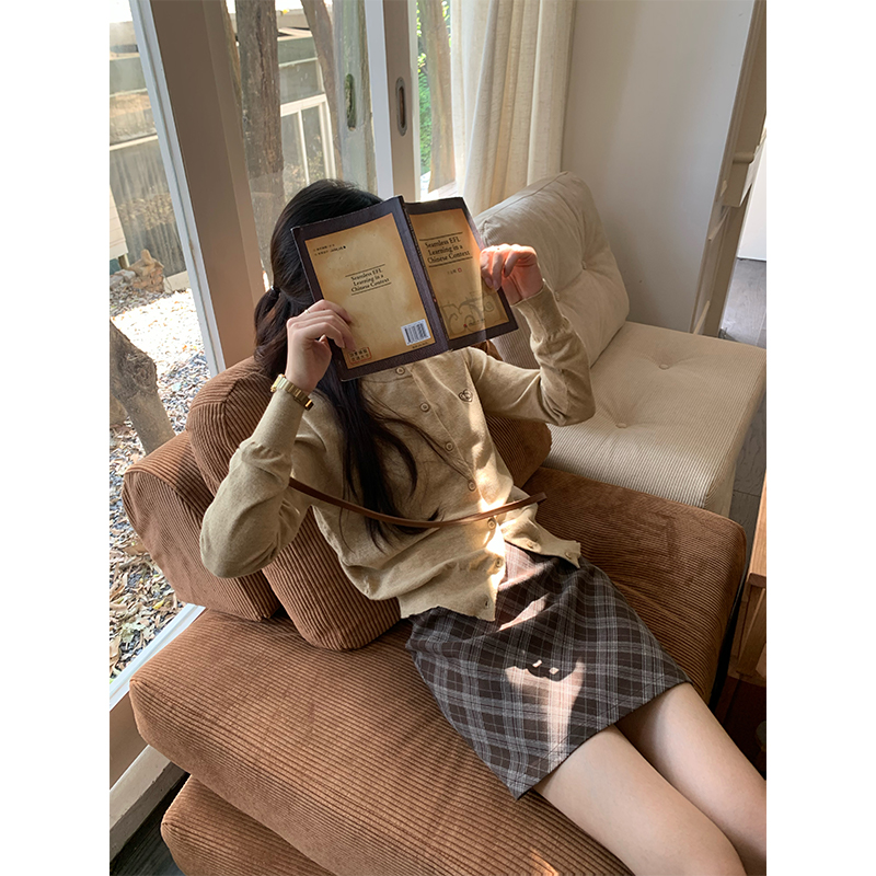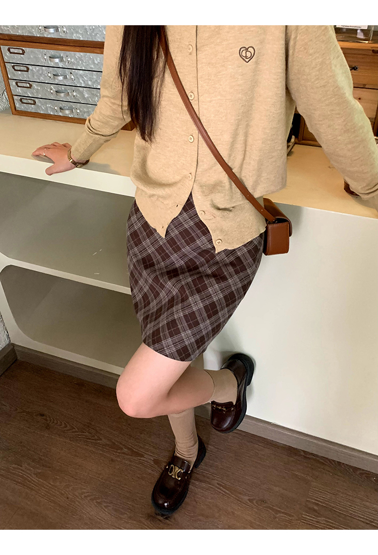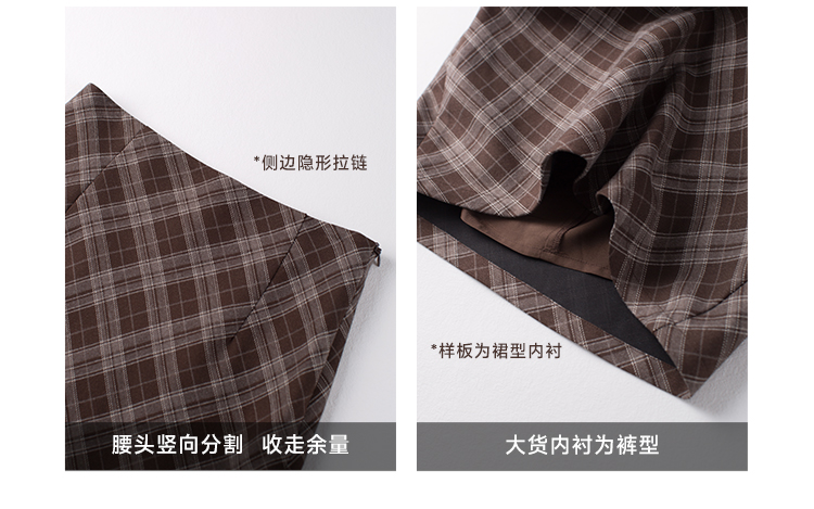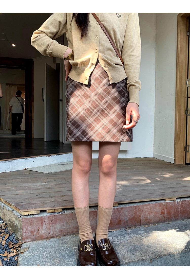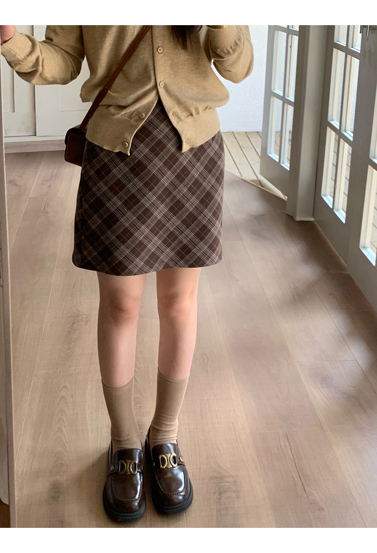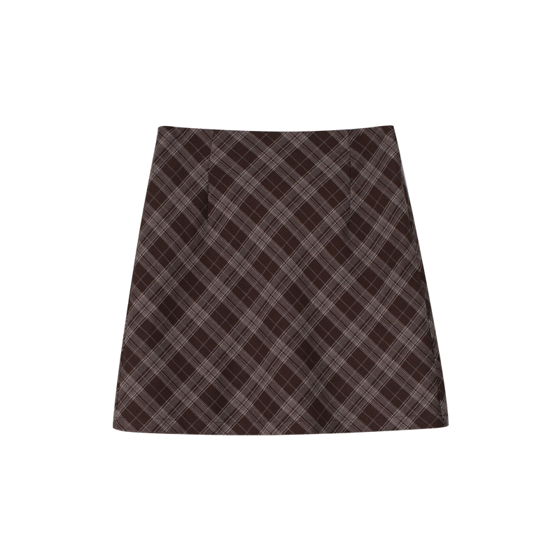cozydays 美式復古咖啡色格紋半裙女秋季溫柔氣質格子高腰a字短裙