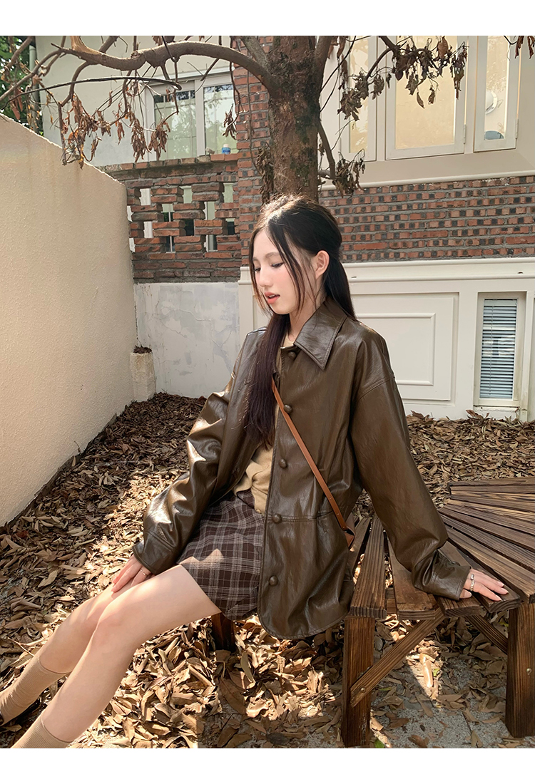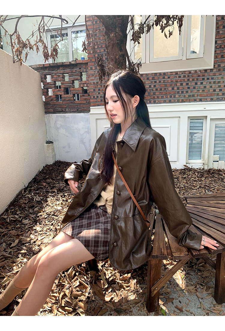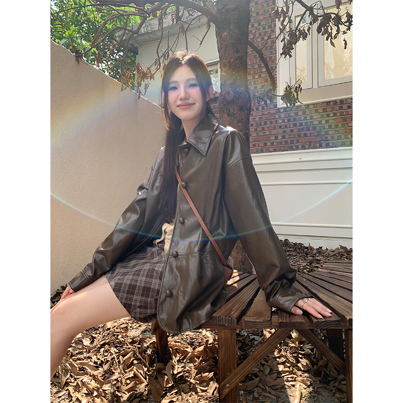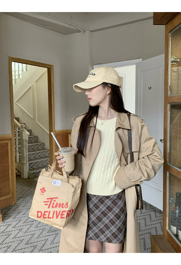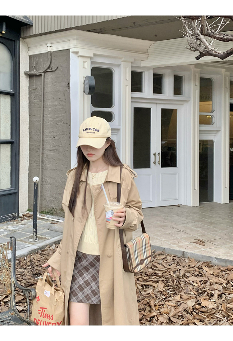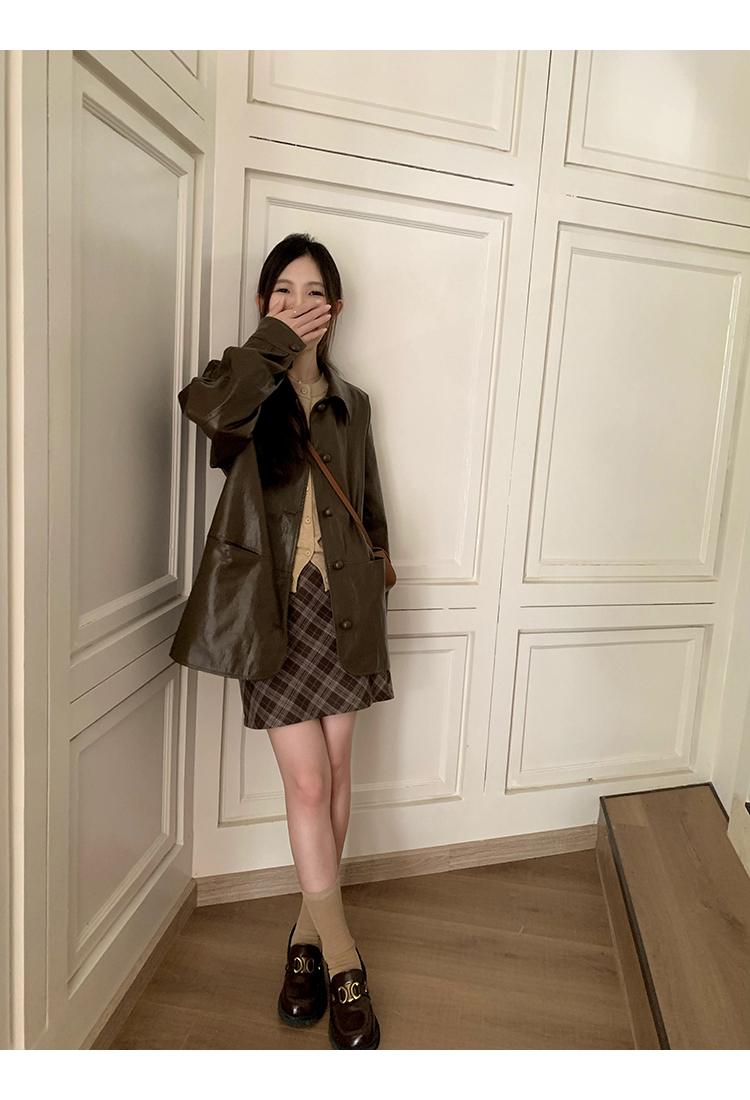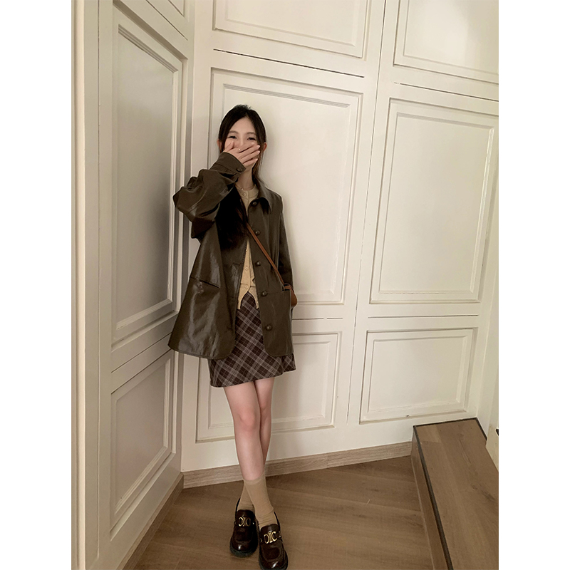 cozydays 美式復古咖啡色格紋半裙女秋季溫柔氣質格子高腰a字短裙