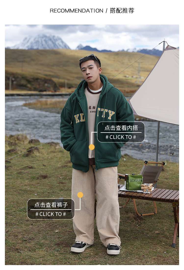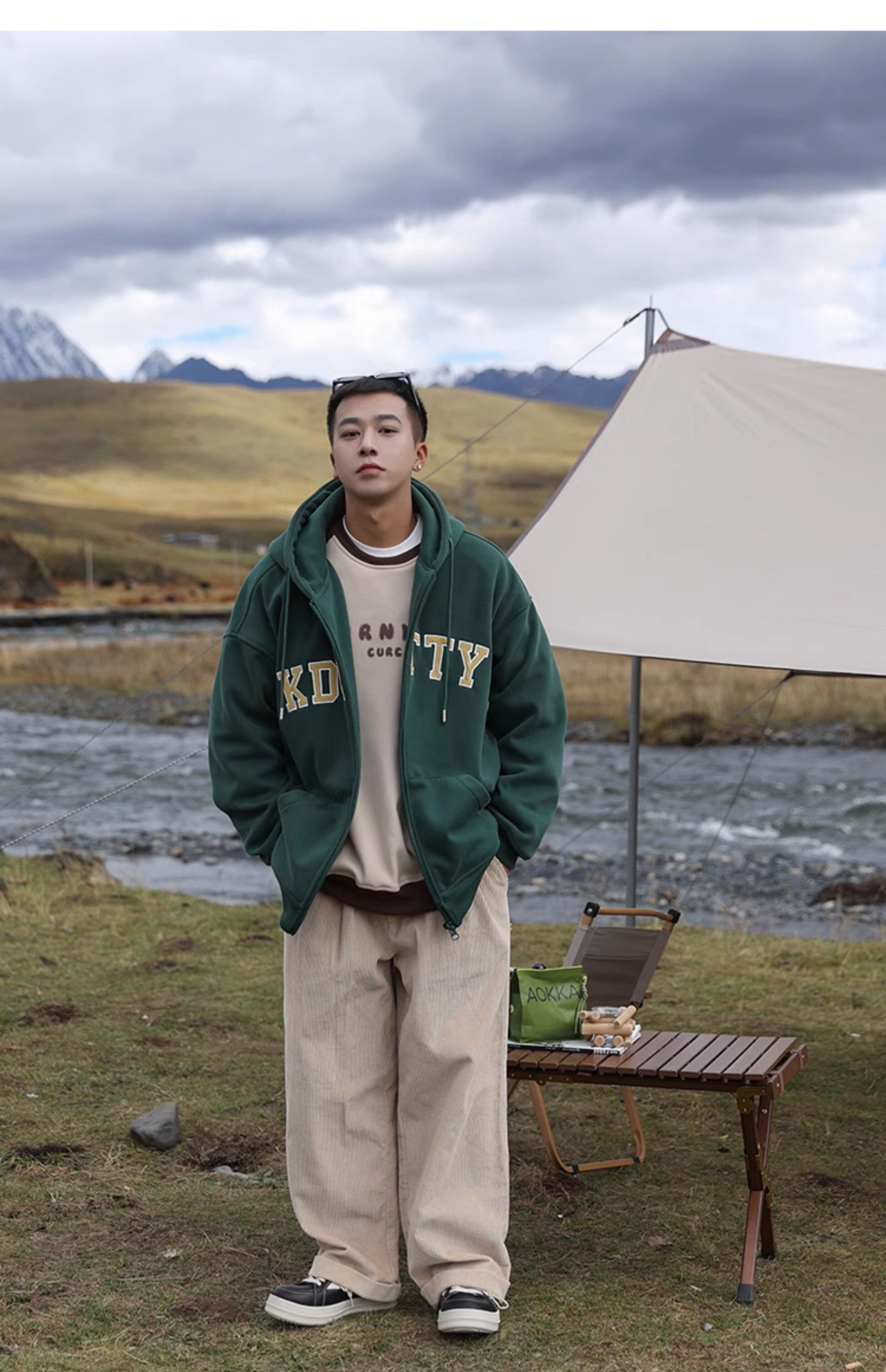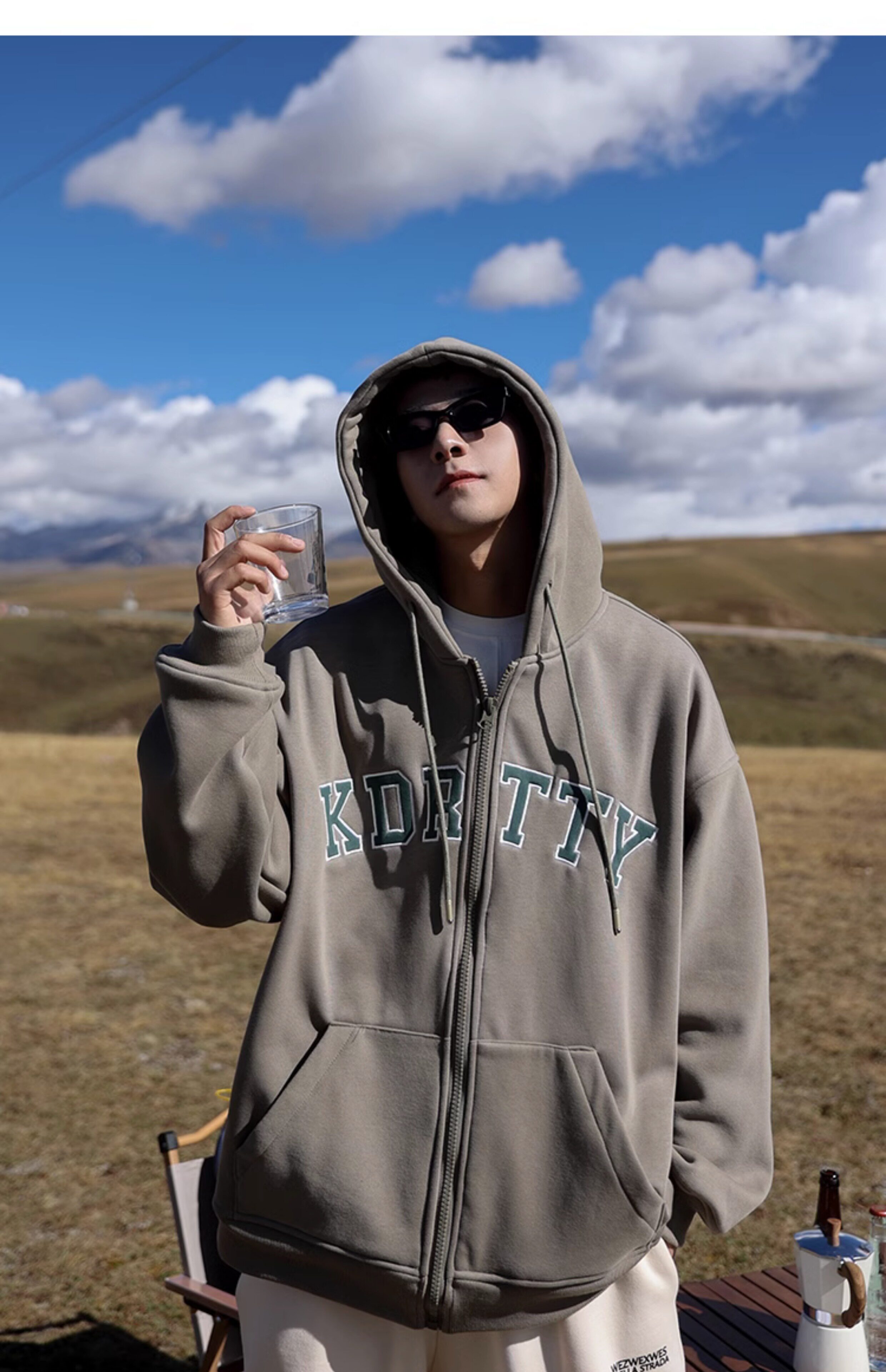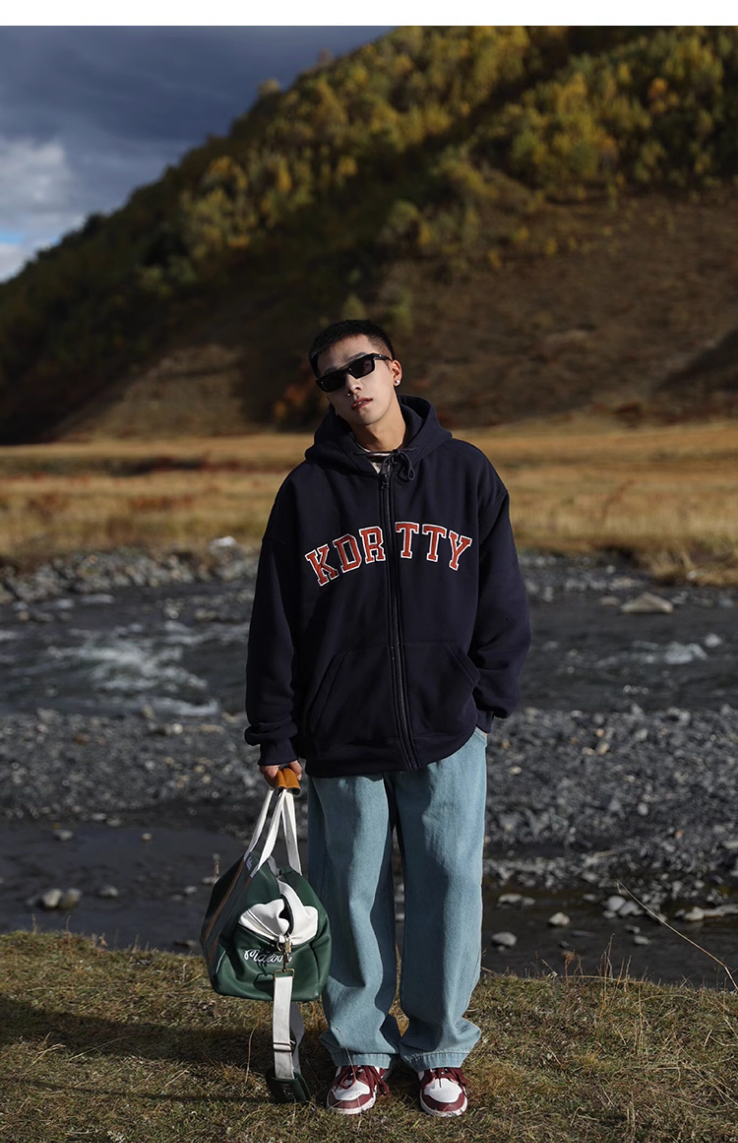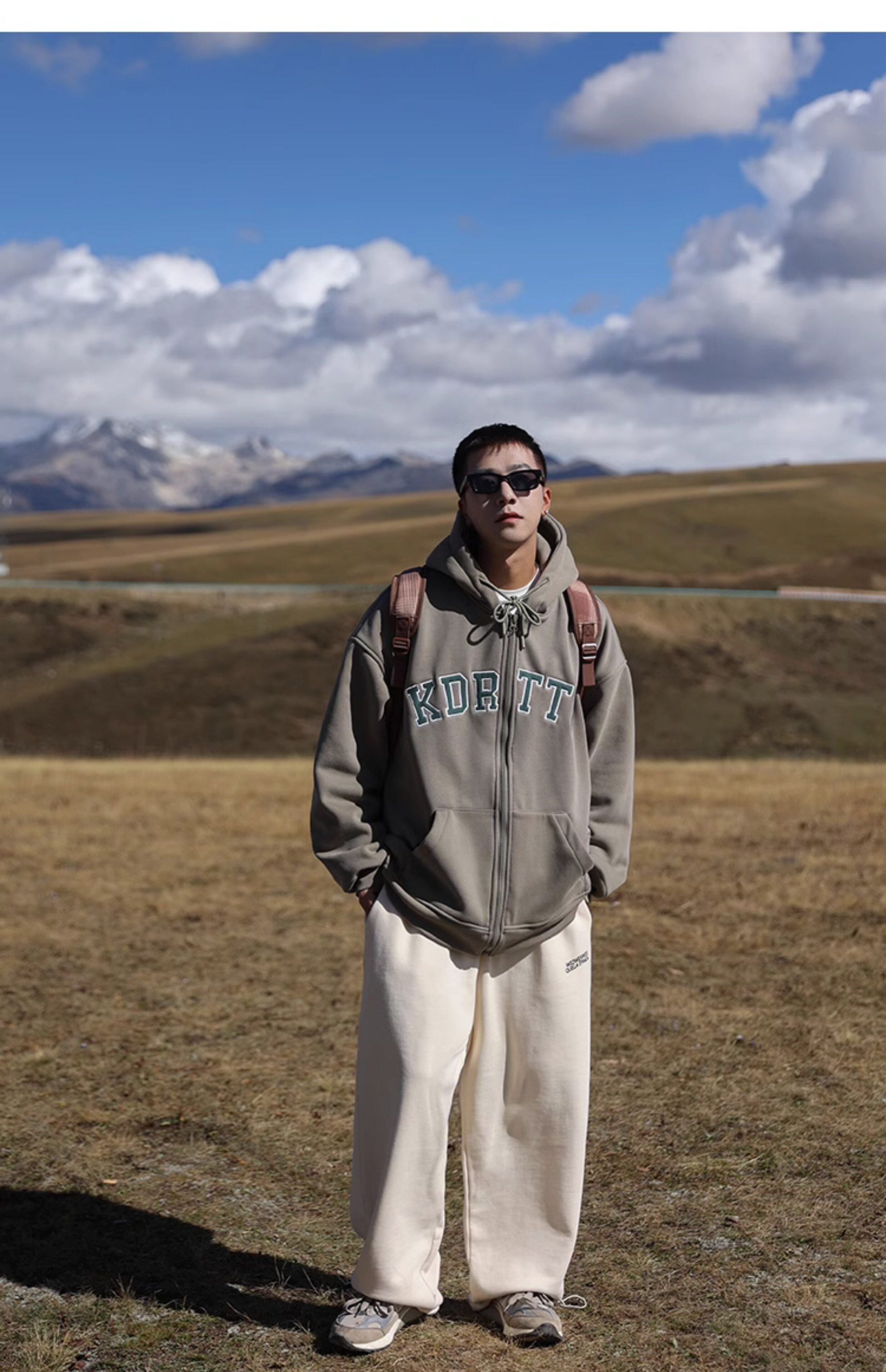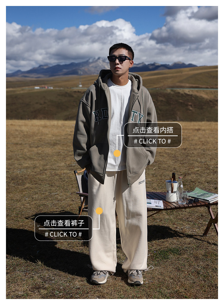 美式休閒刺繡開衫衛褲厚棉T男女連帽衫潮牌衣服情侶裝春秋學生外套