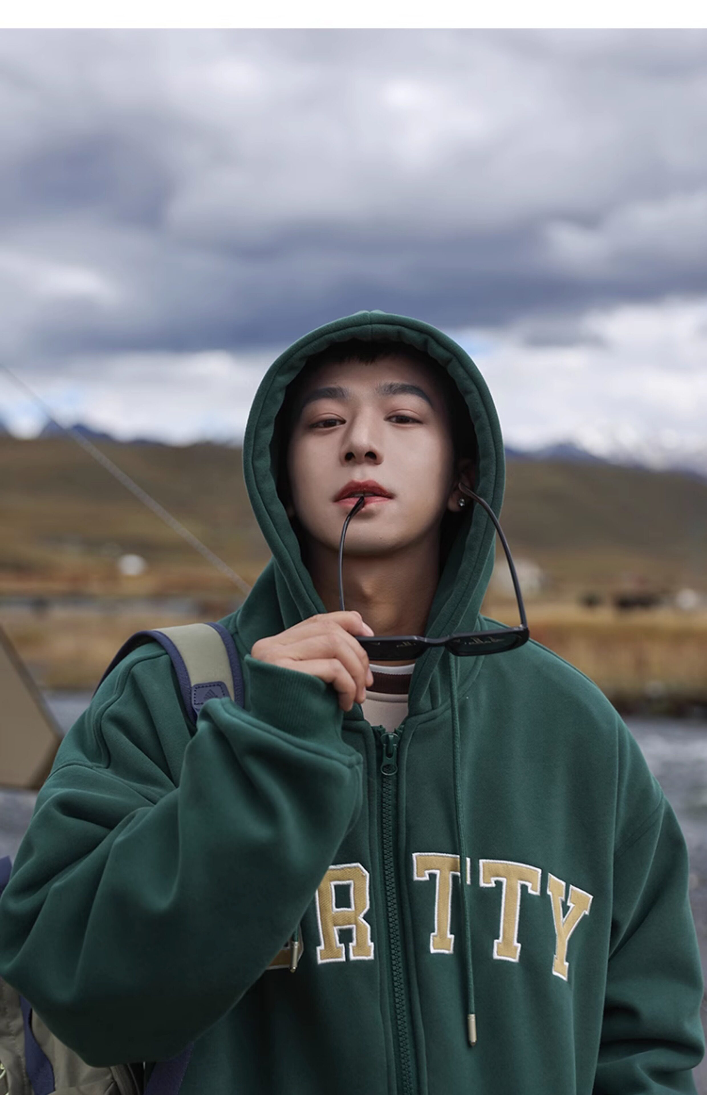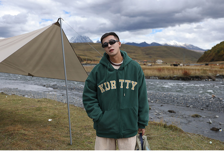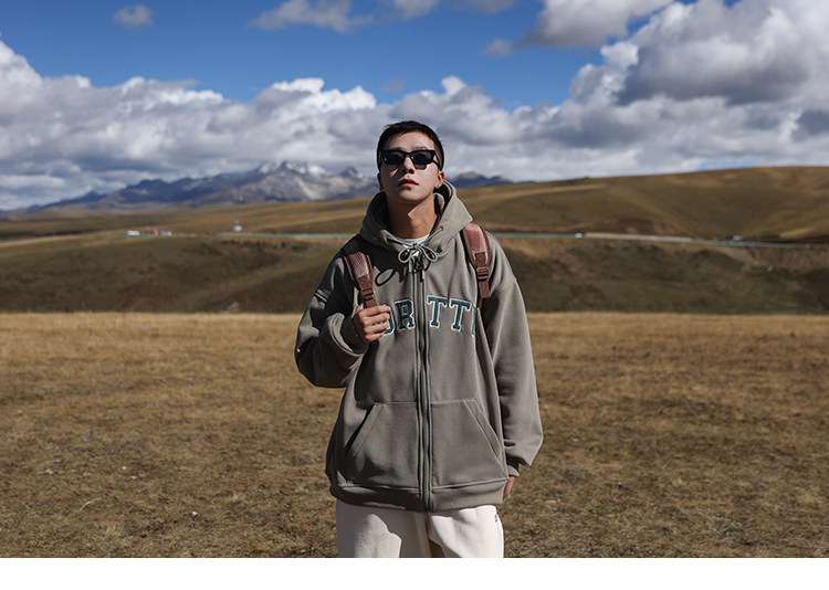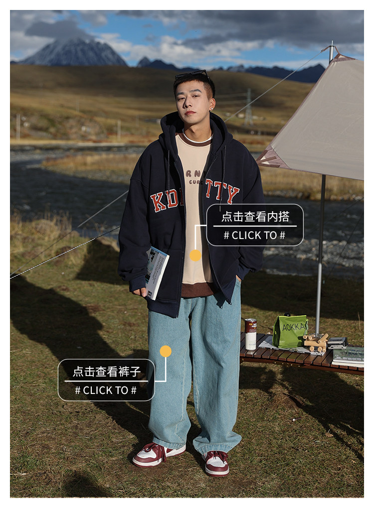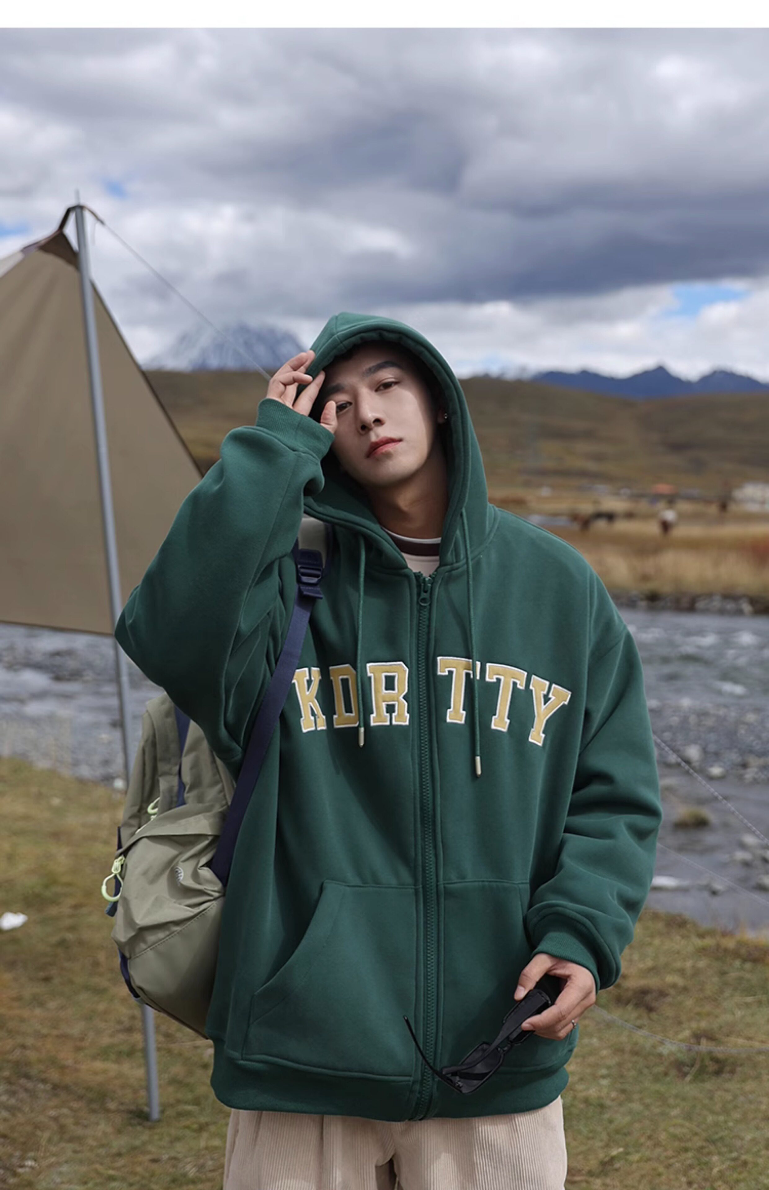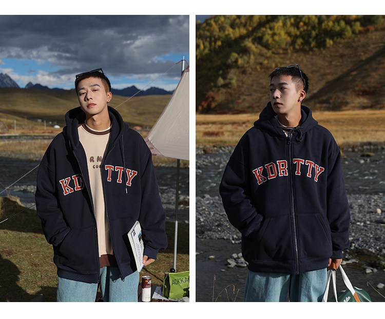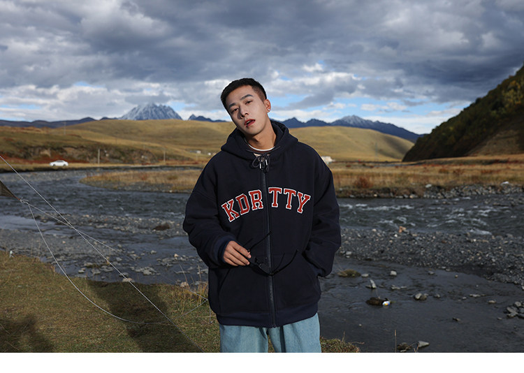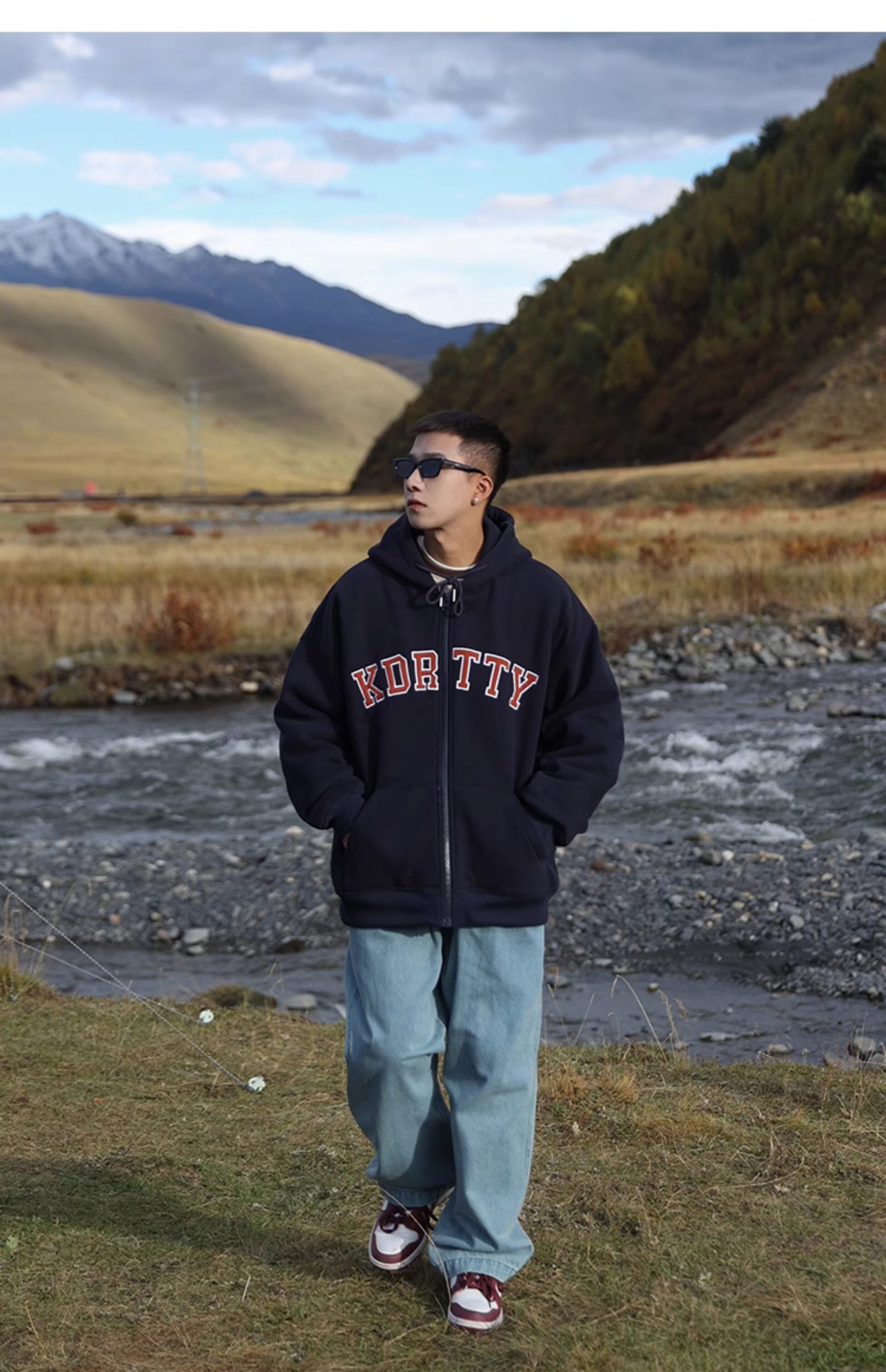美式休閒刺繡開衫衛褲厚棉T男女連帽衫潮牌衣服情侶裝春秋學生外套