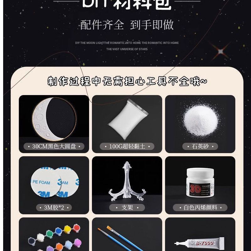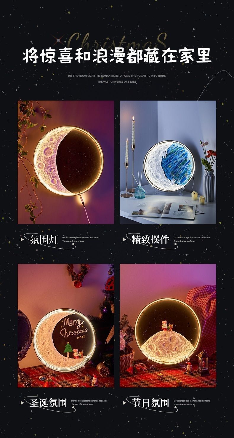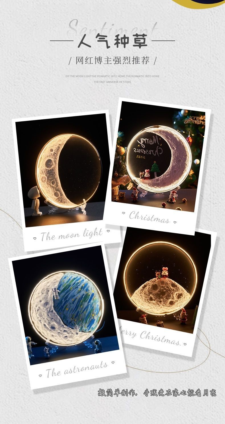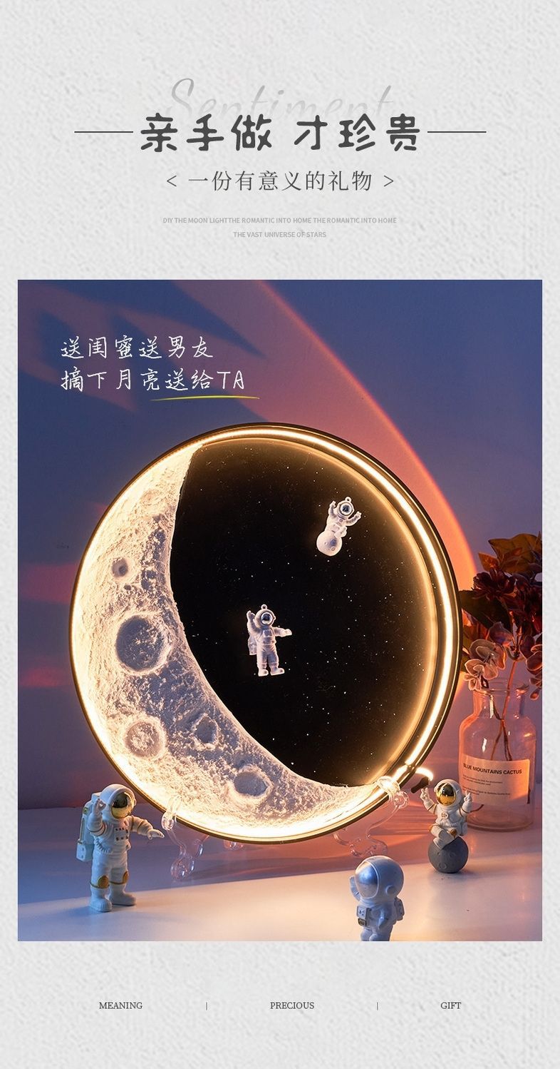 自制手工肌理月球灯材料包DIY创意月牙灯景观灯壁灯装饰灯成品月