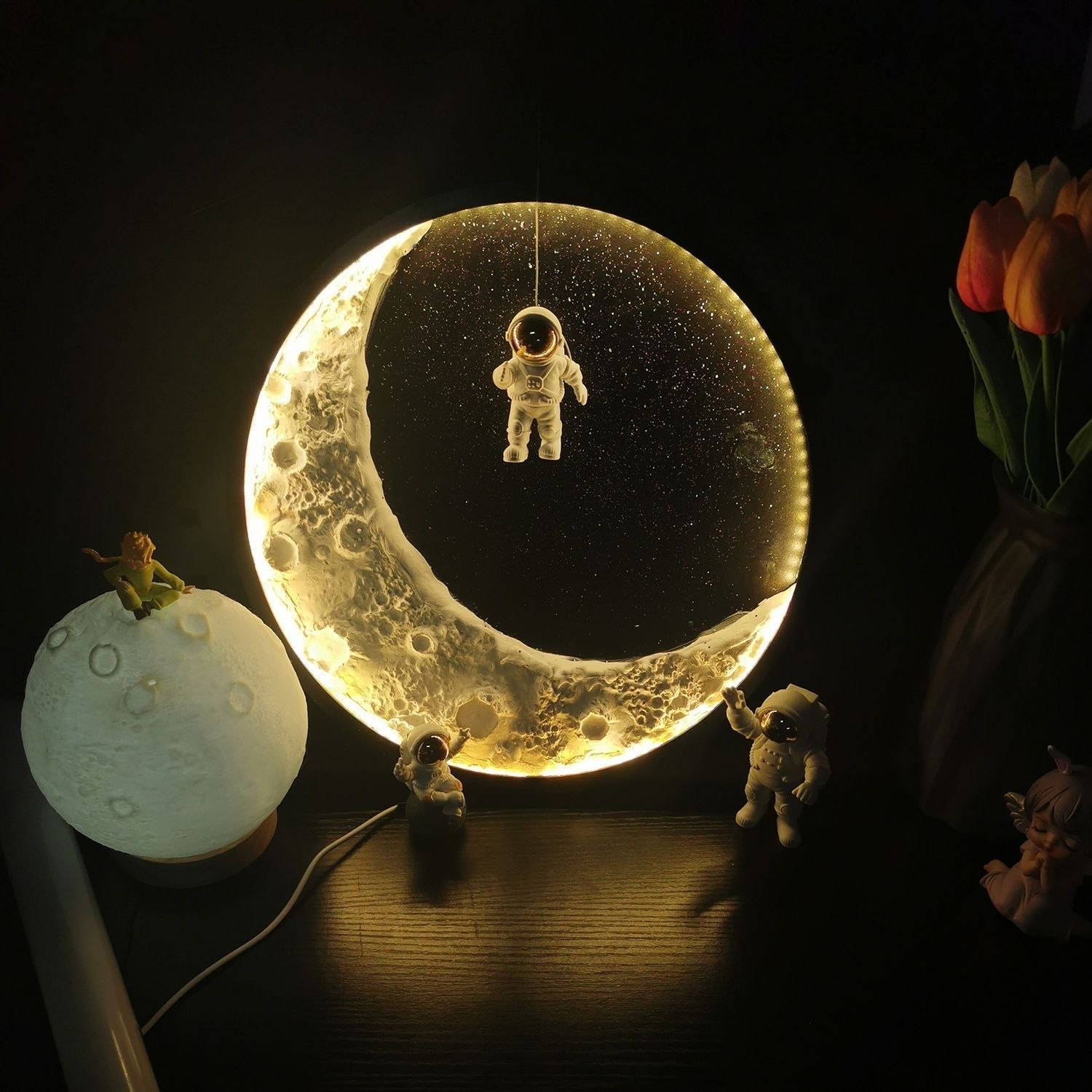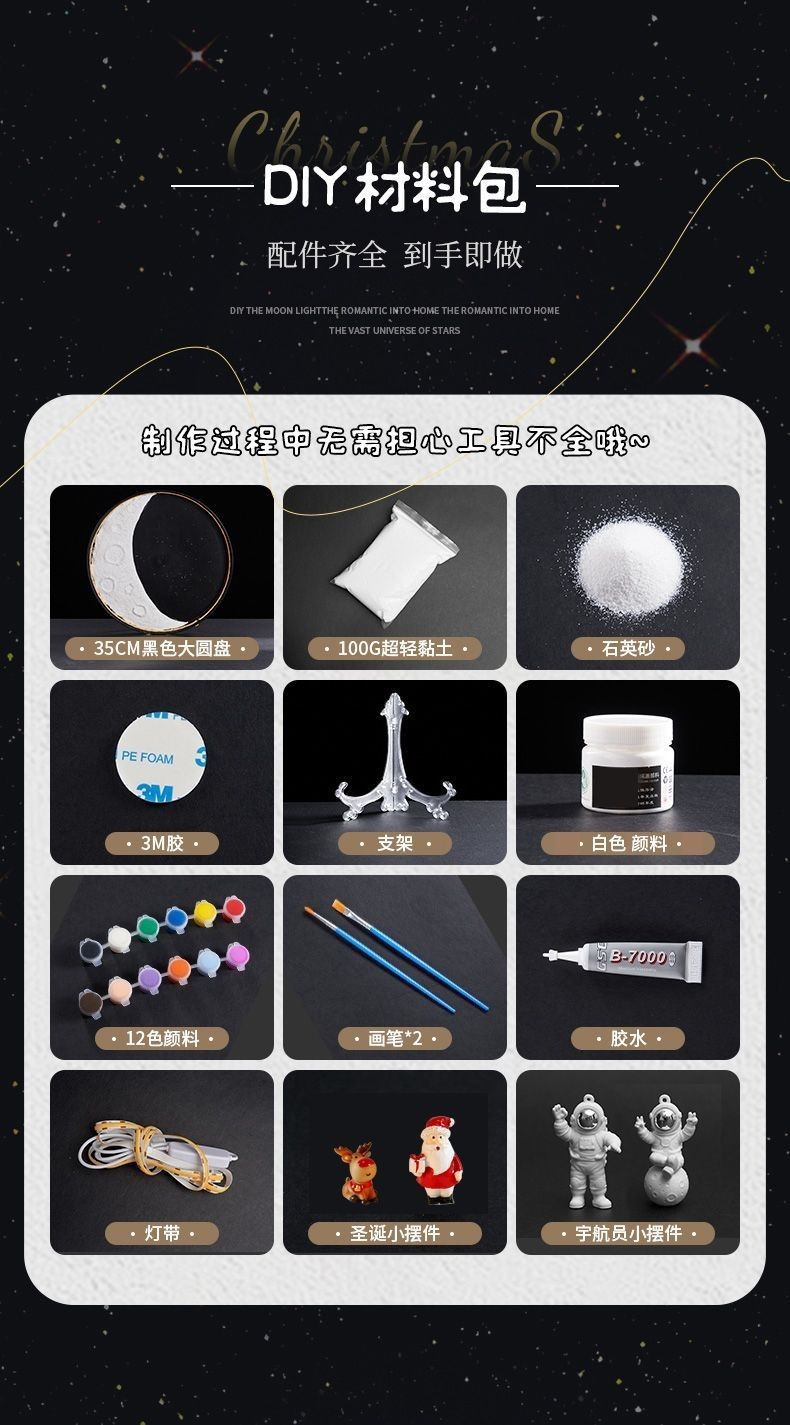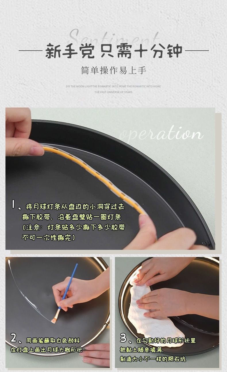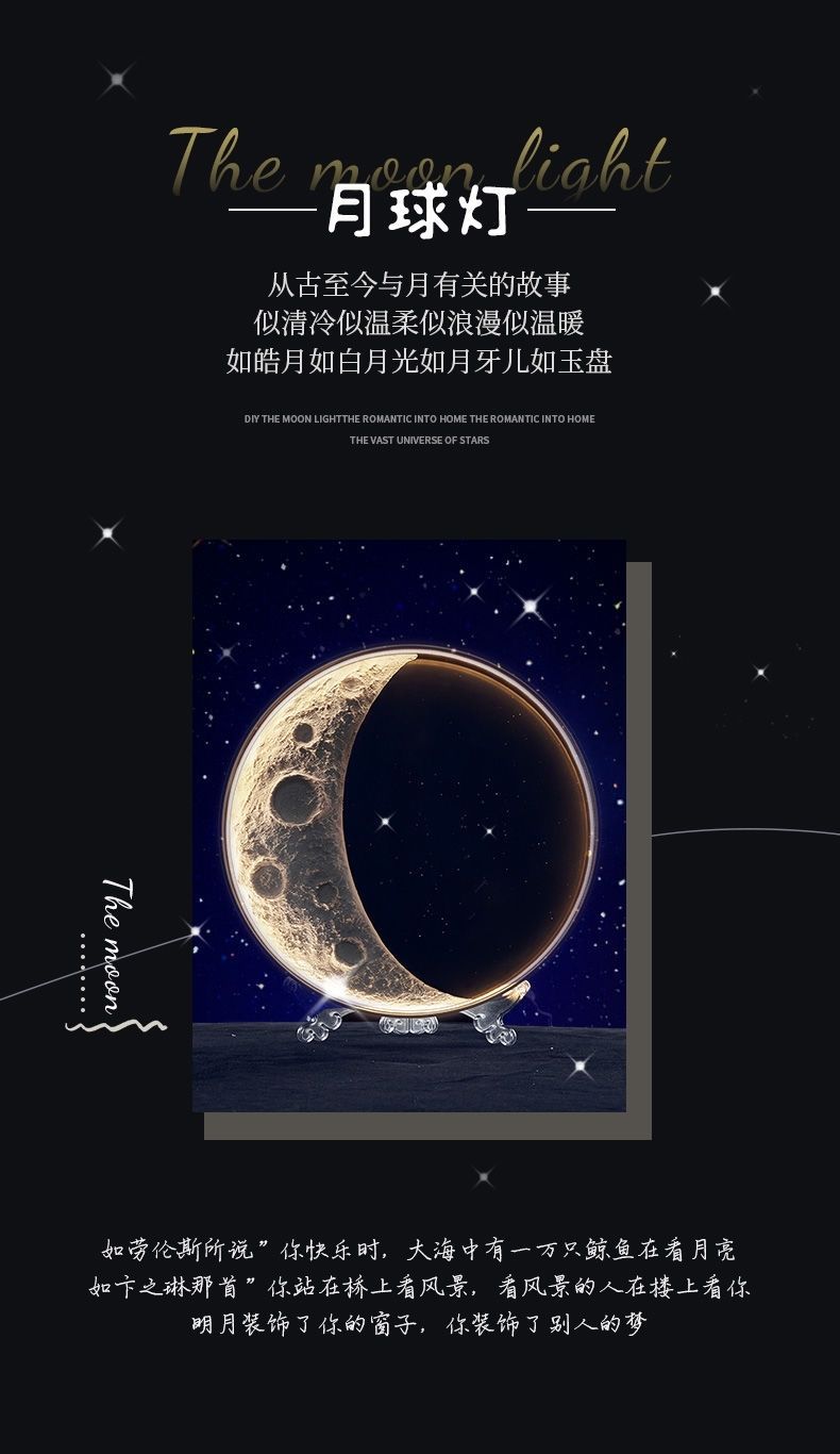 自制手工肌理月球灯材料包DIY创意月牙灯景观灯壁灯装饰灯成品月