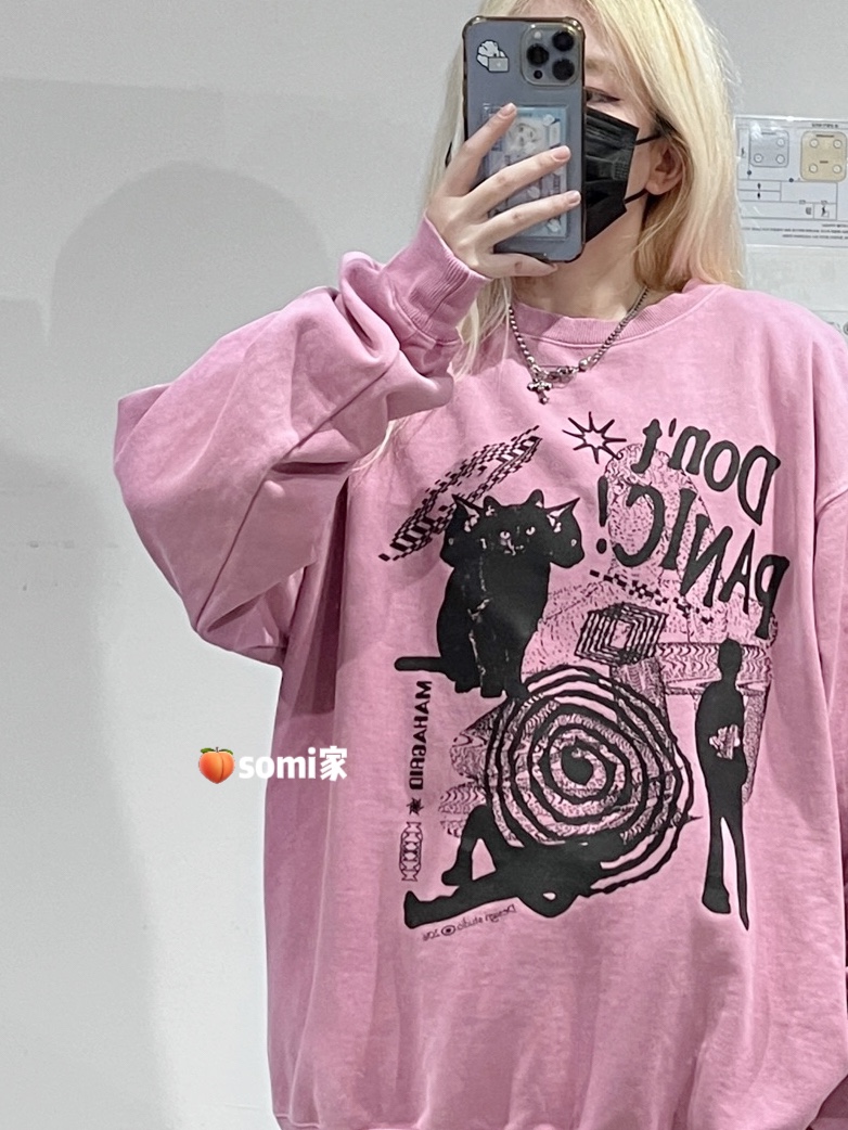 somi家韓國mahagrid MGD貓咪印花厚棉T straykids李龍馥同款