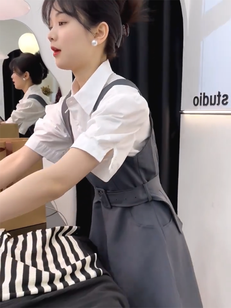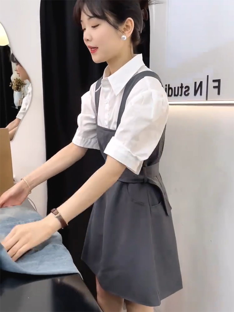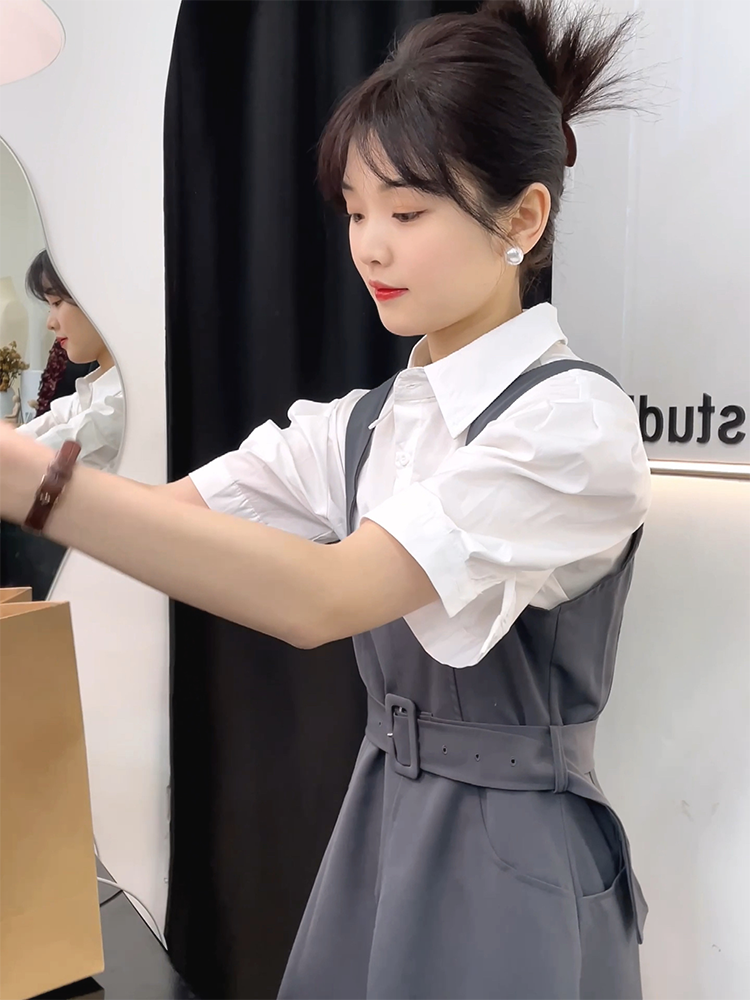 夏季歐洲站高端氣質別致漂亮灰色抱嬰袋洋裝子女網紅兩件式套裝減齡
