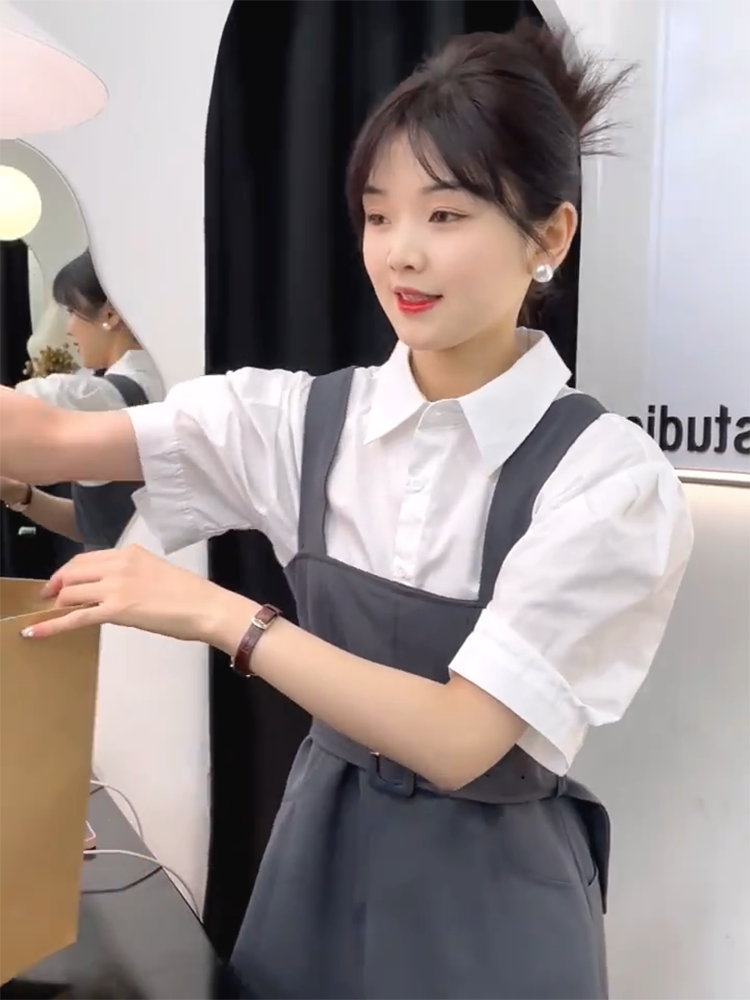 顏色分類 白色上衣+灰色抱嬰袋裙