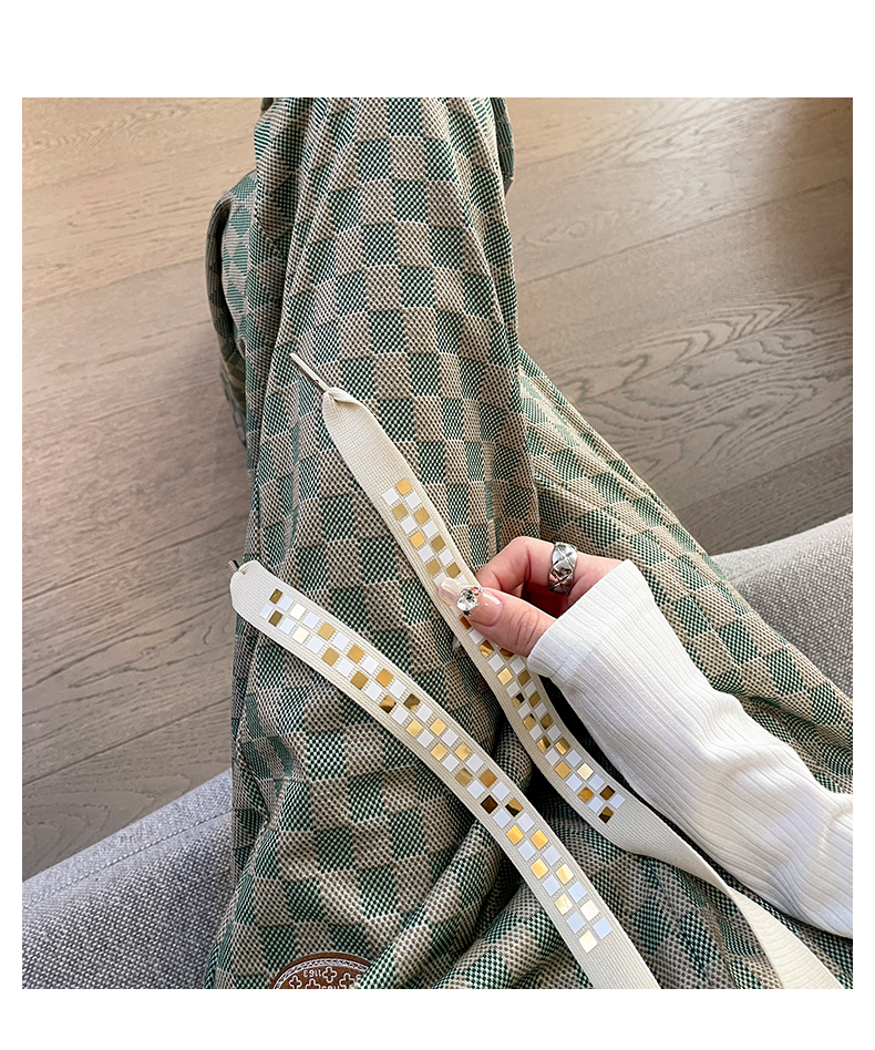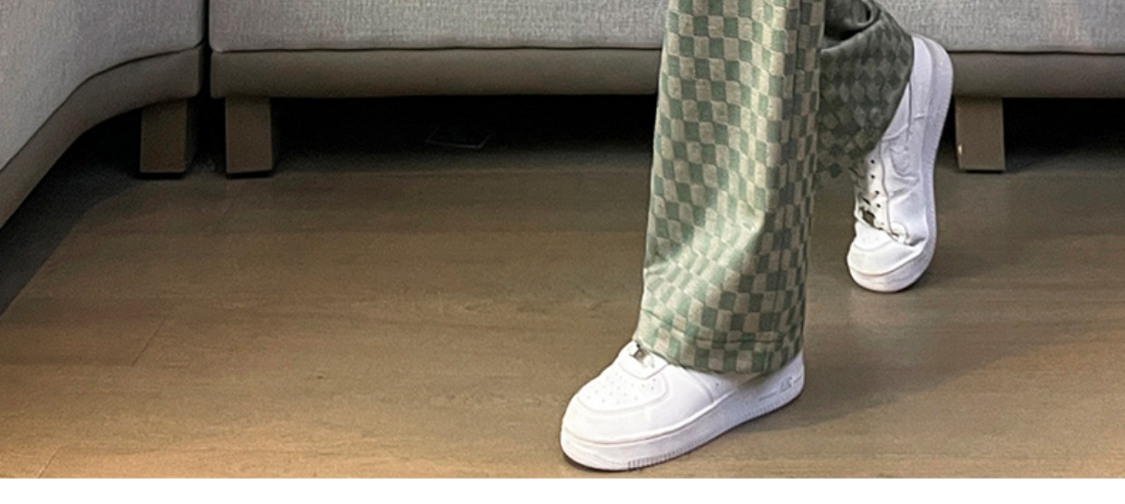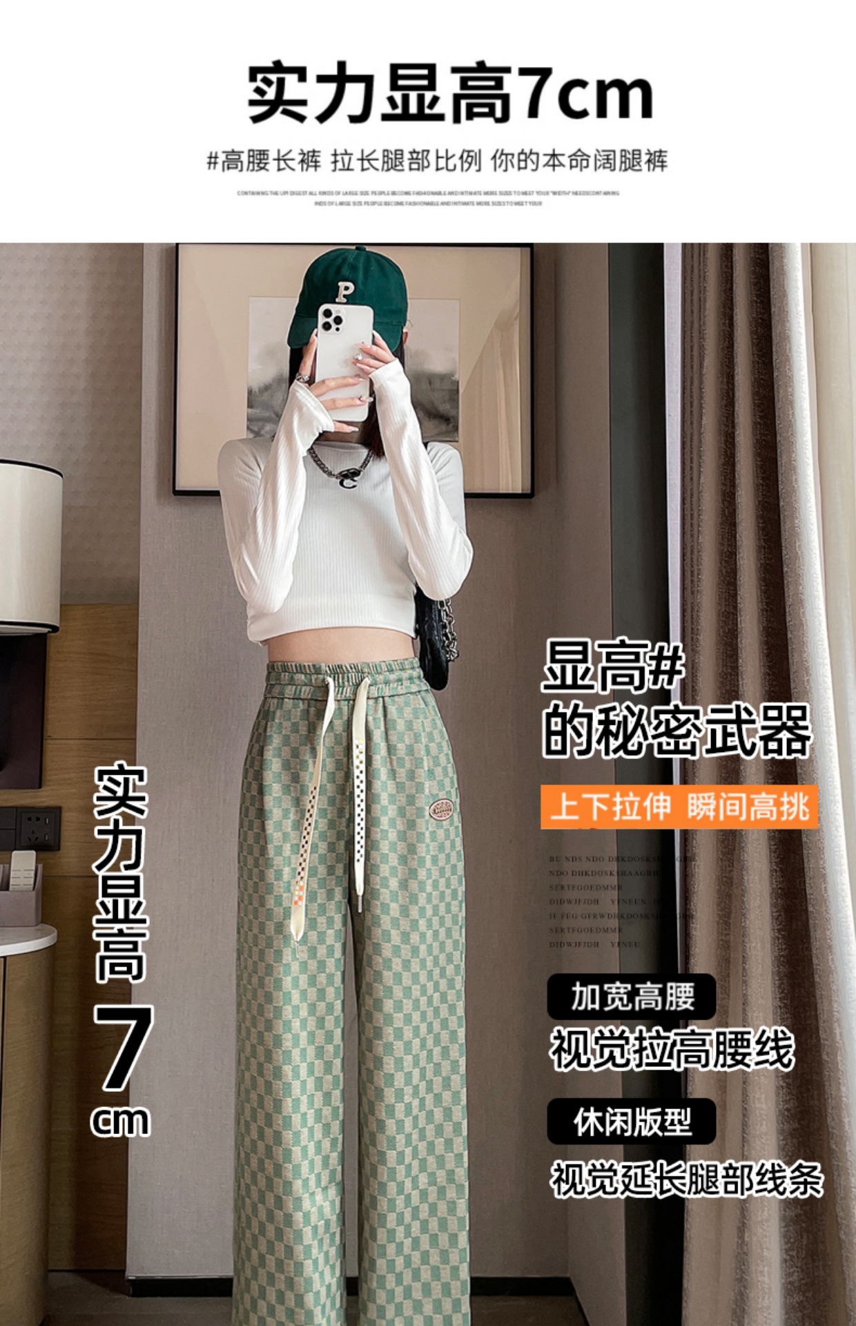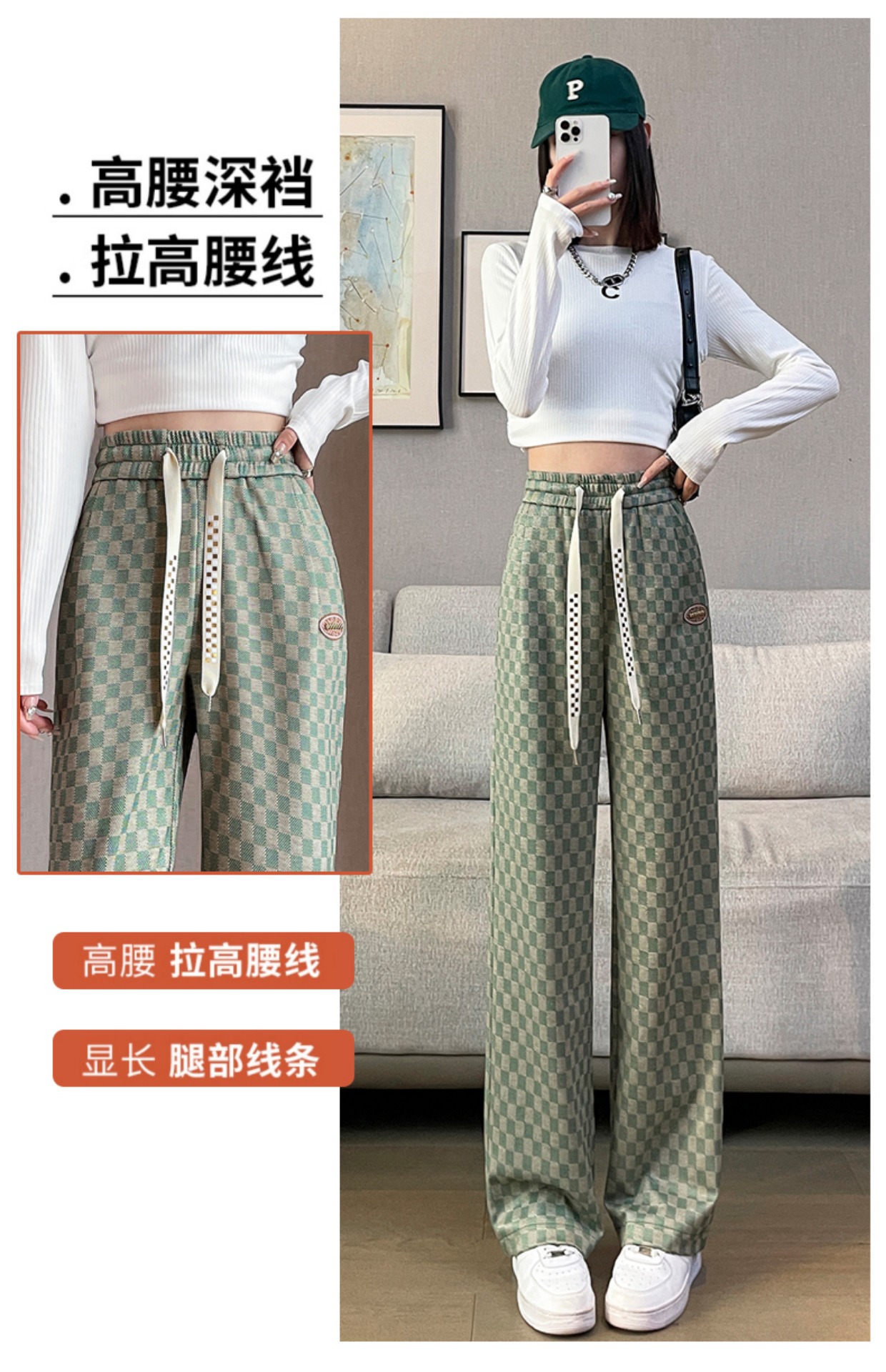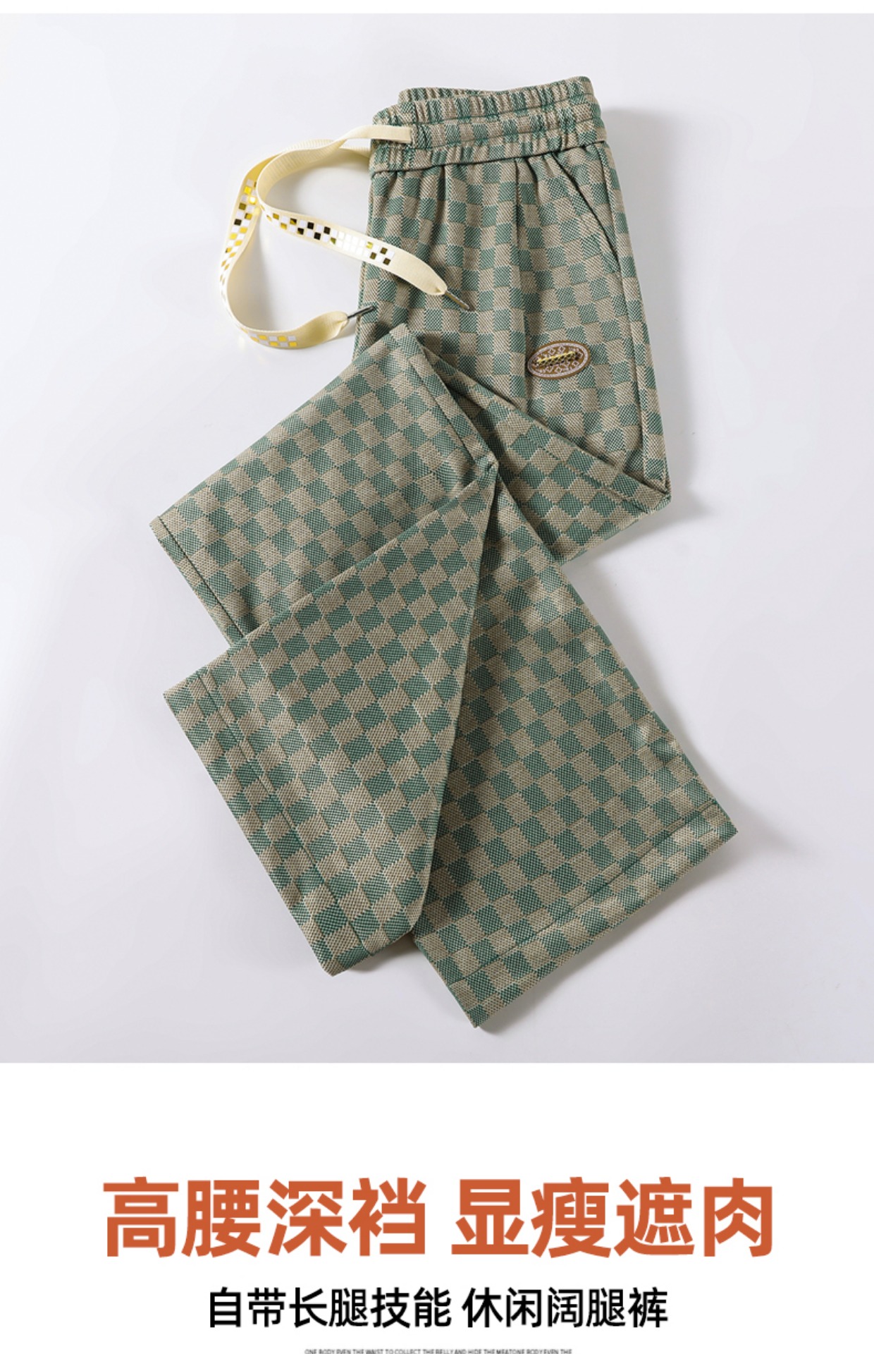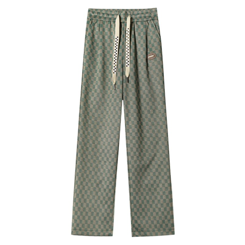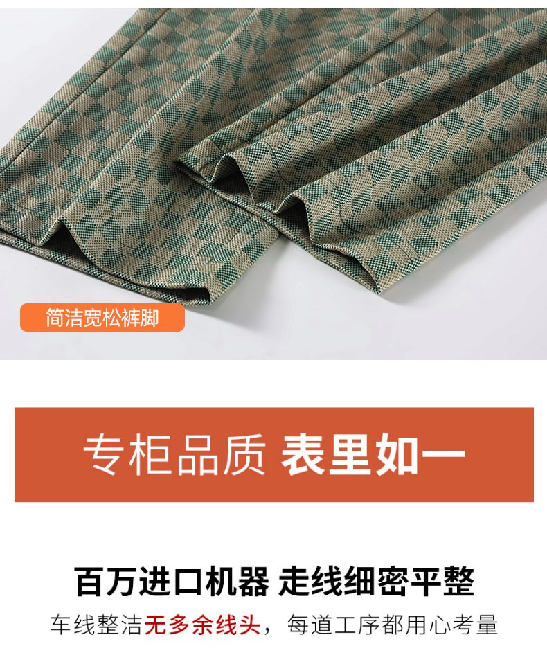 拉夏貝爾高腰寬褲女春秋款復古寬鬆休閒垂感拖地直筒棋盤格子褲