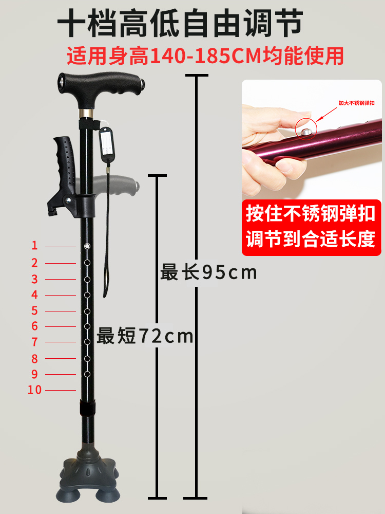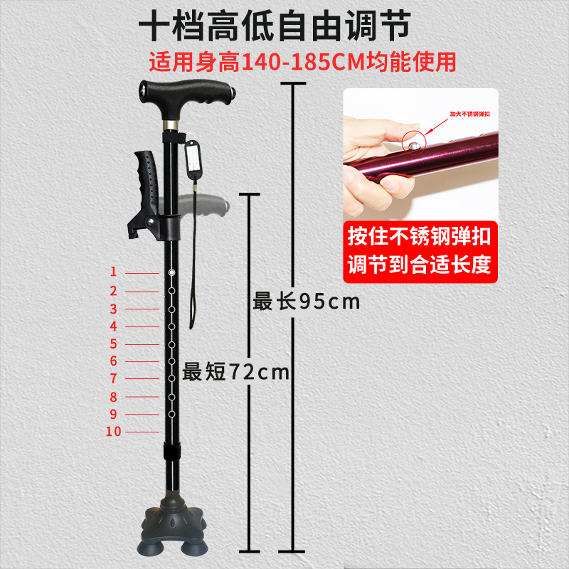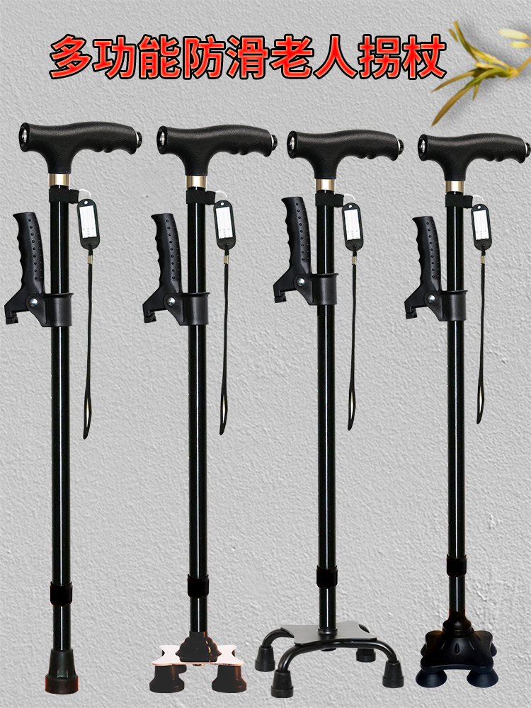 老人柺杖多功能鋁合金拐扙四腳手杖伸縮老年拐仗帶燈防滑柺棍輕便
