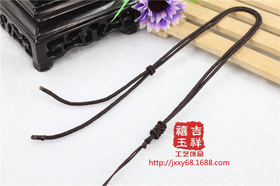 【材质】:台湾玉线【规格】:项链挂绳长短可以调节,可调节:约35cm【用途】:可用于挂金器、银器、玉器、陶瓷器、饰品配件等吊坠用【包装】:无单独的包装【说明】:手工编织项链挂绳,出现线头或者毛边的情况实属正常只要用打火机烧一下就能弄好。