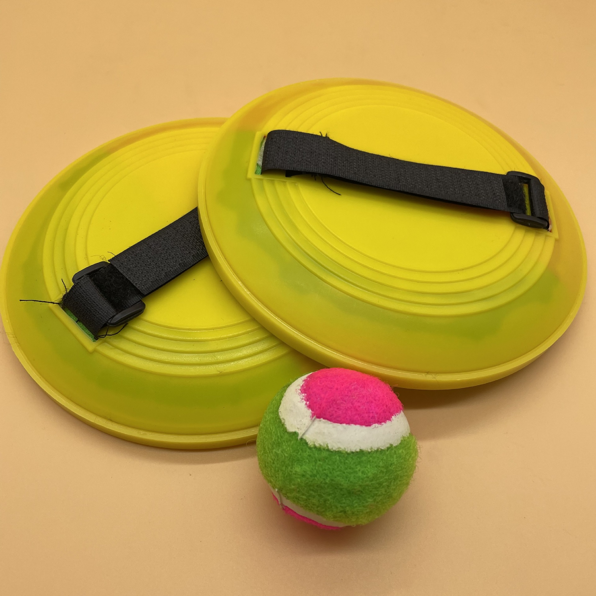 1.拍正面是一块缝由魔术钩布,可以粘住急速飞来的球,神奇!拍的背部带有扣带,便于扣住手掌,当然,大小可以调节。