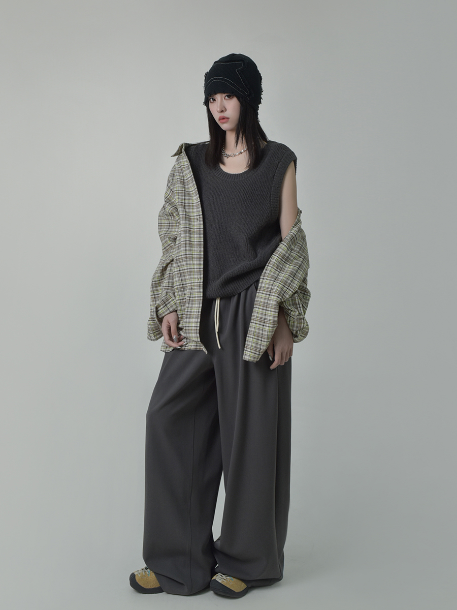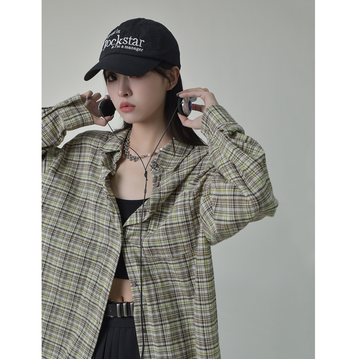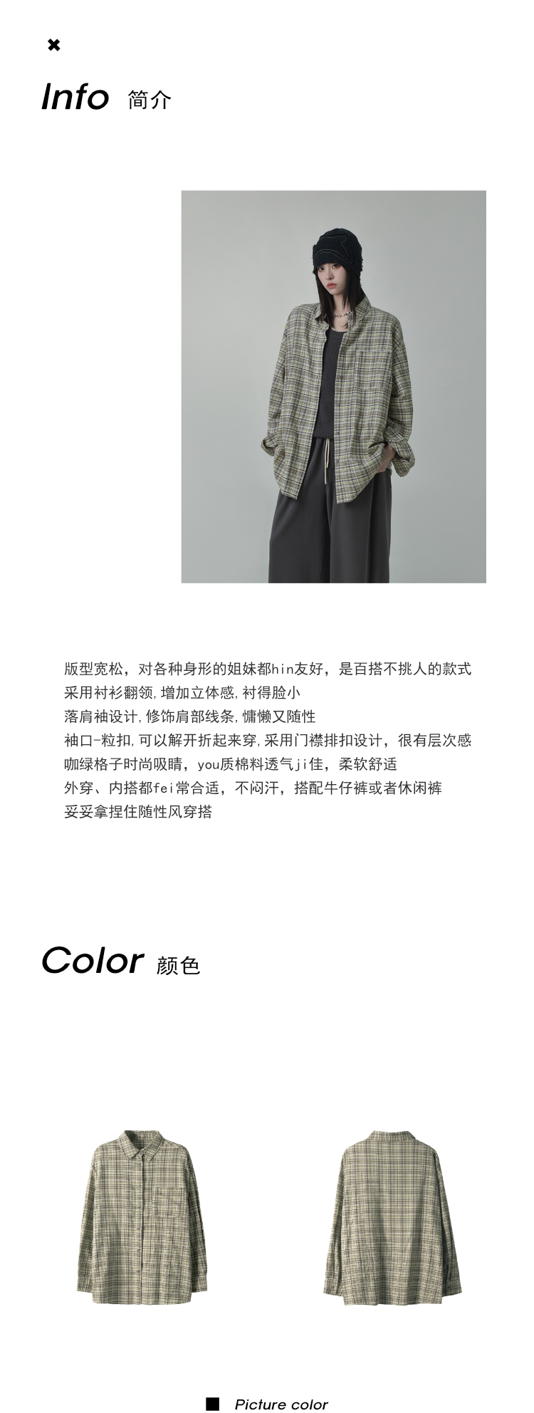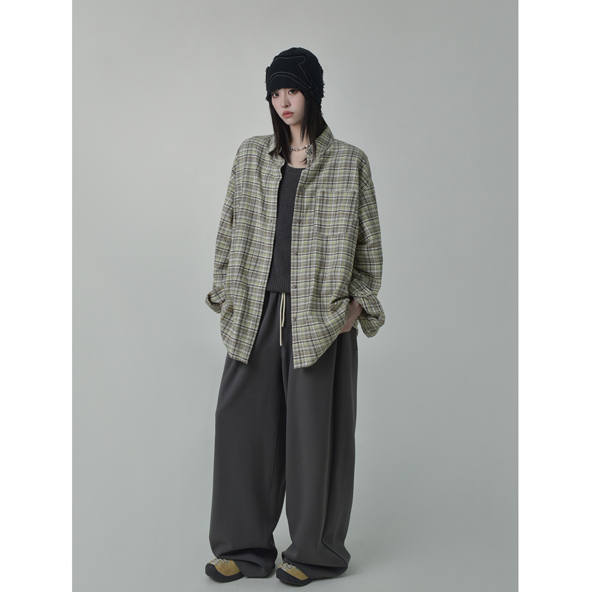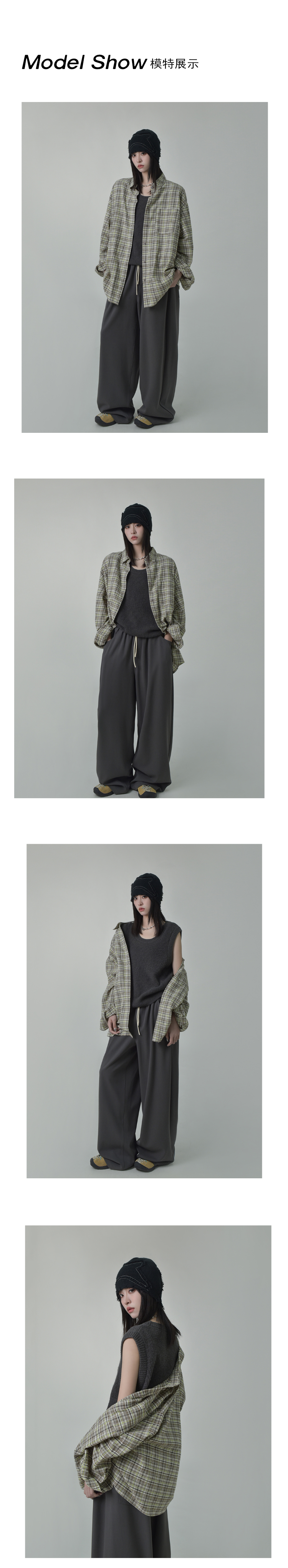 SIXI四喜家秋季 鬆弛肌理感復古格子襯衫女寬鬆內搭疊穿休閒襯衣