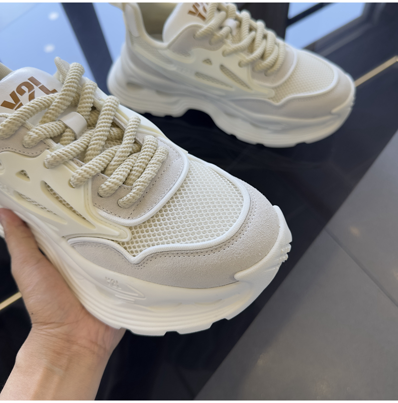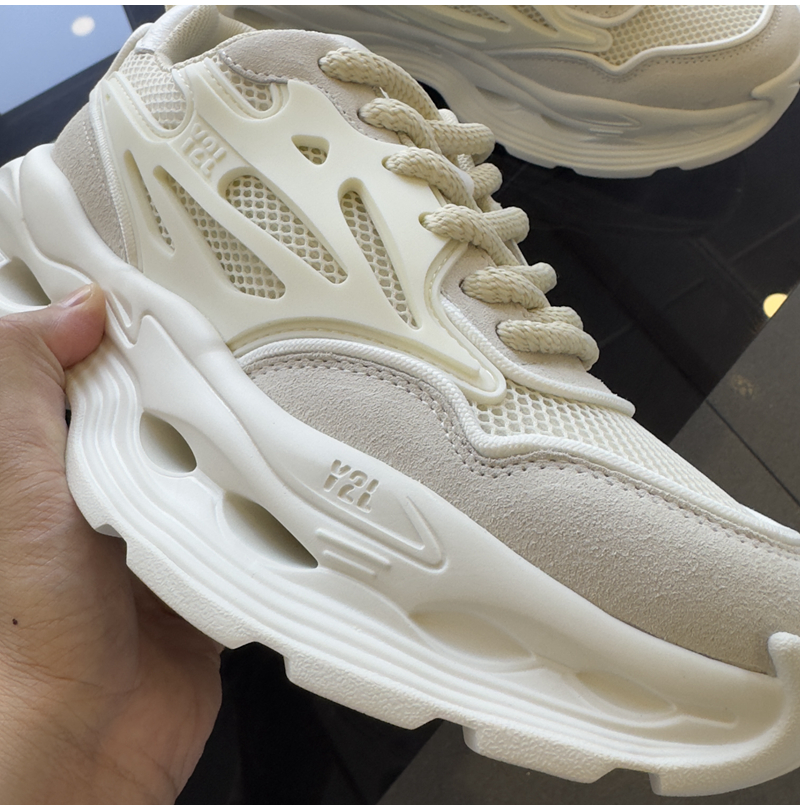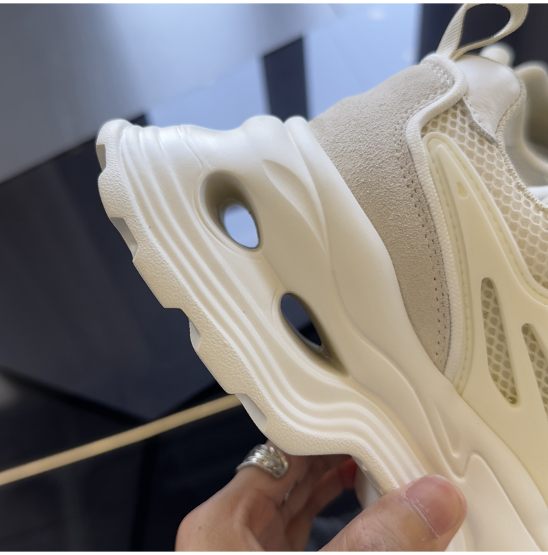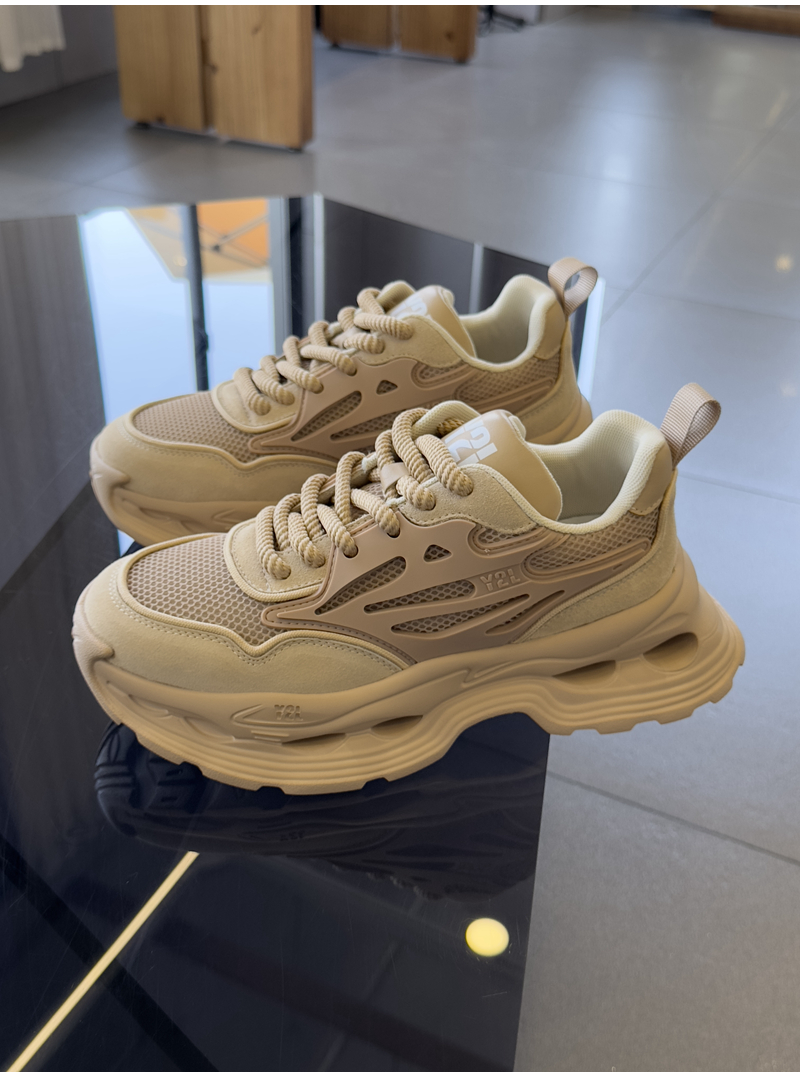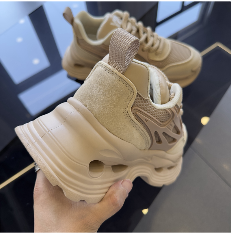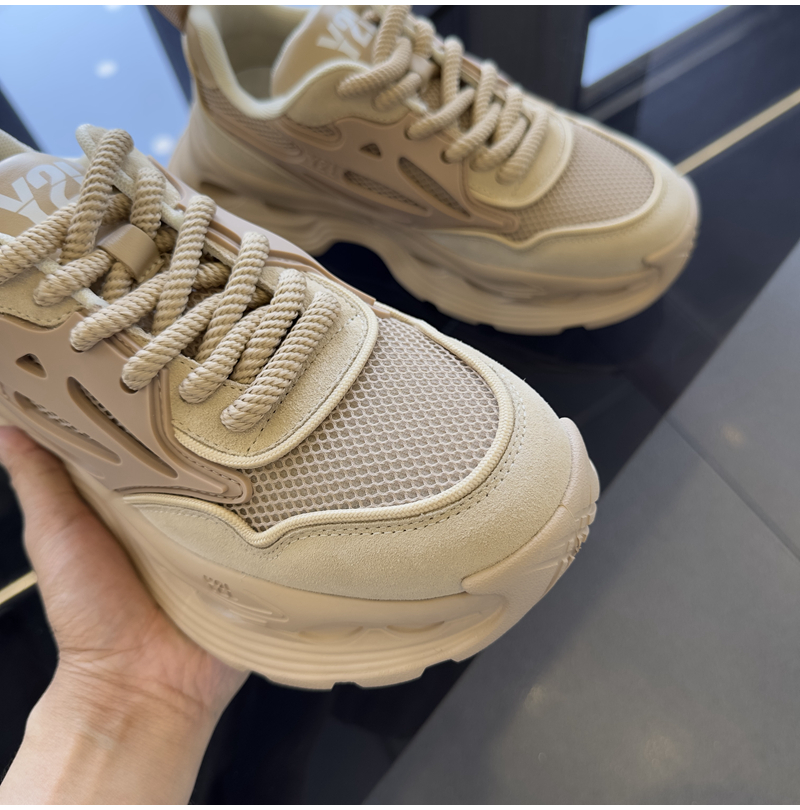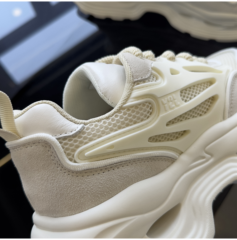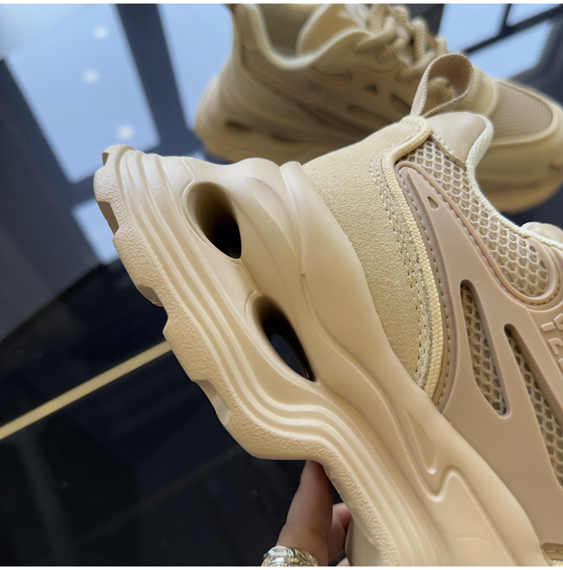 高端原創設計師線 頭層牛皮立體底片網眼拼接增高底男輕便老爹鞋