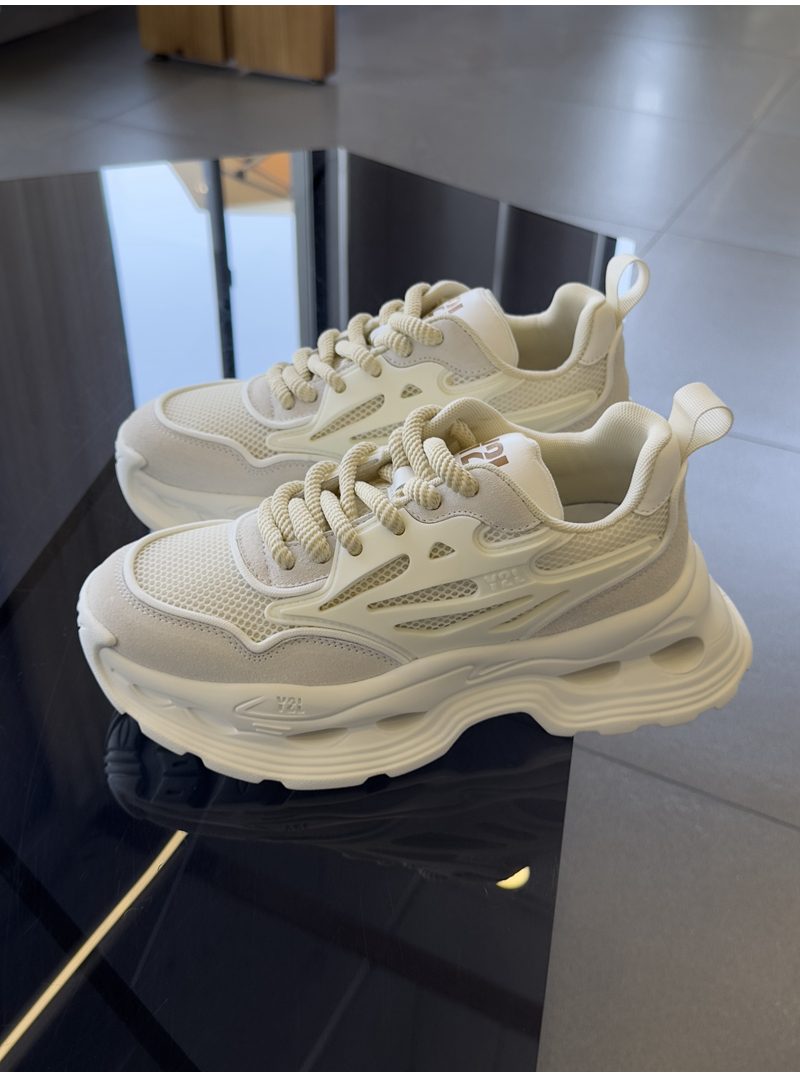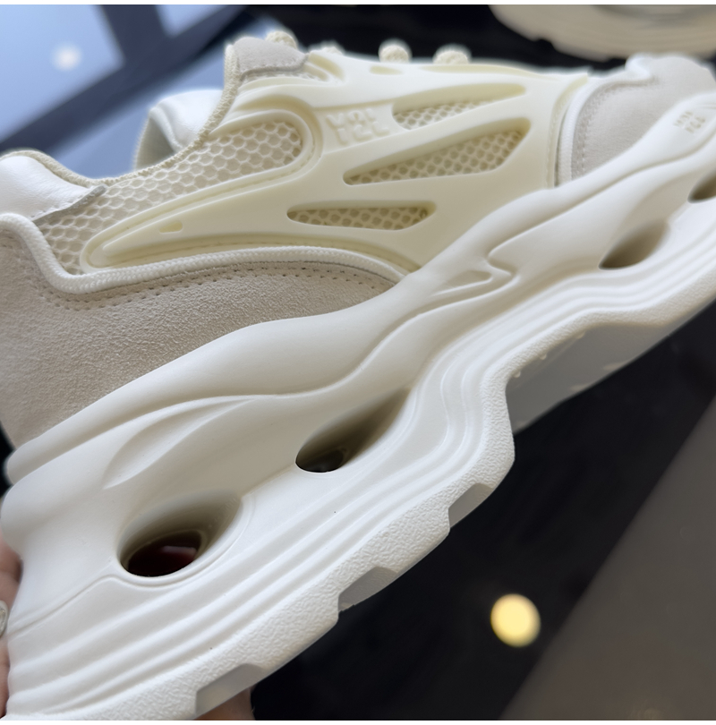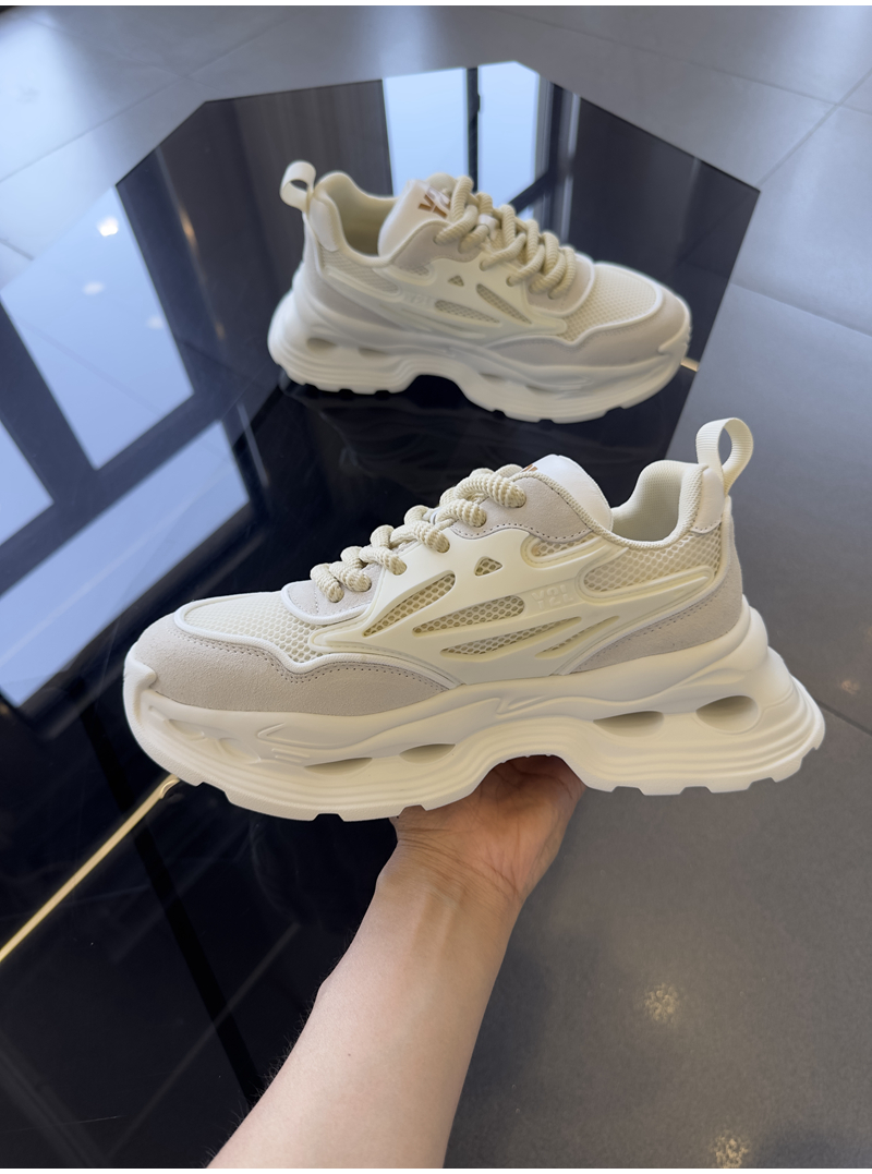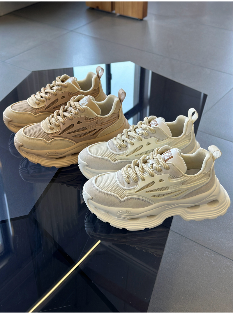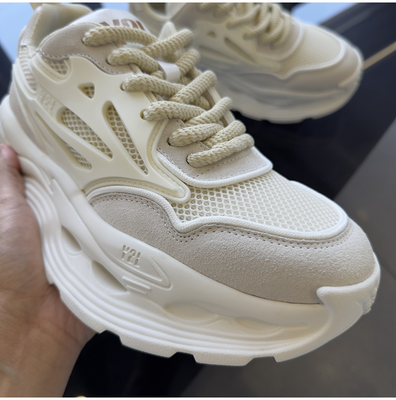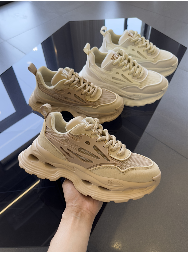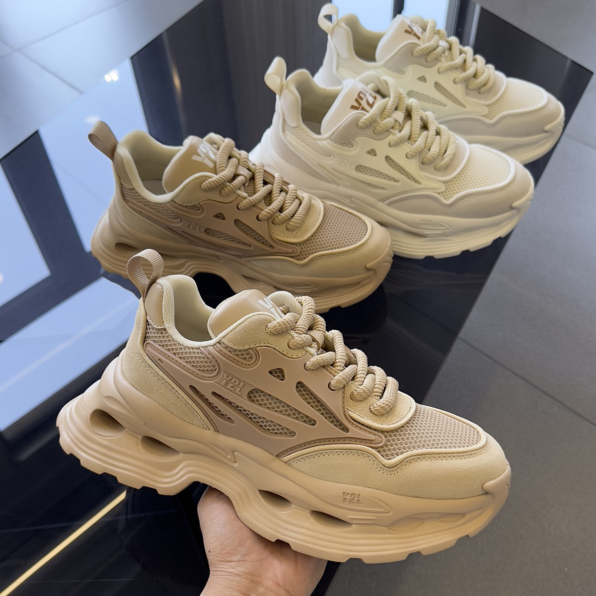 高端原創設計師線 頭層牛皮立體底片網眼拼接增高底男輕便老爹鞋