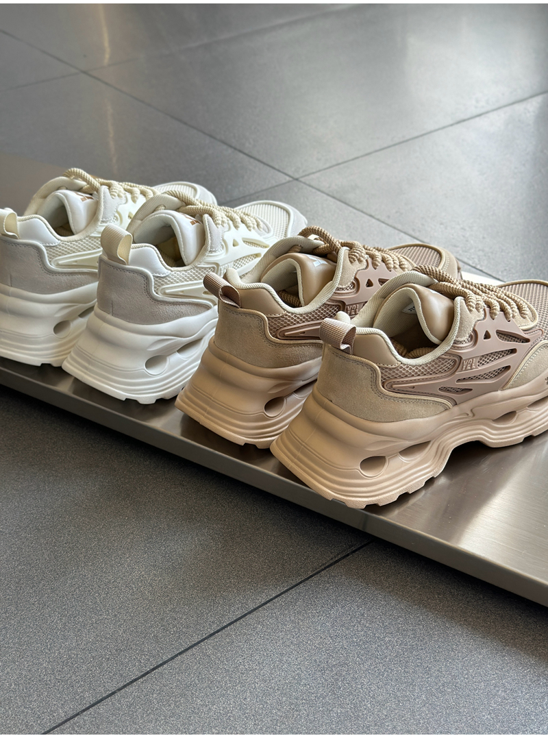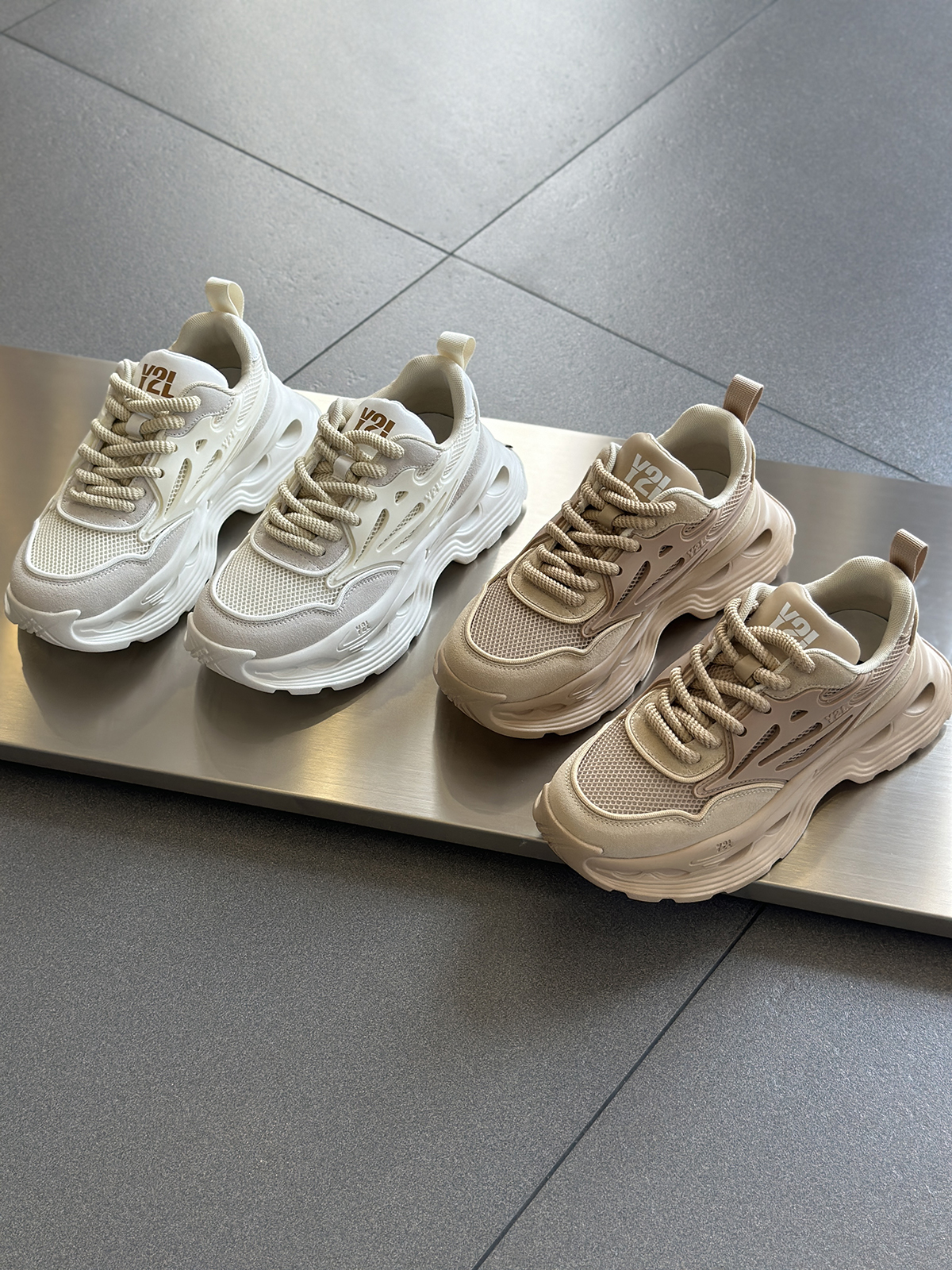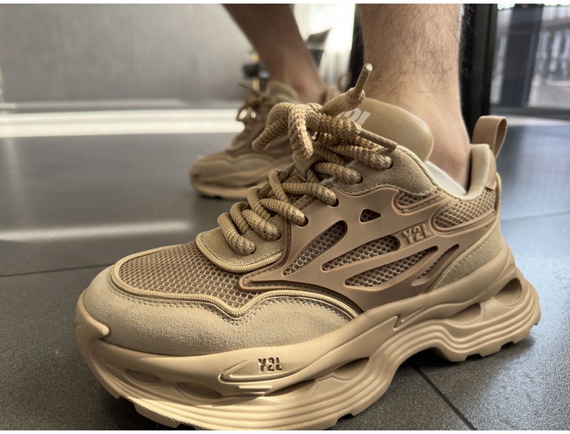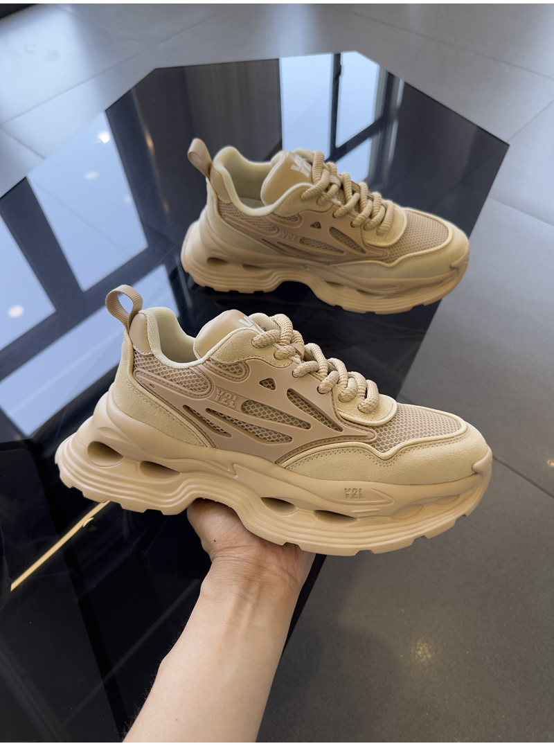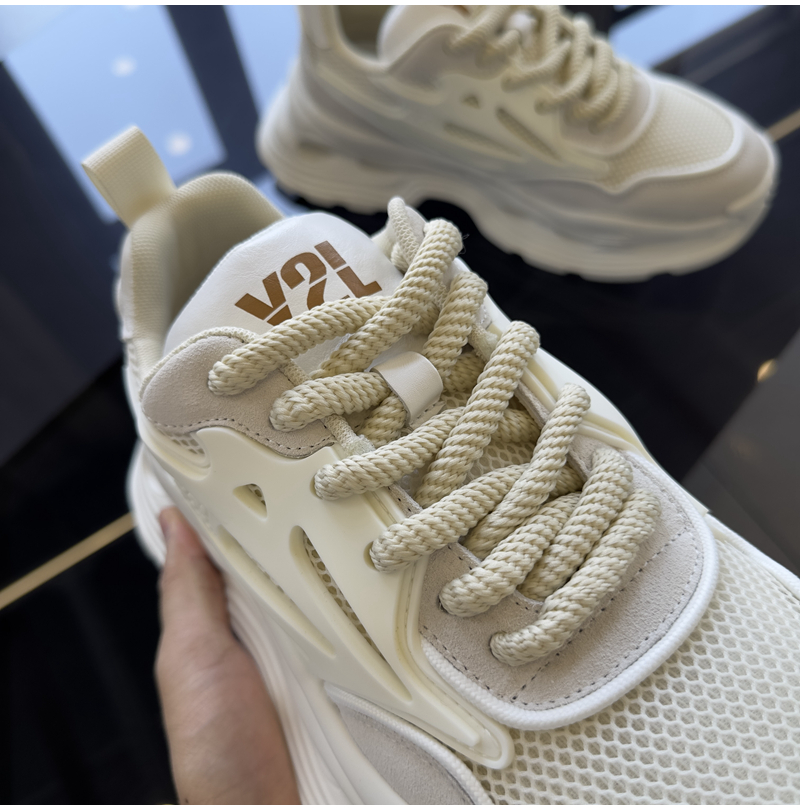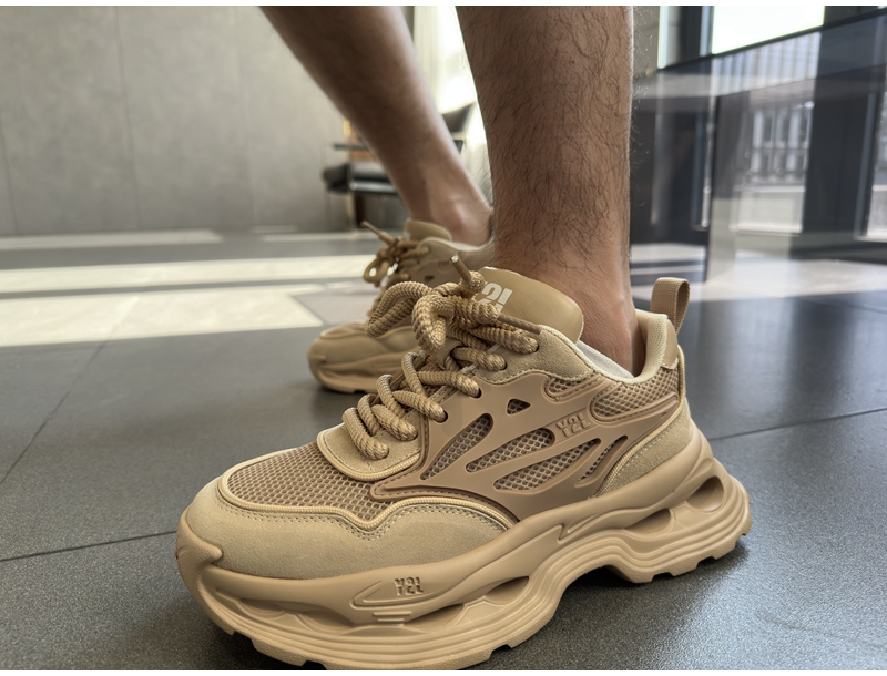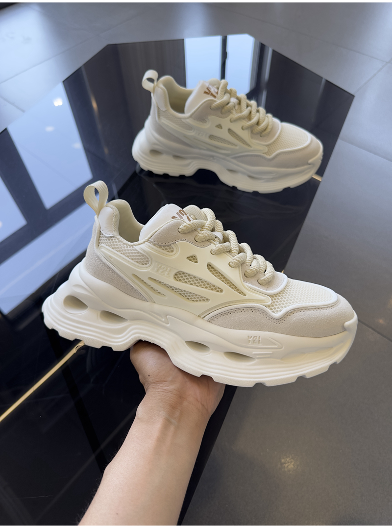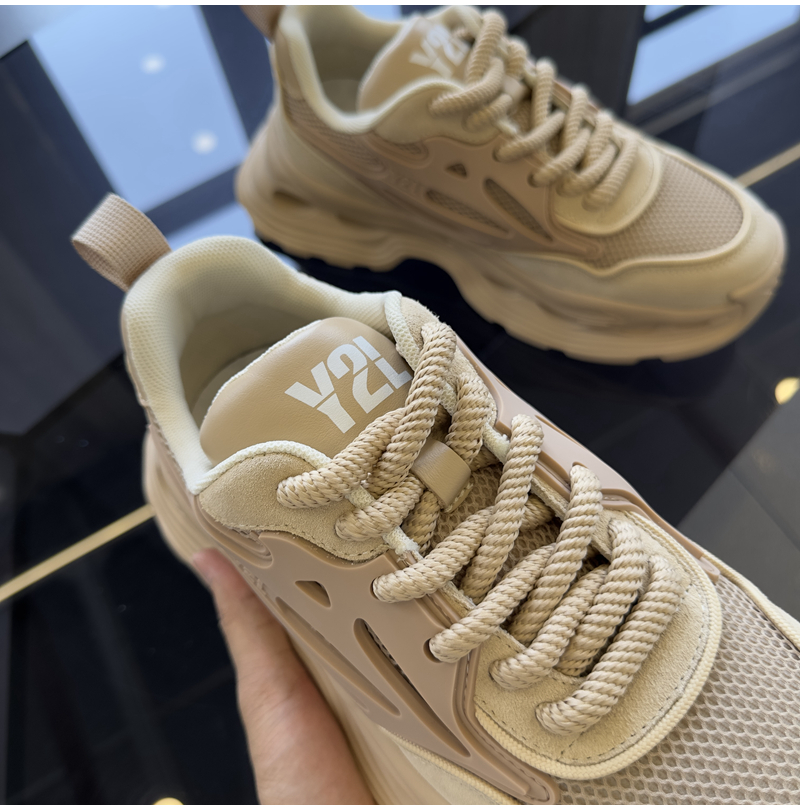 高端原創設計師線 頭層牛皮立體底片網眼拼接增高底男輕便老爹鞋