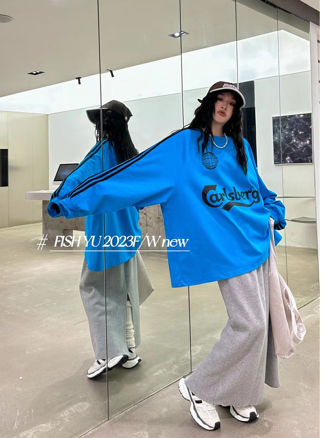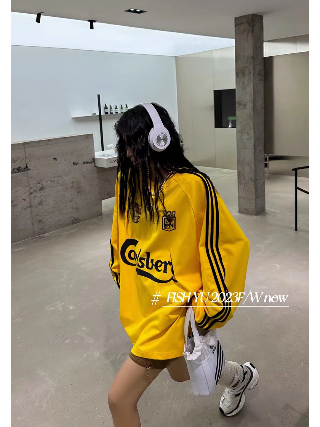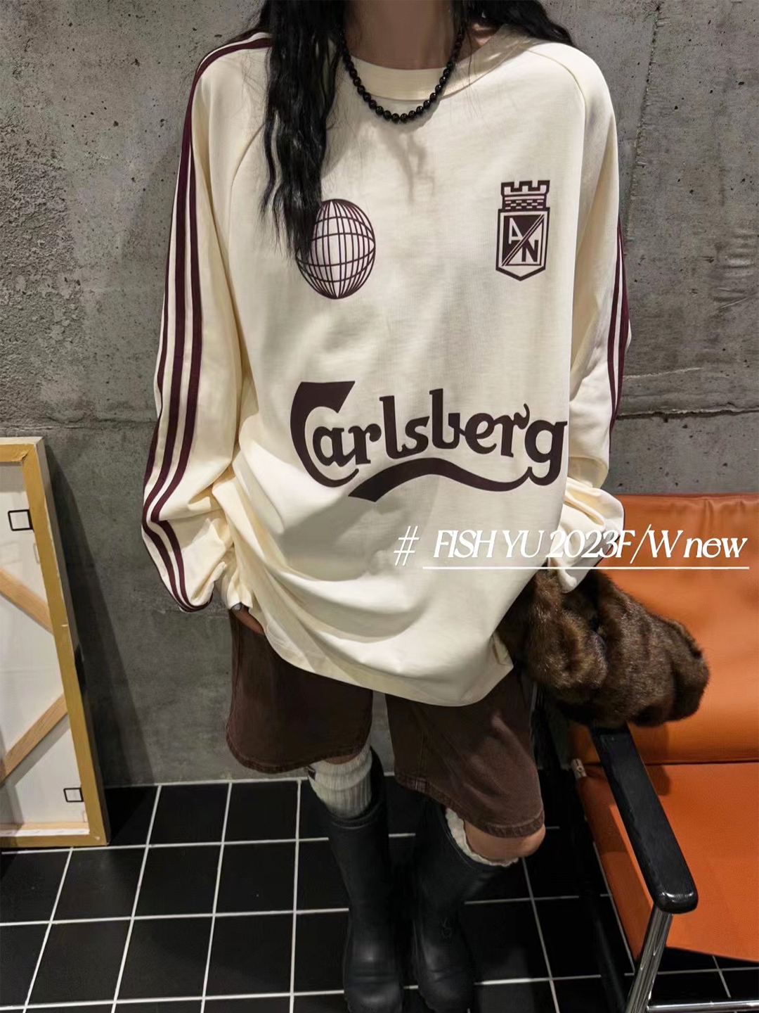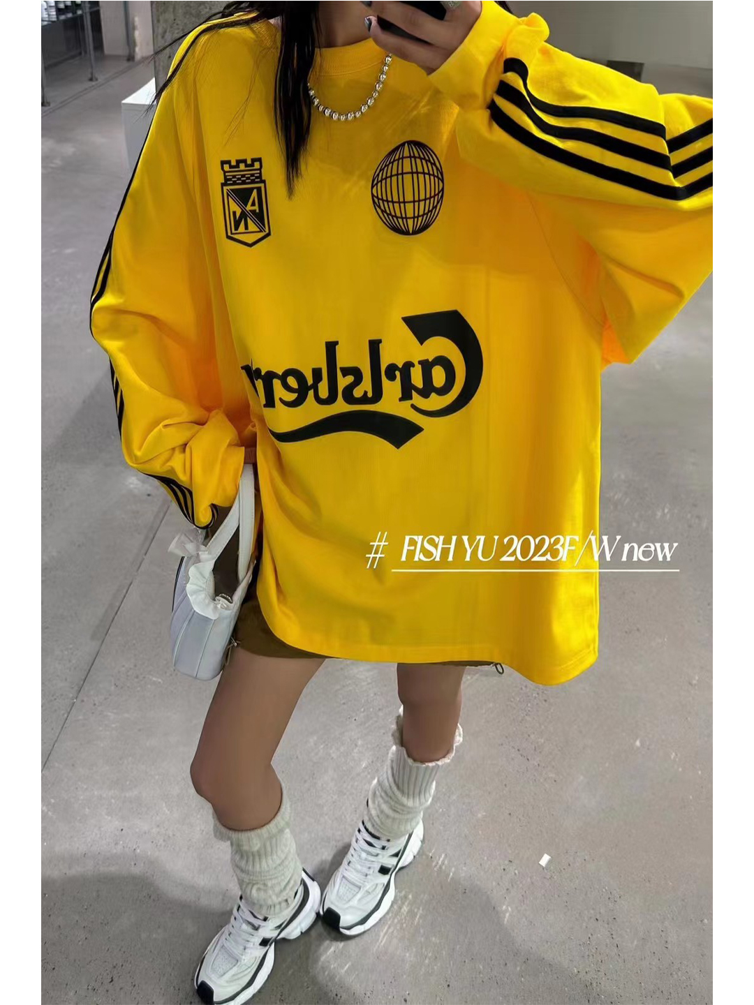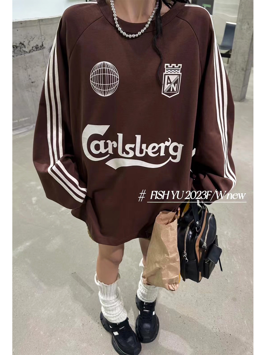 衛衣T恤女長袖大尺碼薄款美式復古側邊槓條設計撞色巨顯瘦遮臀長版T