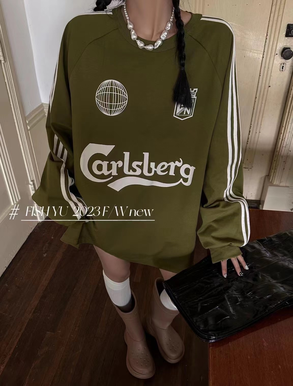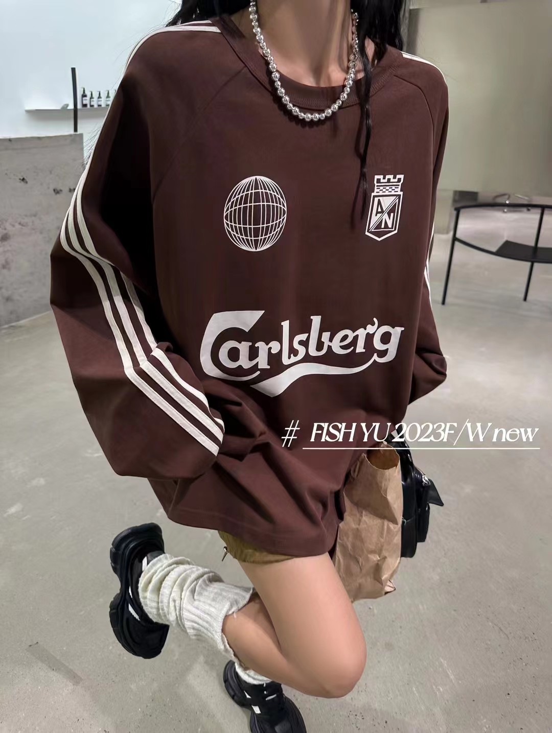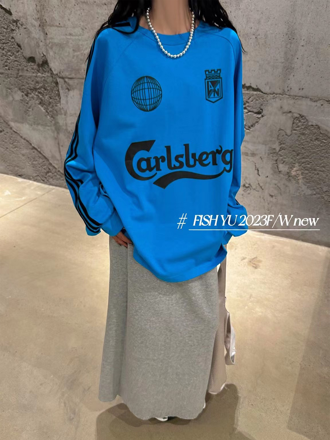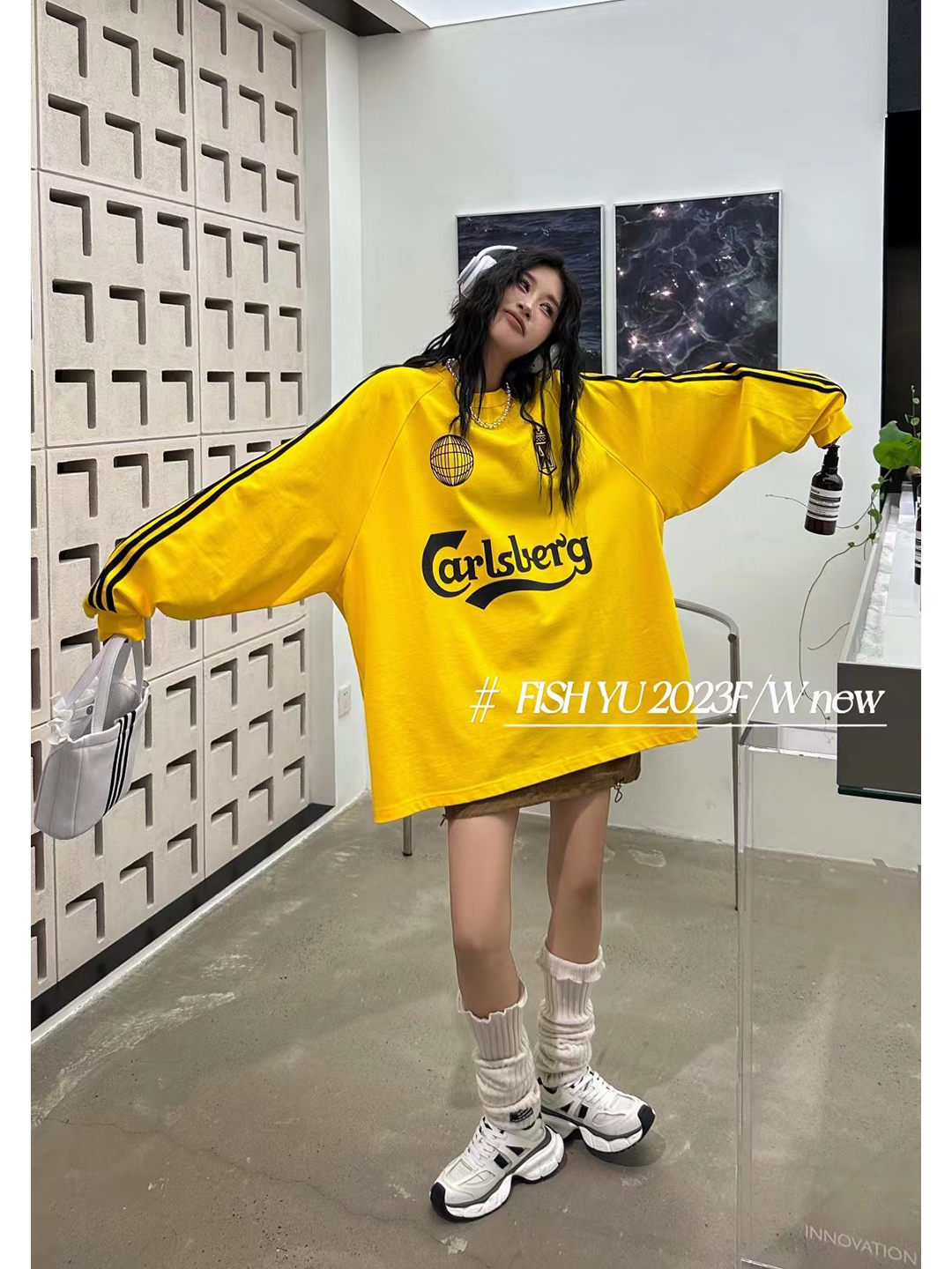 衛衣T恤女長袖大尺碼薄款美式復古側邊槓條設計撞色巨顯瘦遮臀長版T