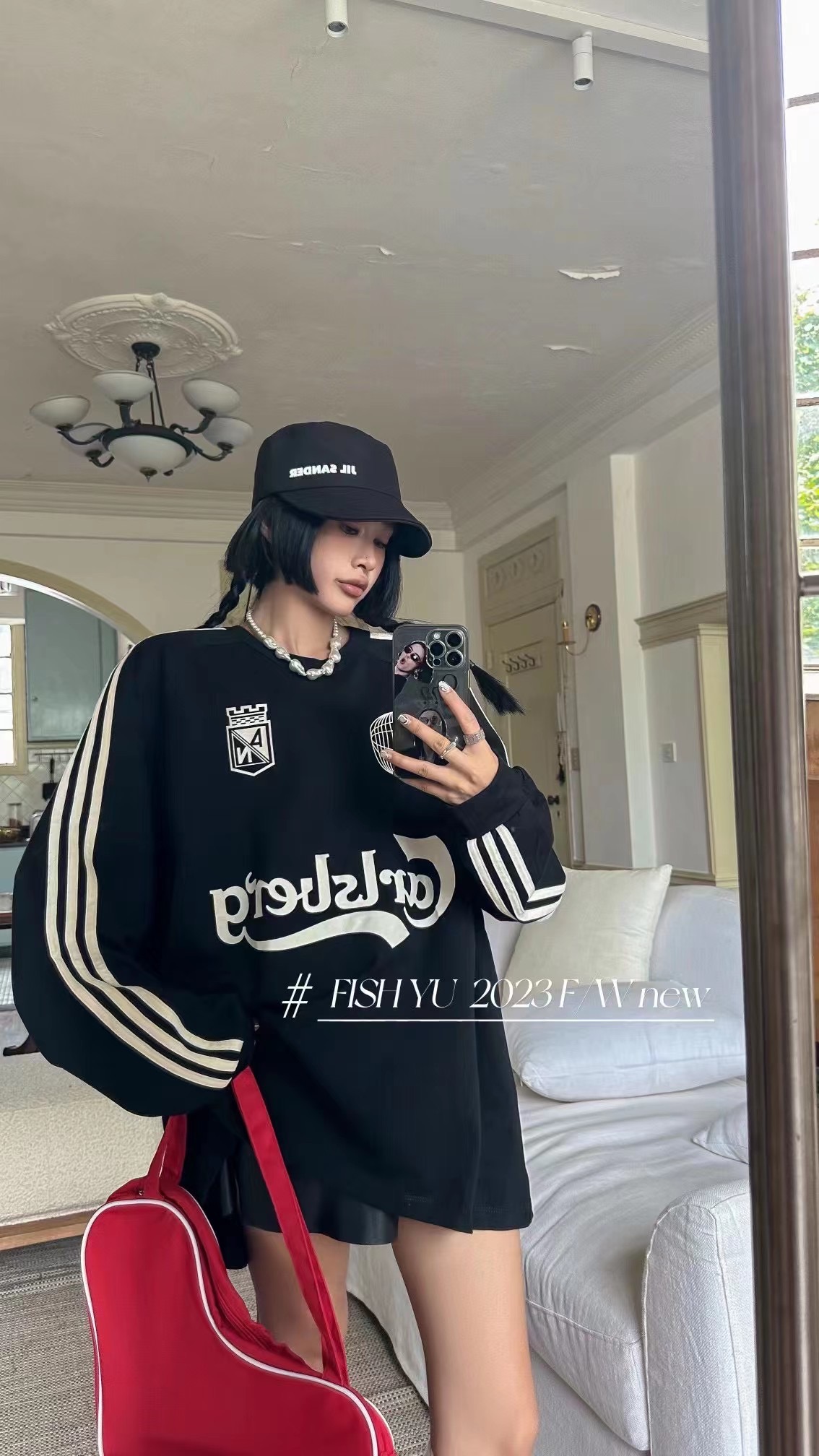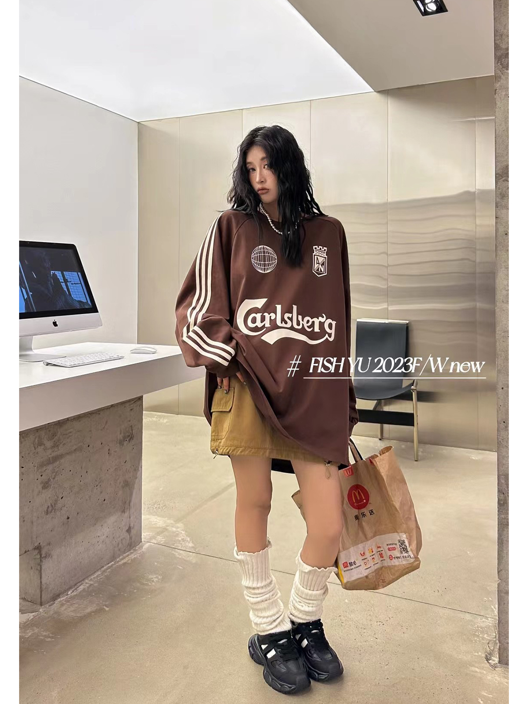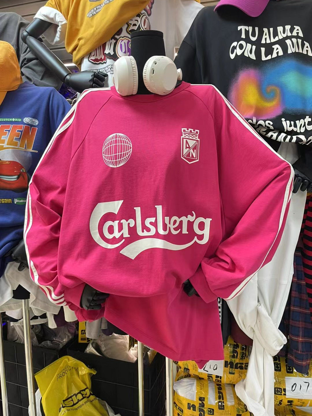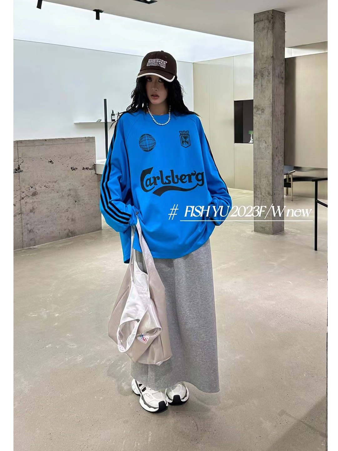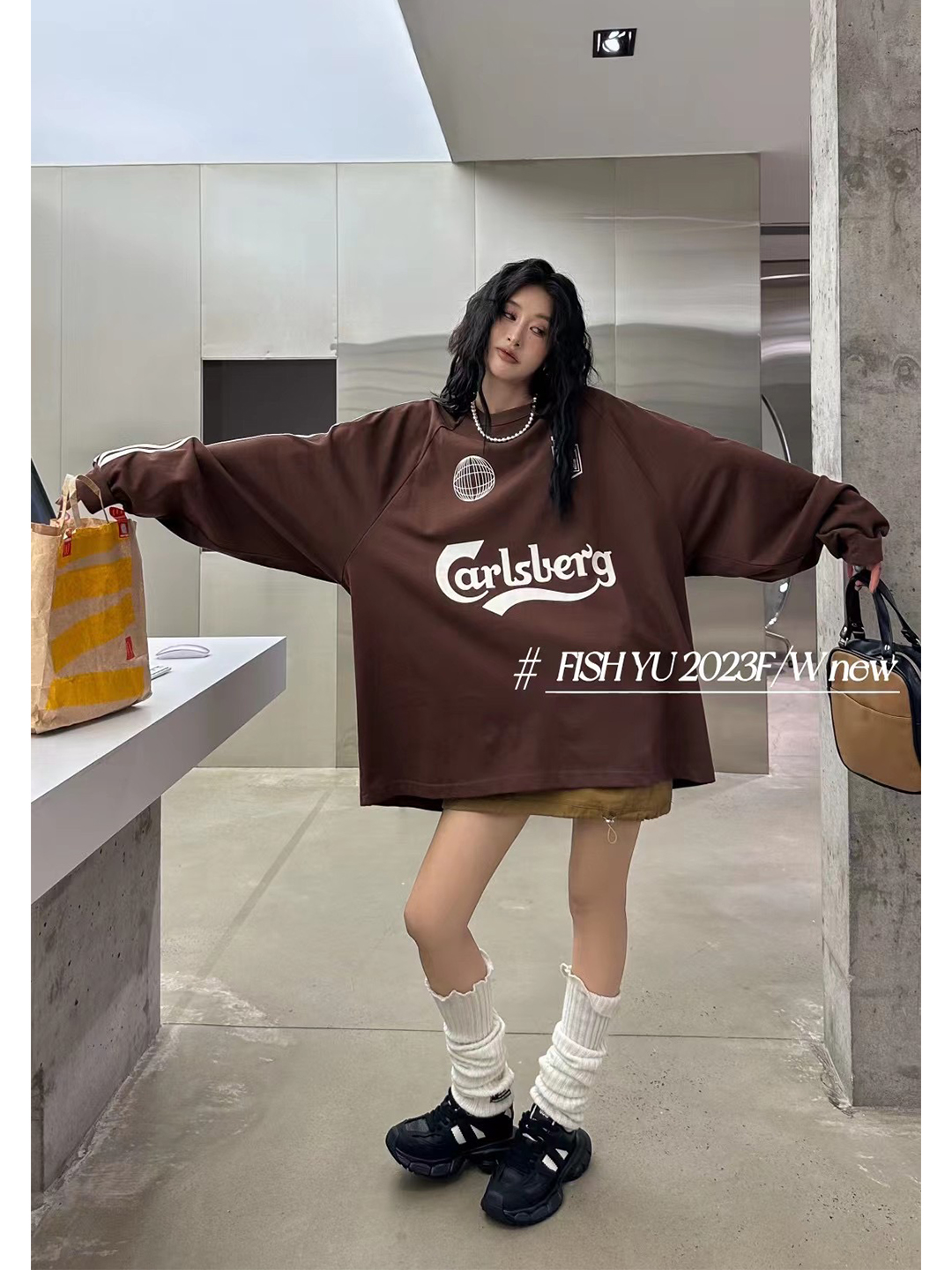 衛衣T恤女長袖大尺碼薄款美式復古側邊槓條設計撞色巨顯瘦遮臀長版T