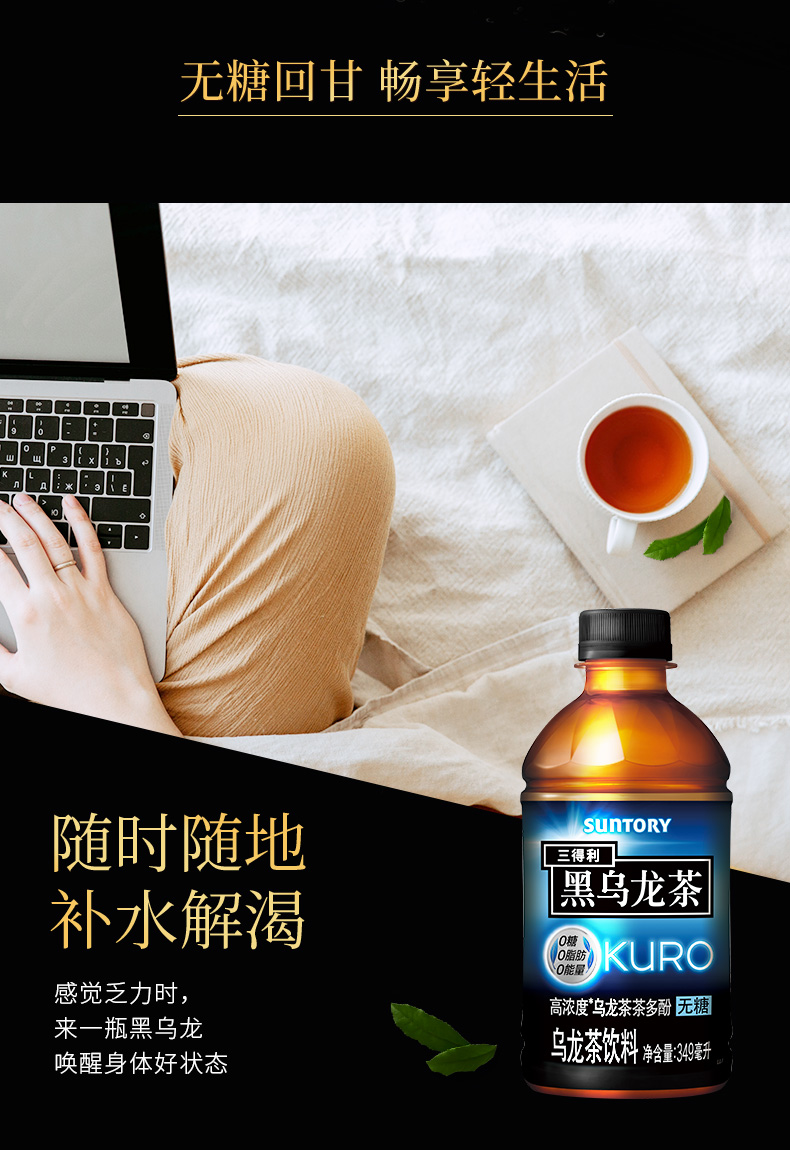 山姆超市三得利無糖黑烏龍茶飲料高濃度0糖0脂349ml*24瓶整箱正品