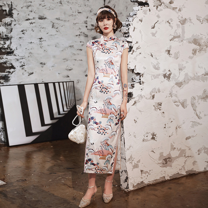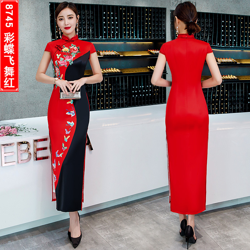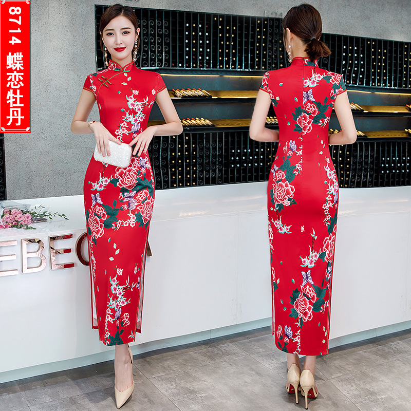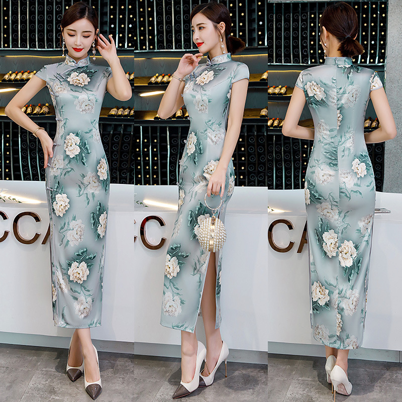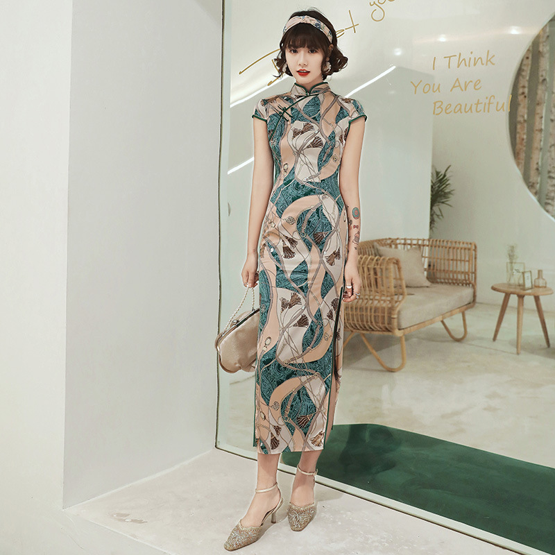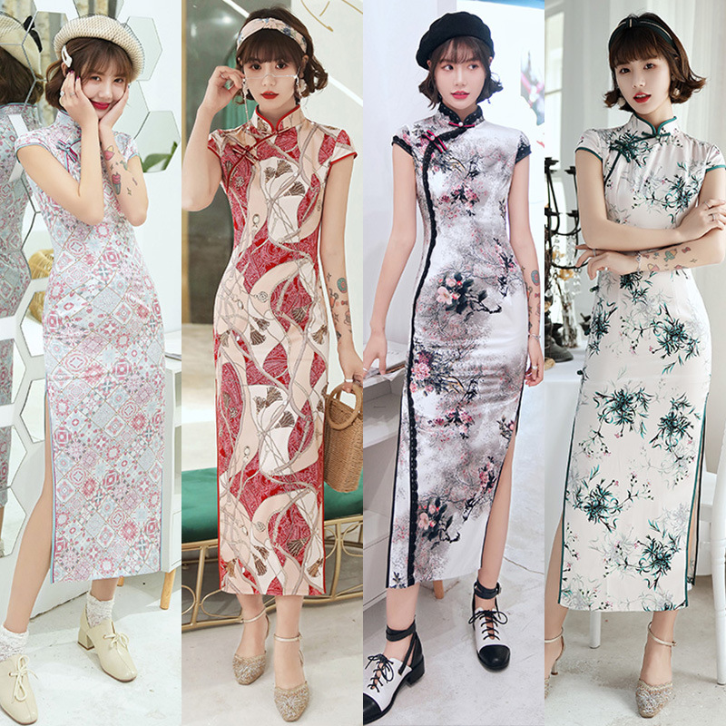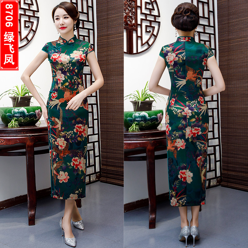 【断码清仓】【特价处理】丝绸长款双层日常旗袍改良大妈连衣裙