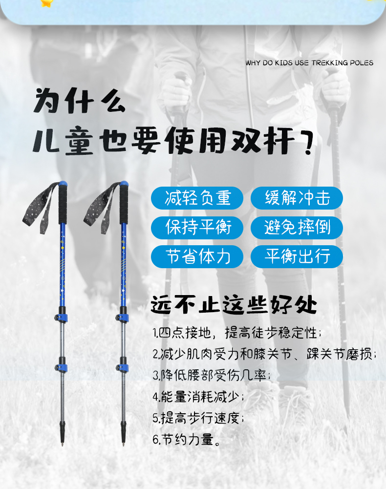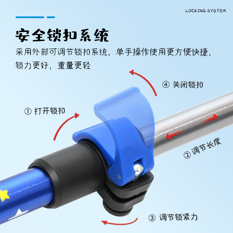 G2兒童登山杖超輕外鎖鋁合金三節伸縮可調節戶外徒步爬山裝備手杖