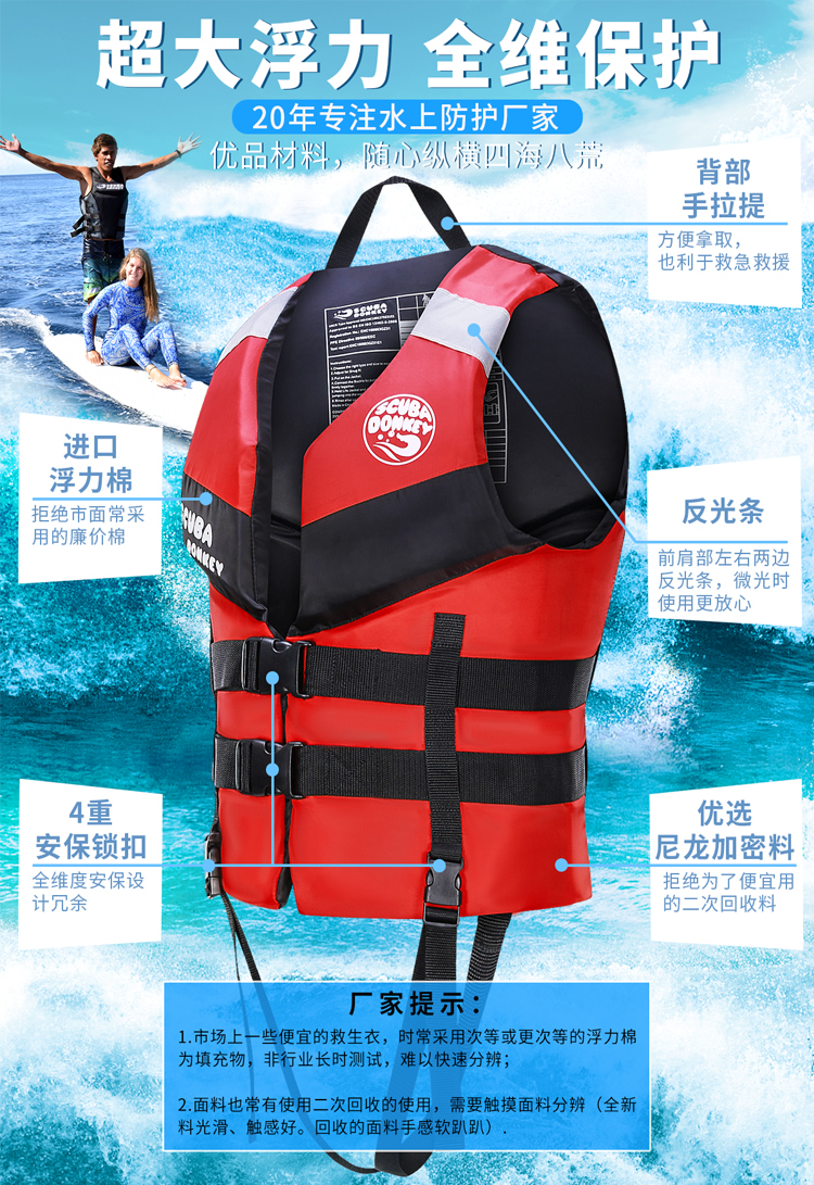 大浮力救生衣大人成人兒童遊泳圈浮力衣背心專業浮潛裝備釣魚便捷