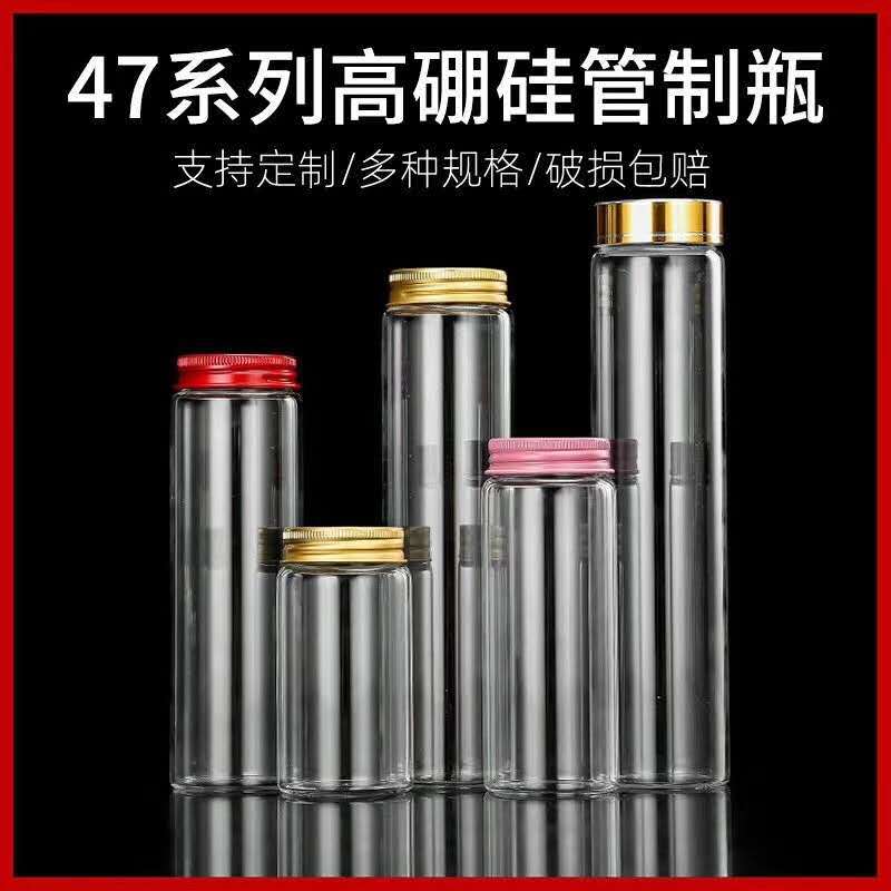 47mm铝盖高硼硅管制瓶玻璃瓶粉末密封瓶糖果瓶燕窝瓶口服液瓶