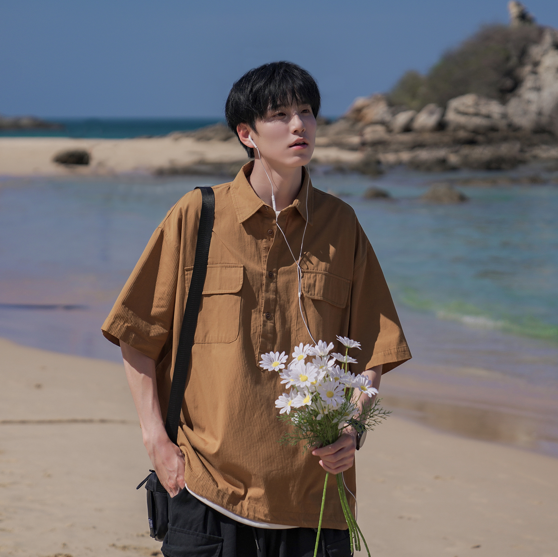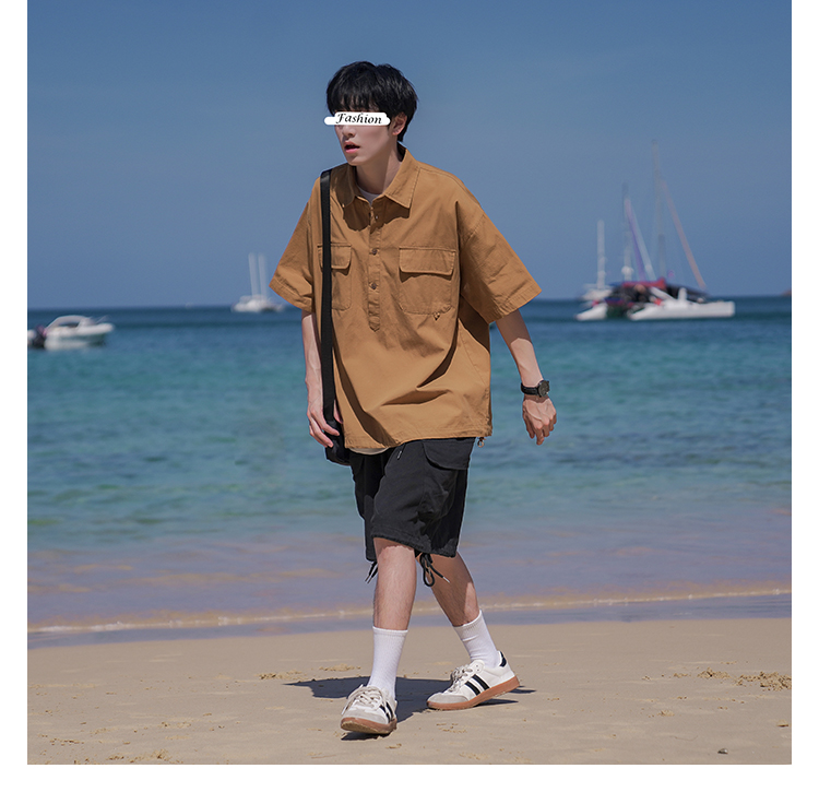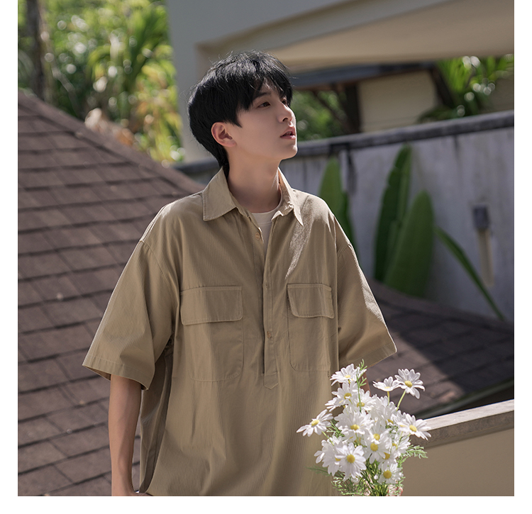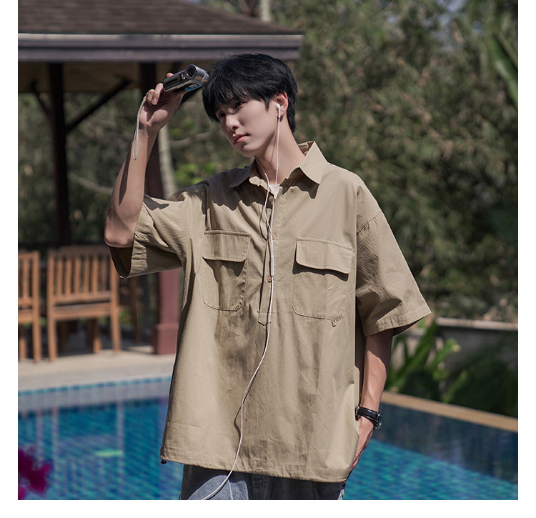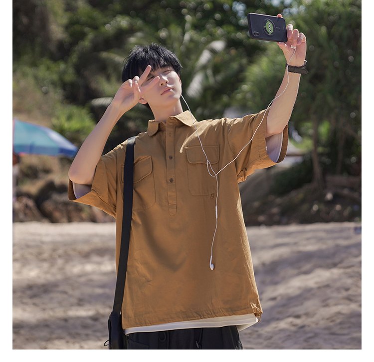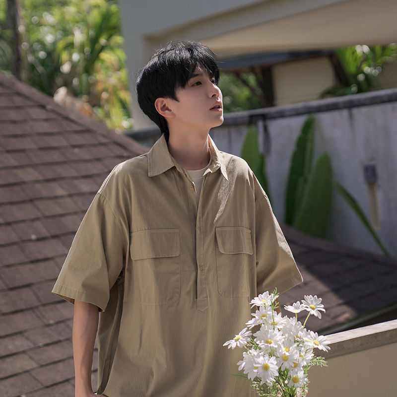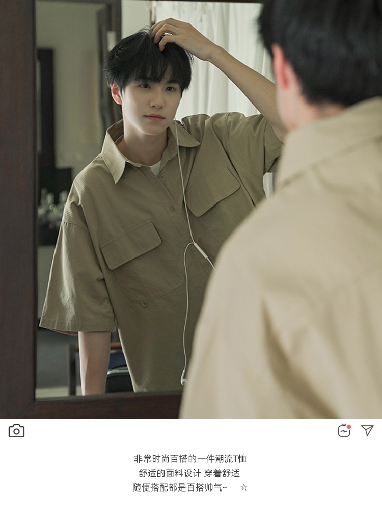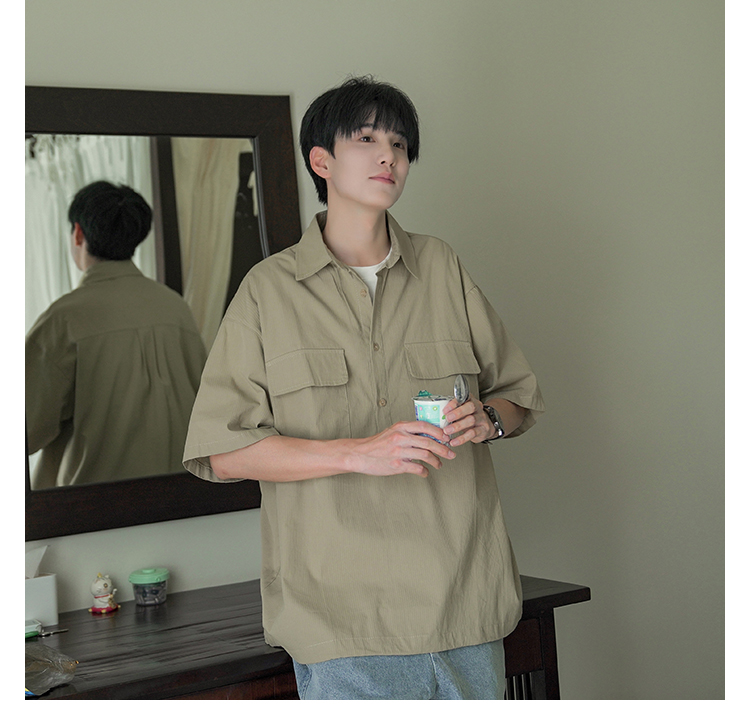 日系復古POLO衫男夏季潮牌設計感小眾寬鬆休閒口袋襯衫領短袖t恤