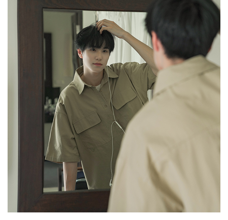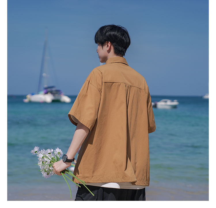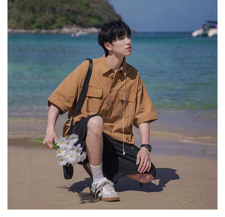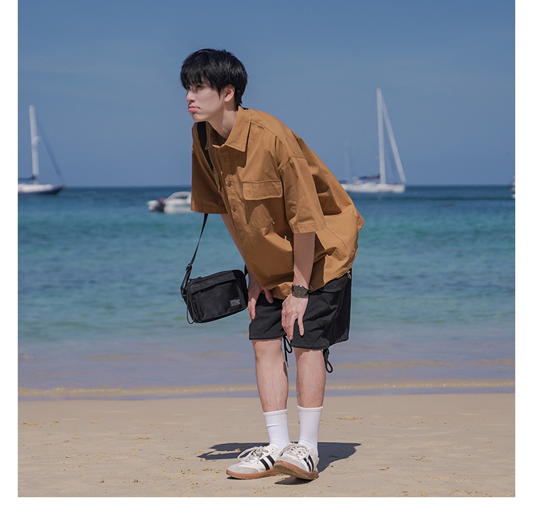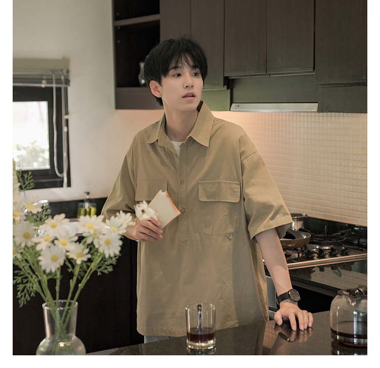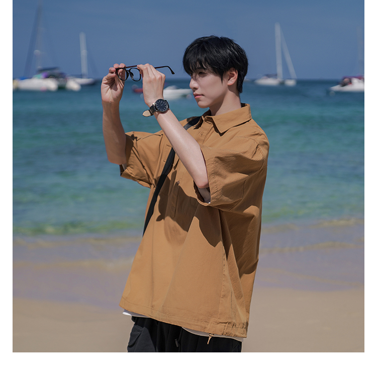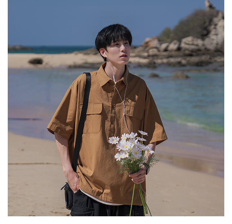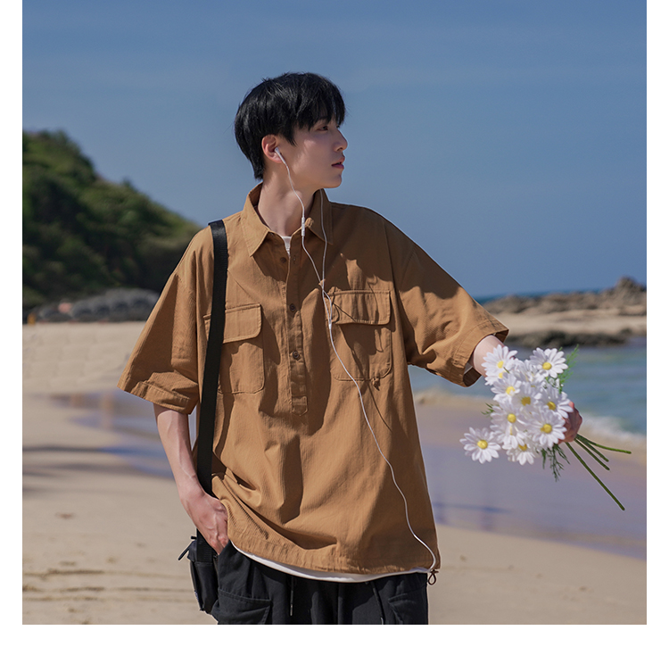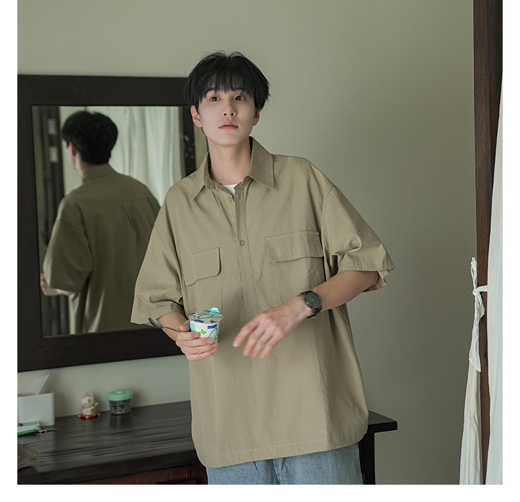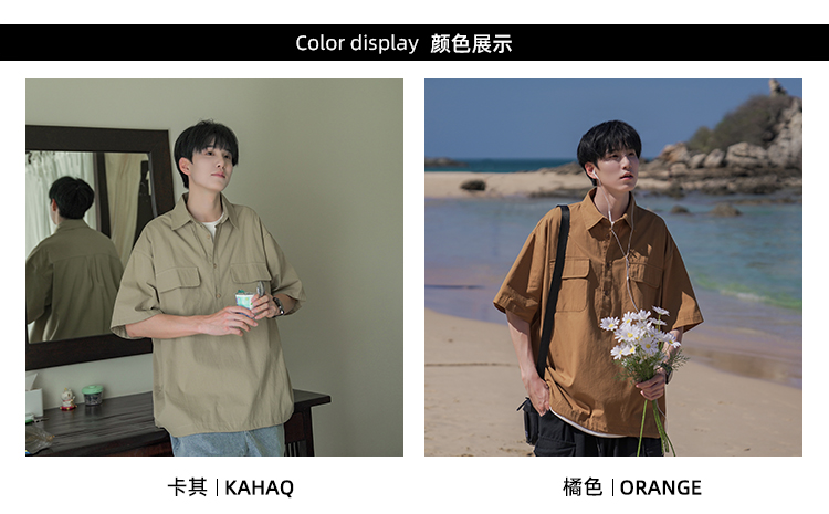 日系復古POLO衫男夏季潮牌設計感小眾寬鬆休閒口袋襯衫領短袖t恤