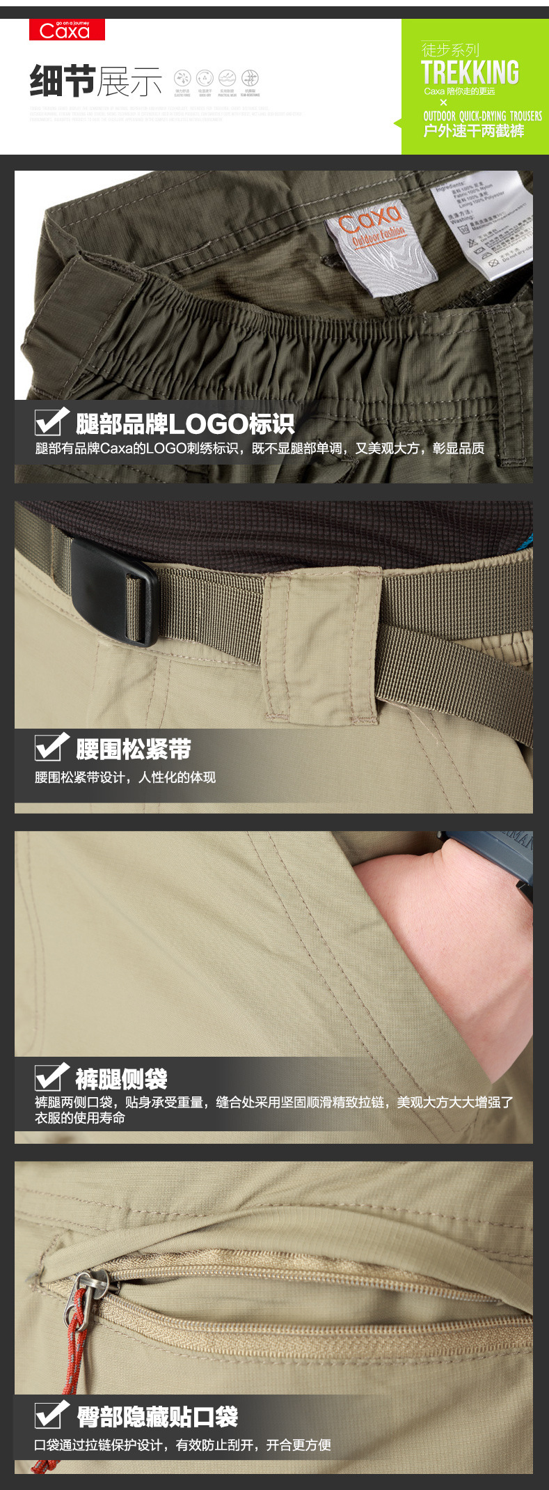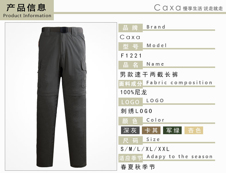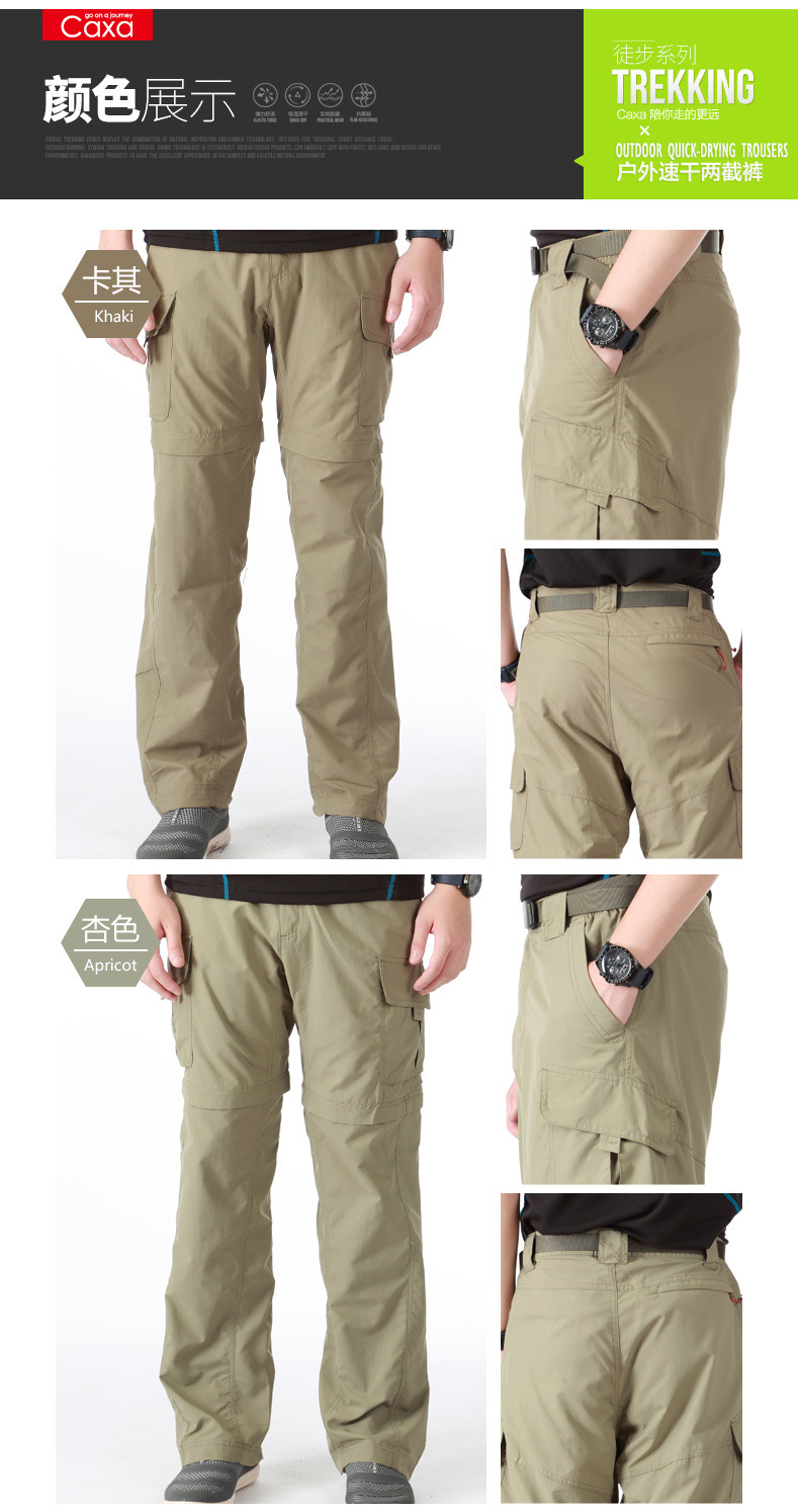 Caxa戶外速乾褲 男兩截可拆卸多袋長短褲登山褲快乾褲 夏季薄款