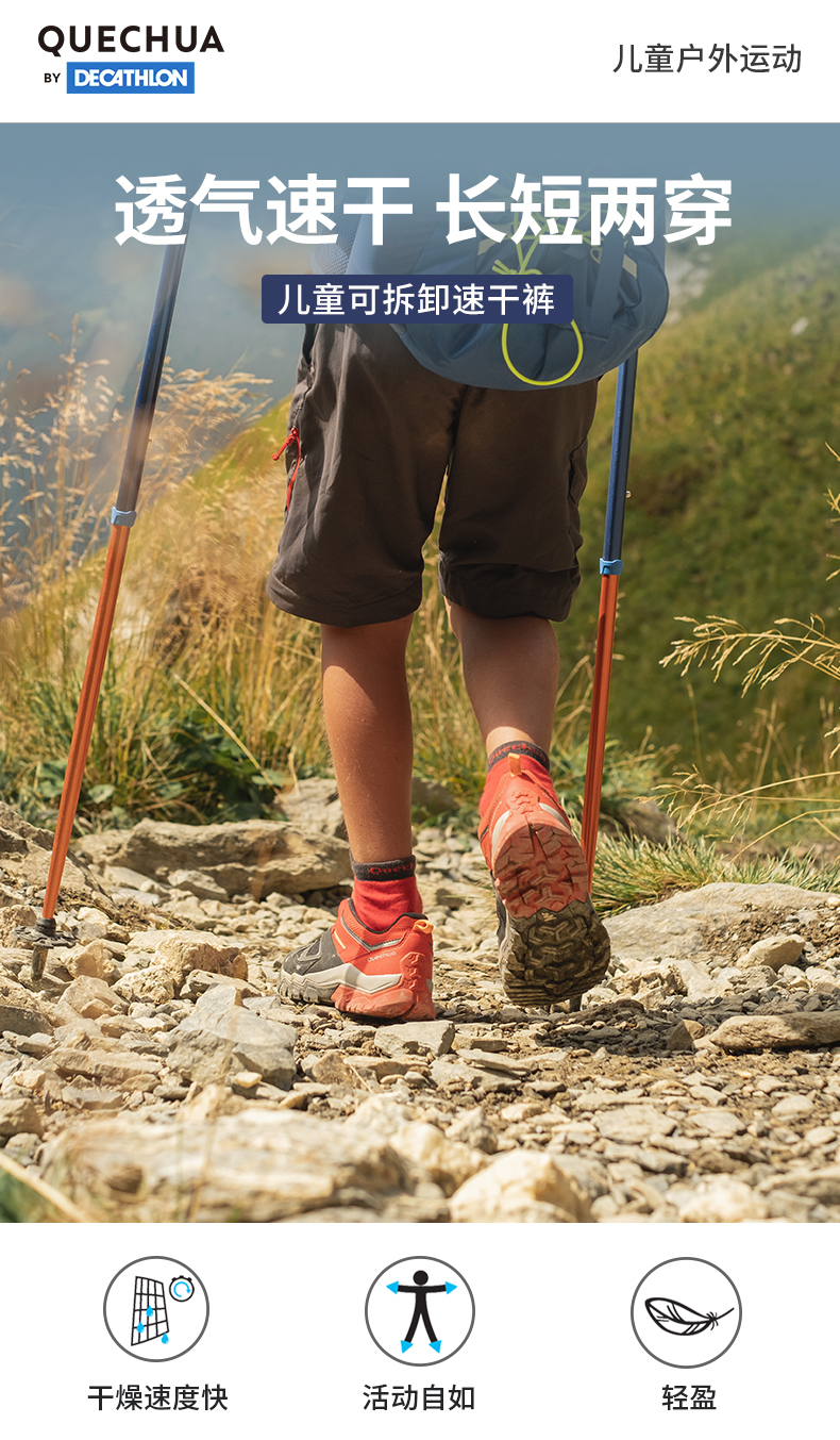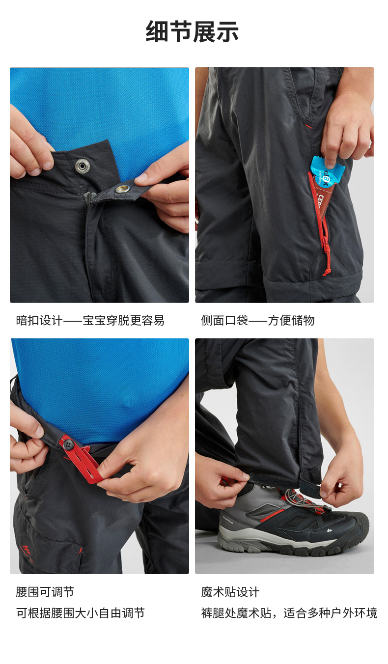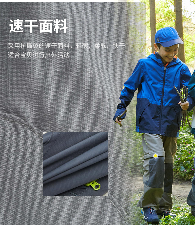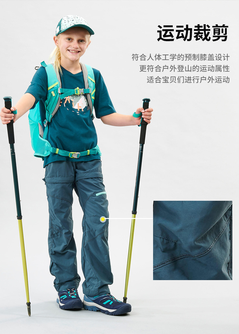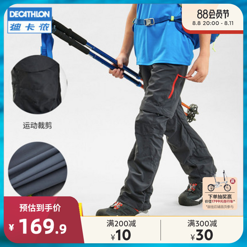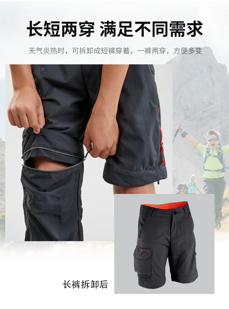 迪卡儂速乾褲男童戶外徒步登山兩截褲兒童短褲工裝褲子夏裝薄KIDC