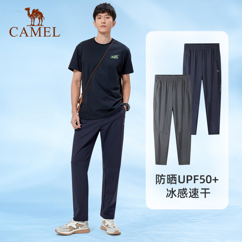 駱駝運動速乾長褲男2023春夏新款女薄款束褲腳褲透氣寬鬆梭織褲子