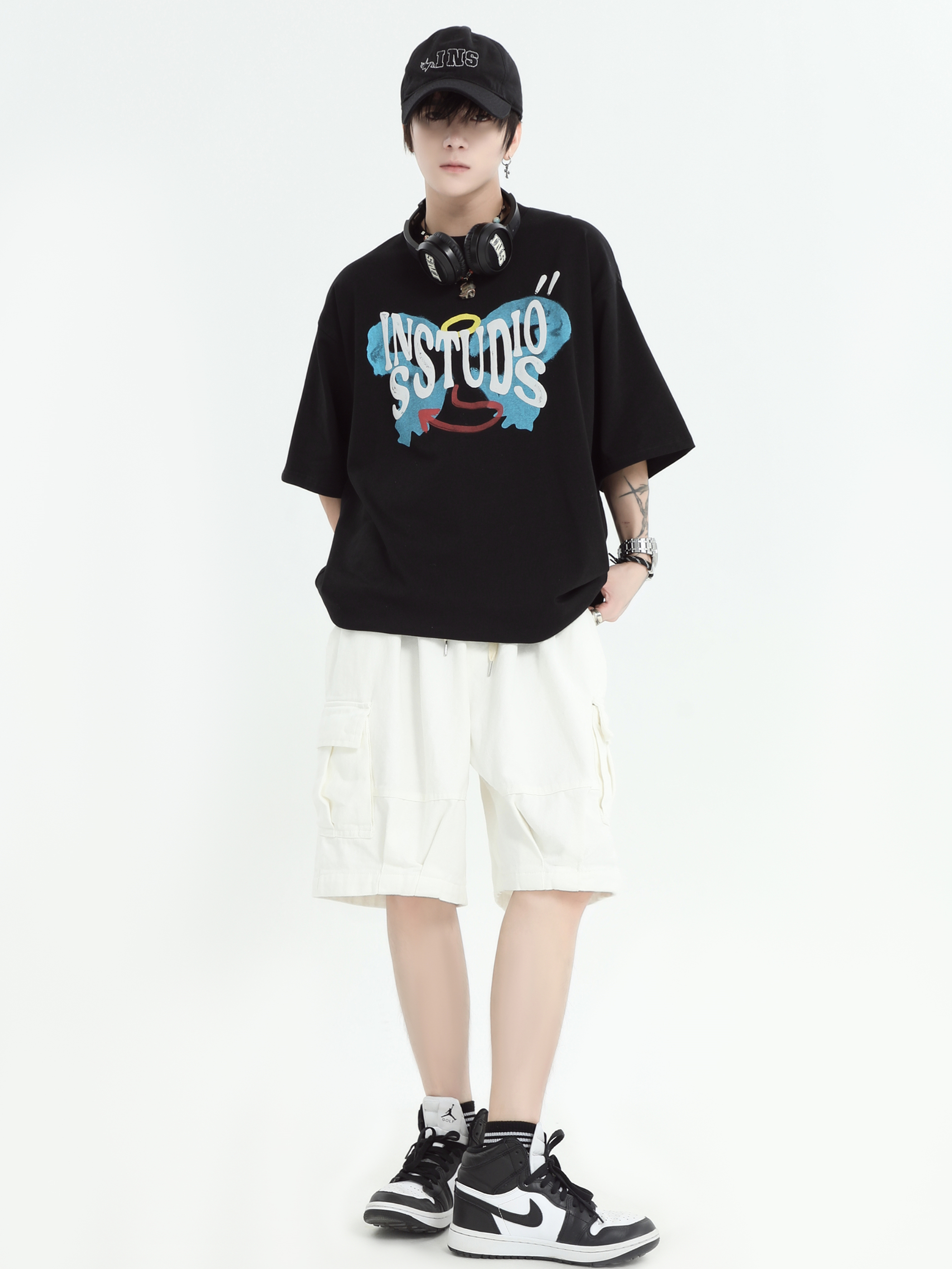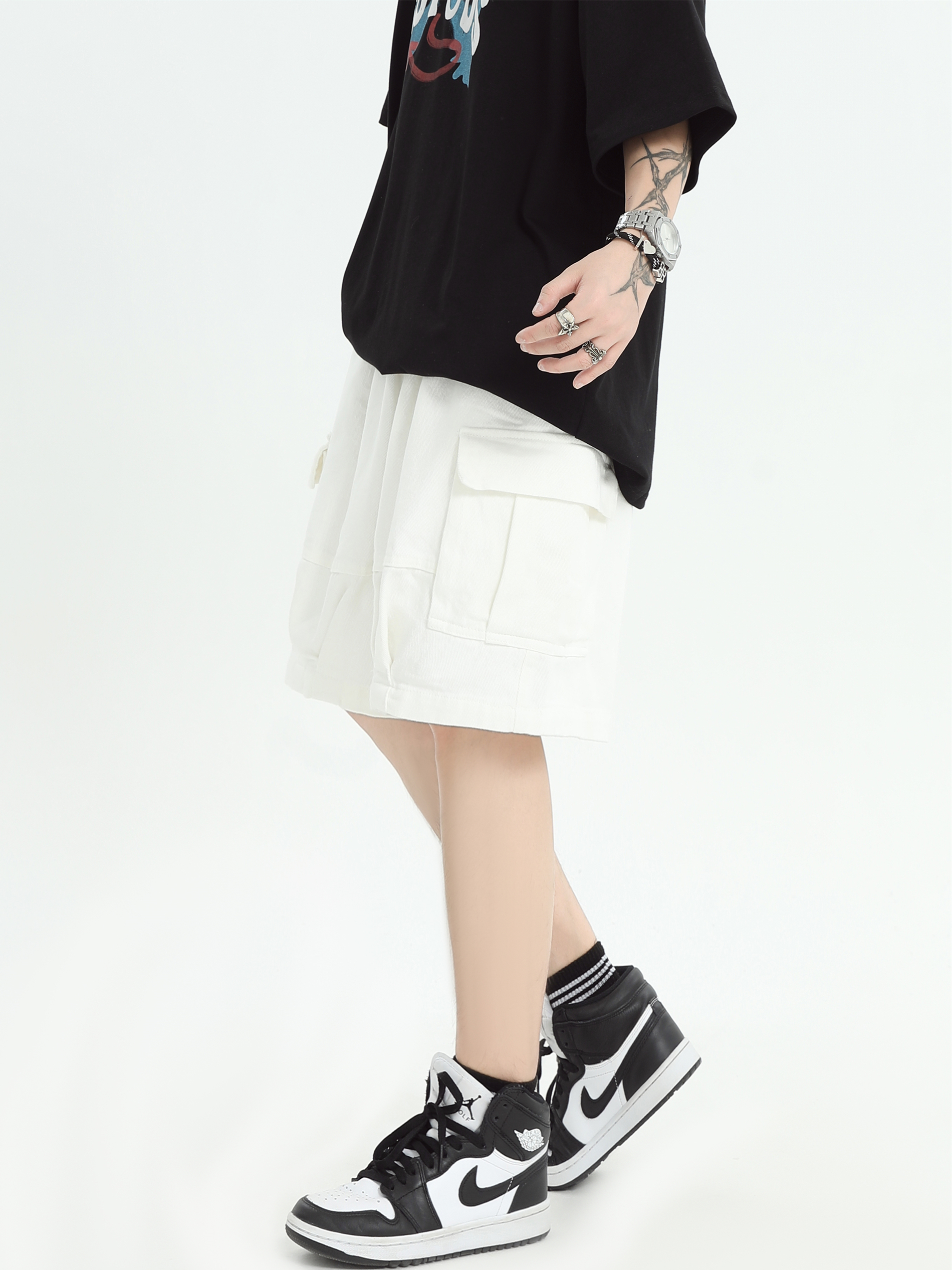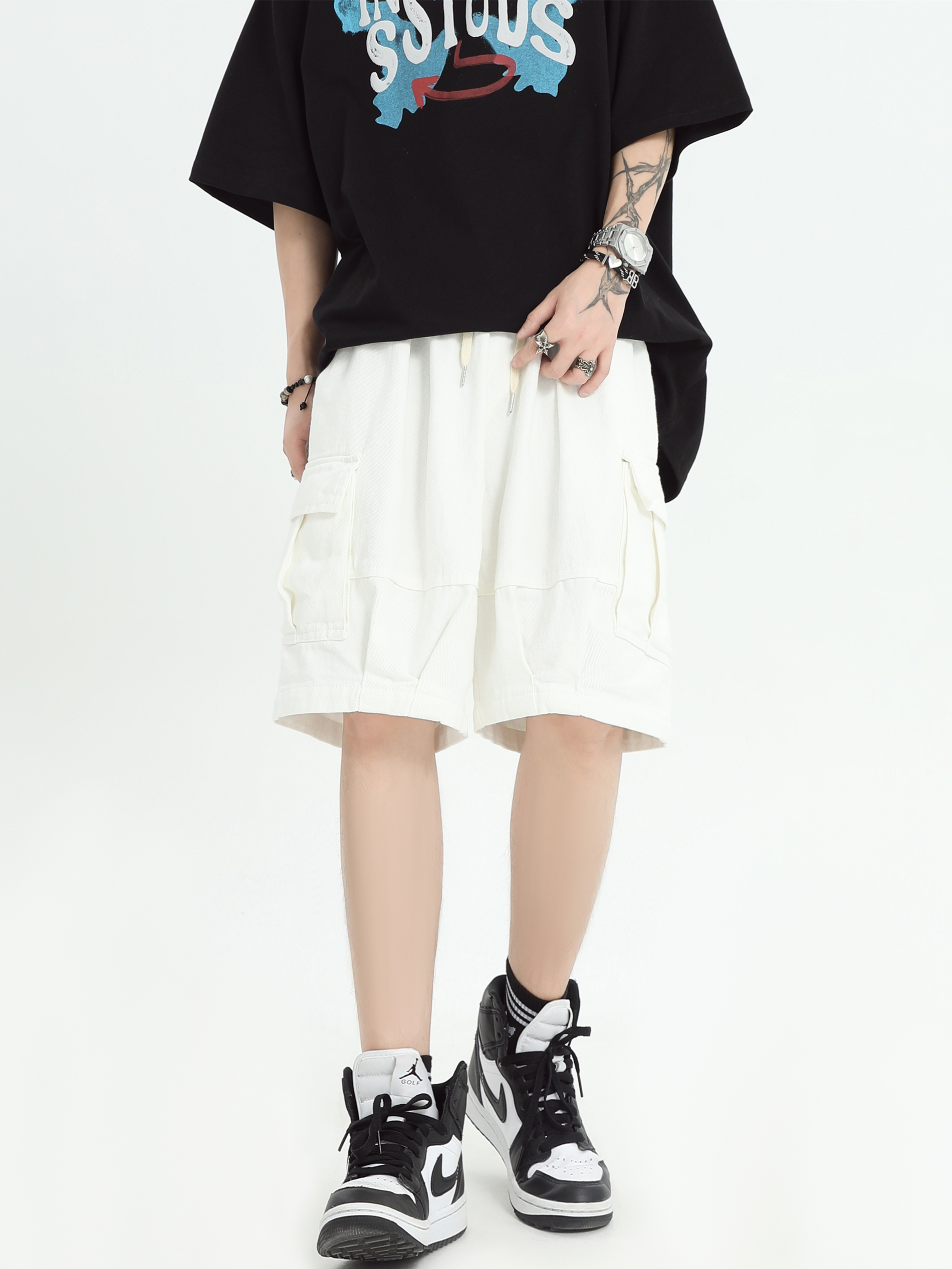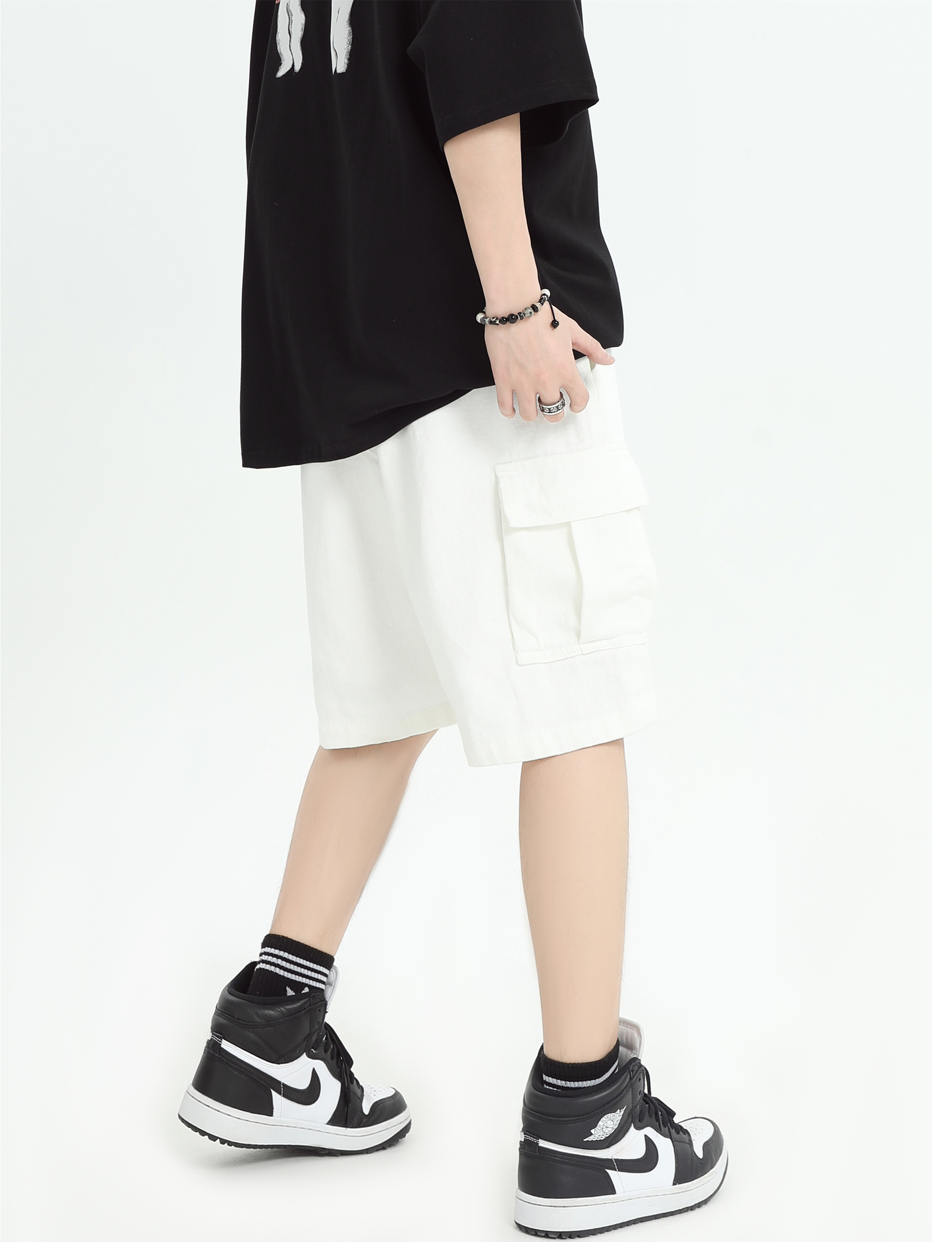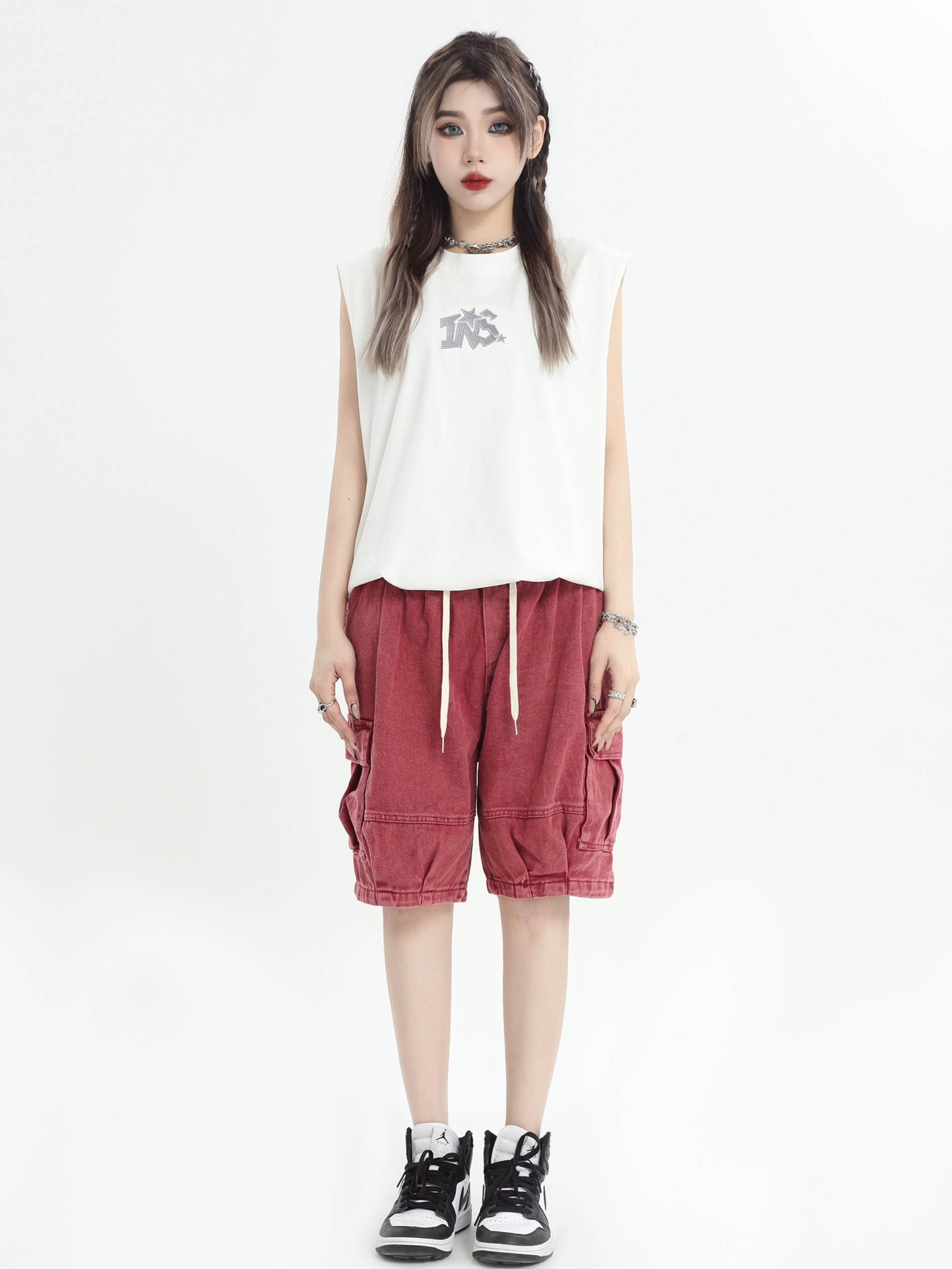 NOPASS 國潮牌情侶原創美式做舊洗水牛仔短褲寬鬆貼袋工裝五分褲