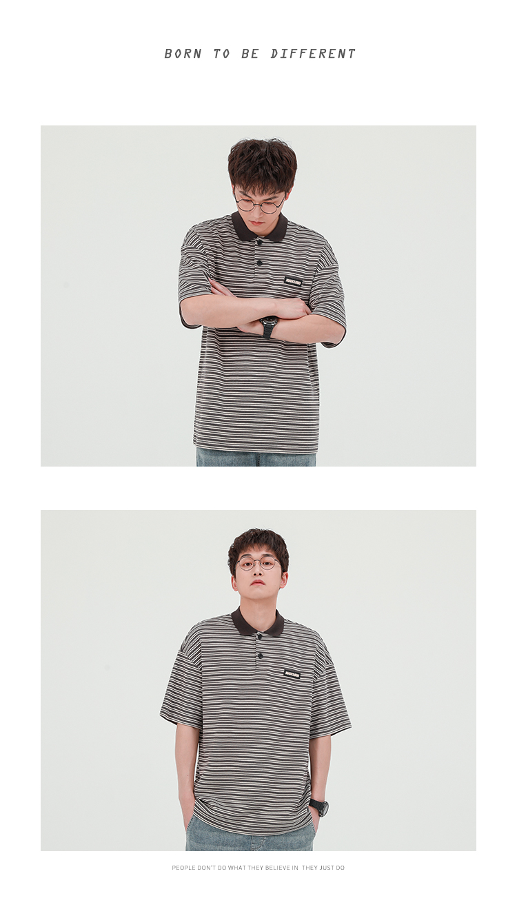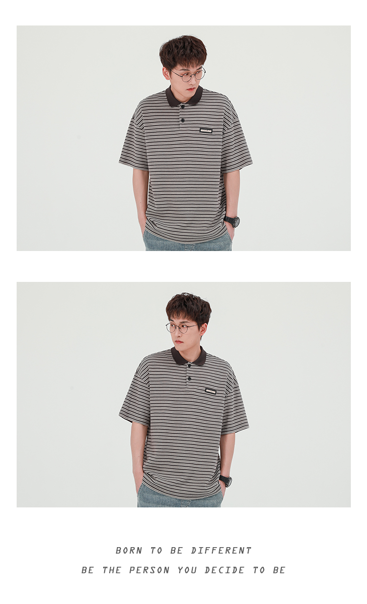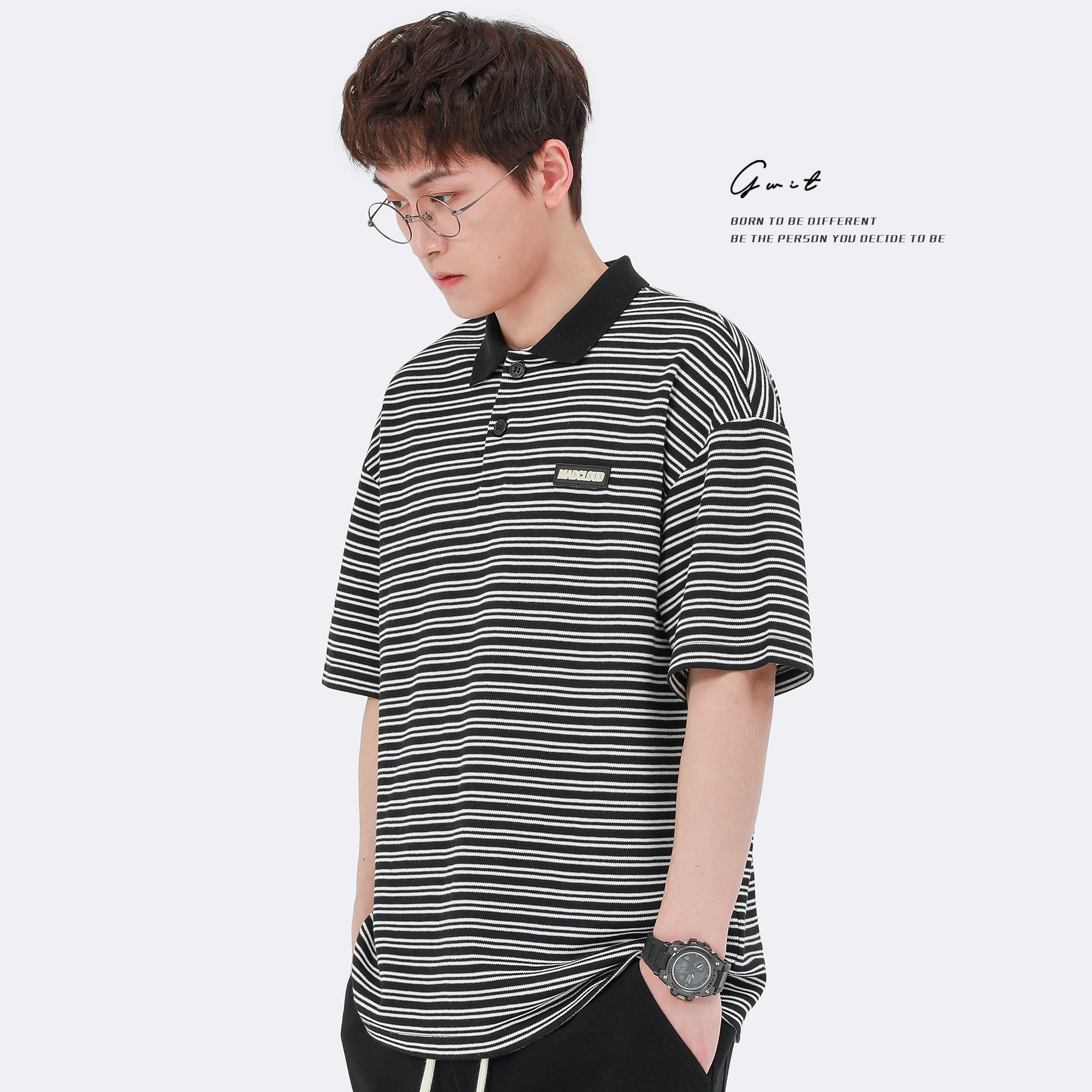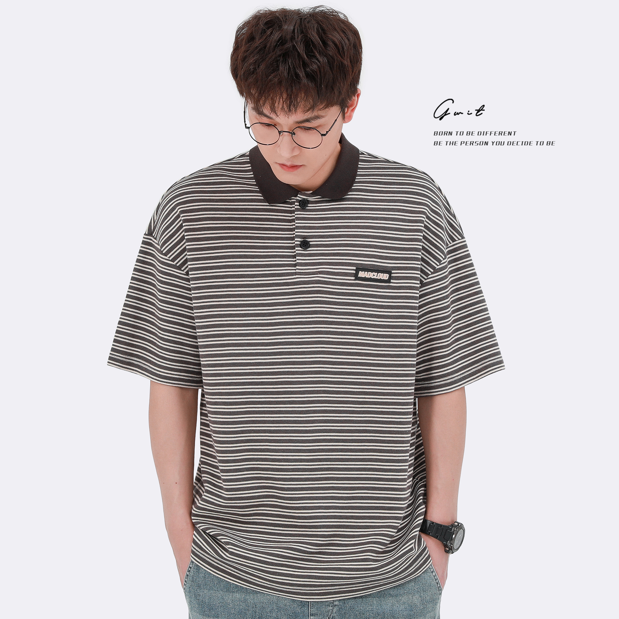 GWIT 60s雙股珠地 夏季新款拉夫·勞倫馬球衫上衣翻領T恤條紋短袖polo衫男