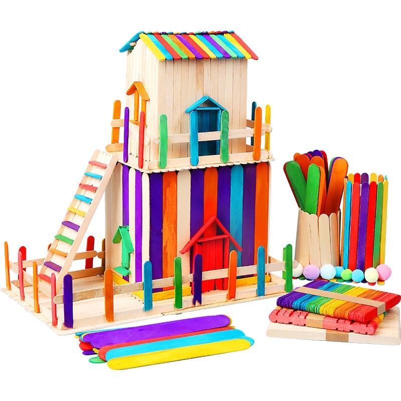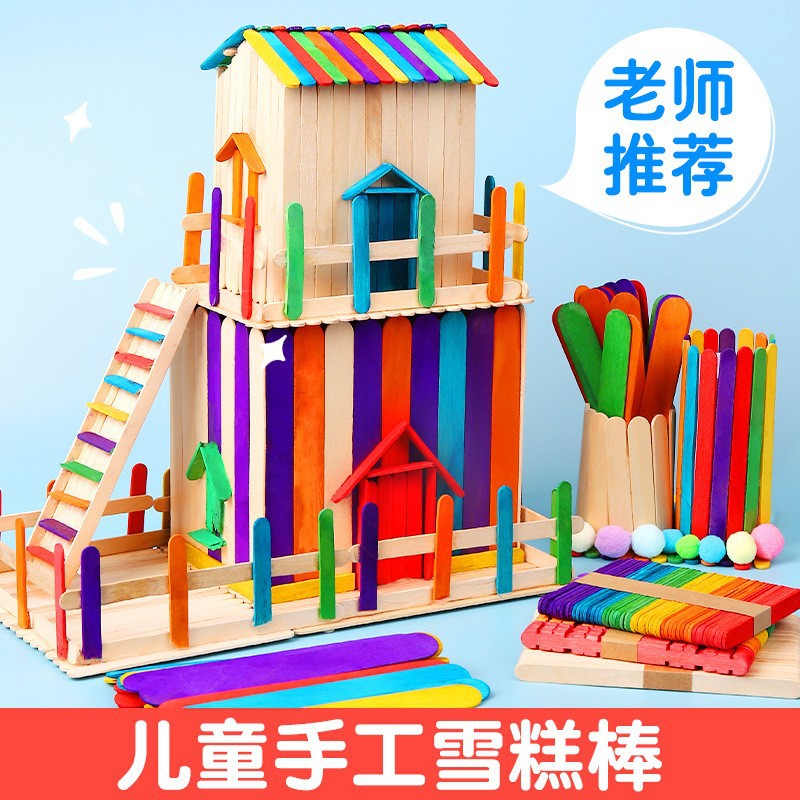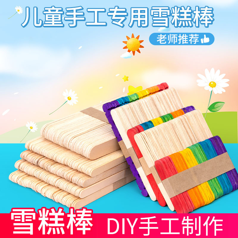 手工彩色雪糕棒diy冰糕棍雪糕棒圆木棒小木板片木条冰棒棍材料