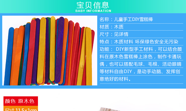 颜色 原色【6.5*1cm】,彩色【6.5*1cm】,原色【8*1.5cm】,原色【9.3*1cm],彩色【9.3*1cm】,原色【11.5*1cm】,彩色【11.5*1cm】,原色【12.5*1cm】,原色【14*1cm】,原色【15*1cm】,原色【15*1.8cm】,彩色【15*1.8cm】,原色【16*1cm】,原色【18*1cm】,原色拼插【11.5*1cm】,彩色拼插【11.5*1cm】,原色带孔50根(15*1.8cm),彩色带孔50根(15*1.8cm),圆木棒原色【10*0.5cm】,圆木棒彩色【10*0.5cm】,圆木棒原色【15*0.5cm】,圆木棒彩色【15*0.5cm】,圆木棒原色【20*0.5cm】,圆木棒彩色【20*0.5cm】,【原木色火柴棒】1000根,【彩色火柴棒】1000根