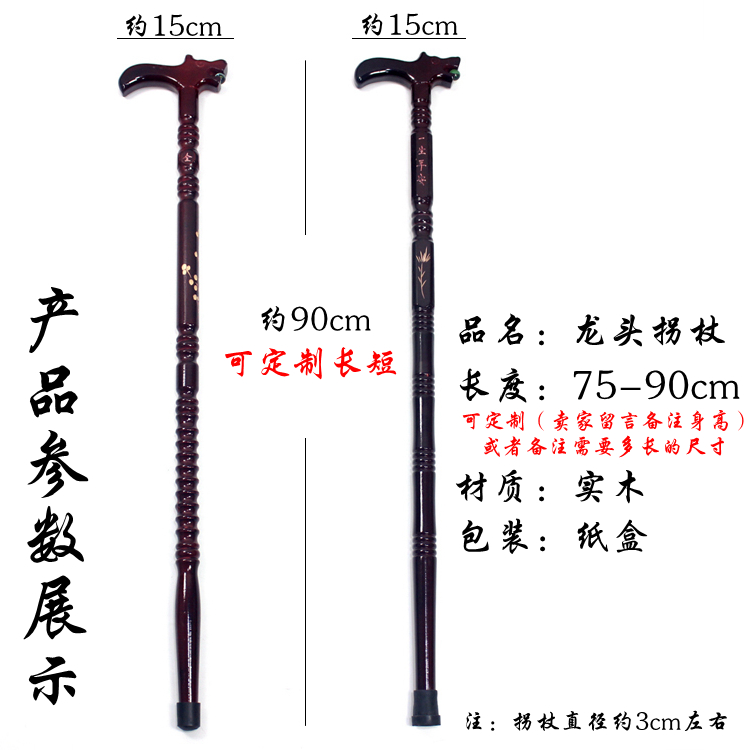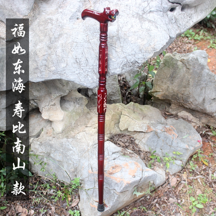 實木龍頭柺杖防滑柺棍老人手杖橡膠防滑老年禮品福如東海壽比南山