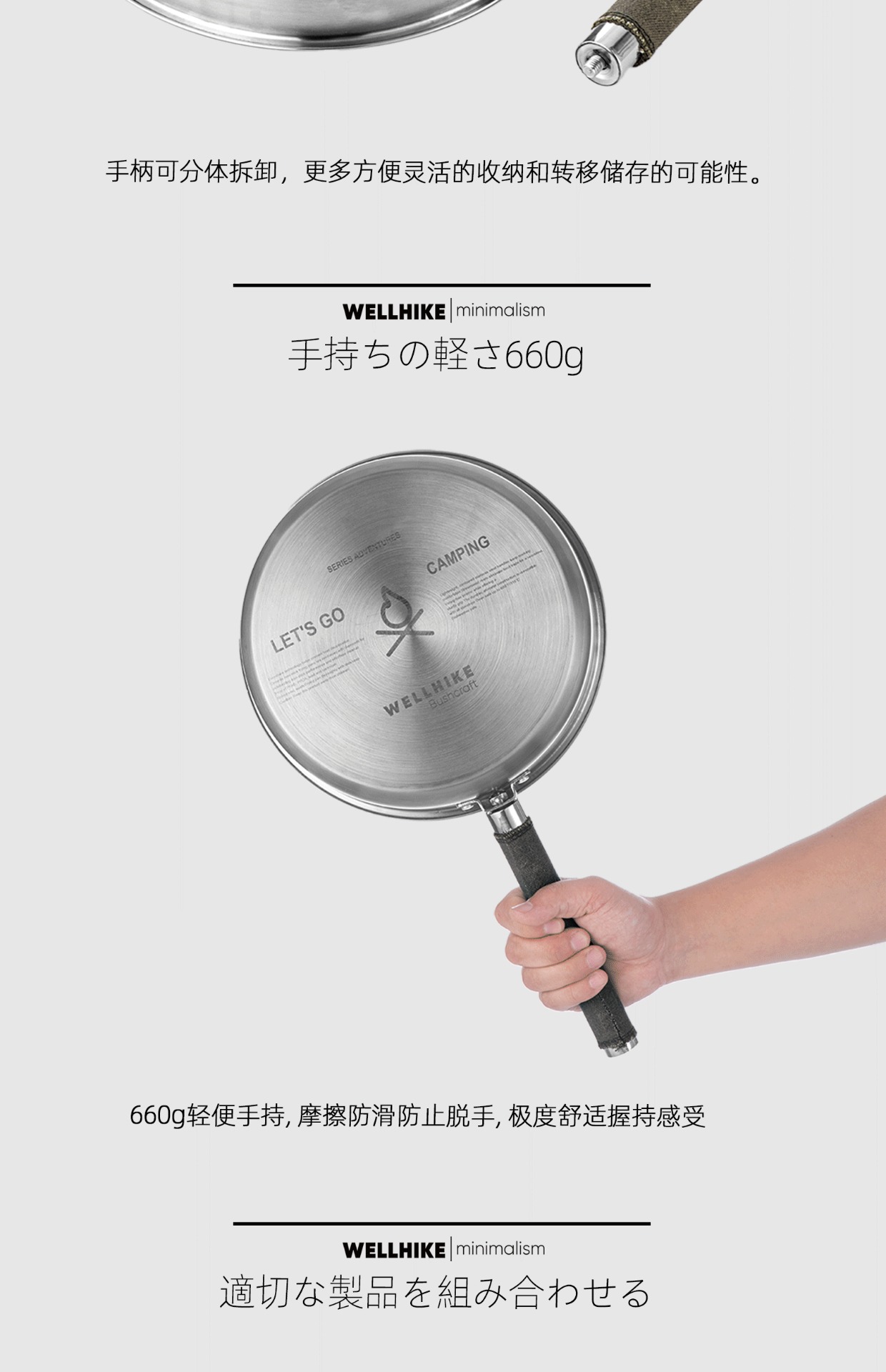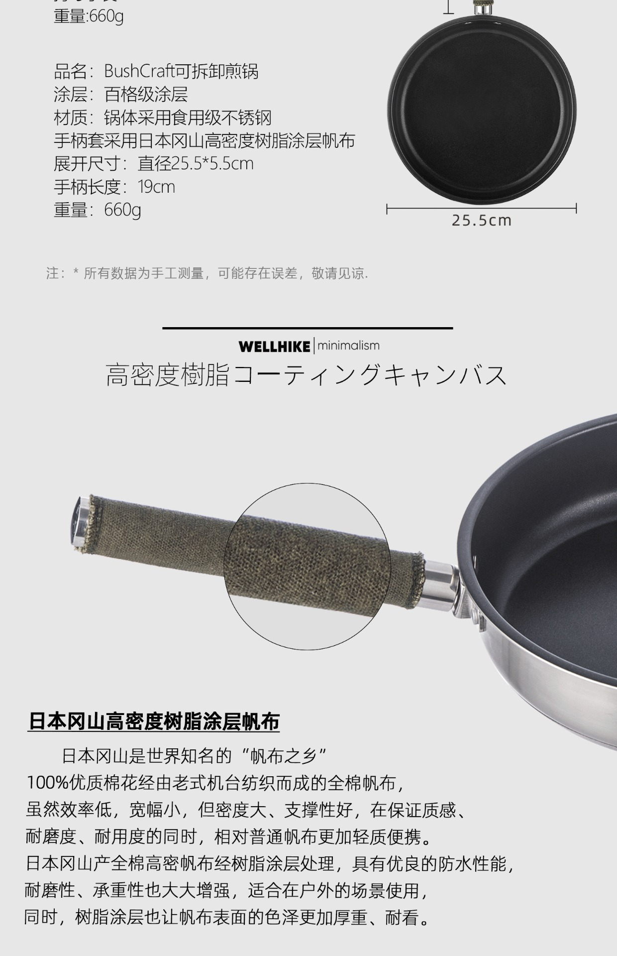 WELLHIKE戶外煎鍋 BushCraft不沾鍋炒鍋露營可攜式可拆卸野餐鍋具