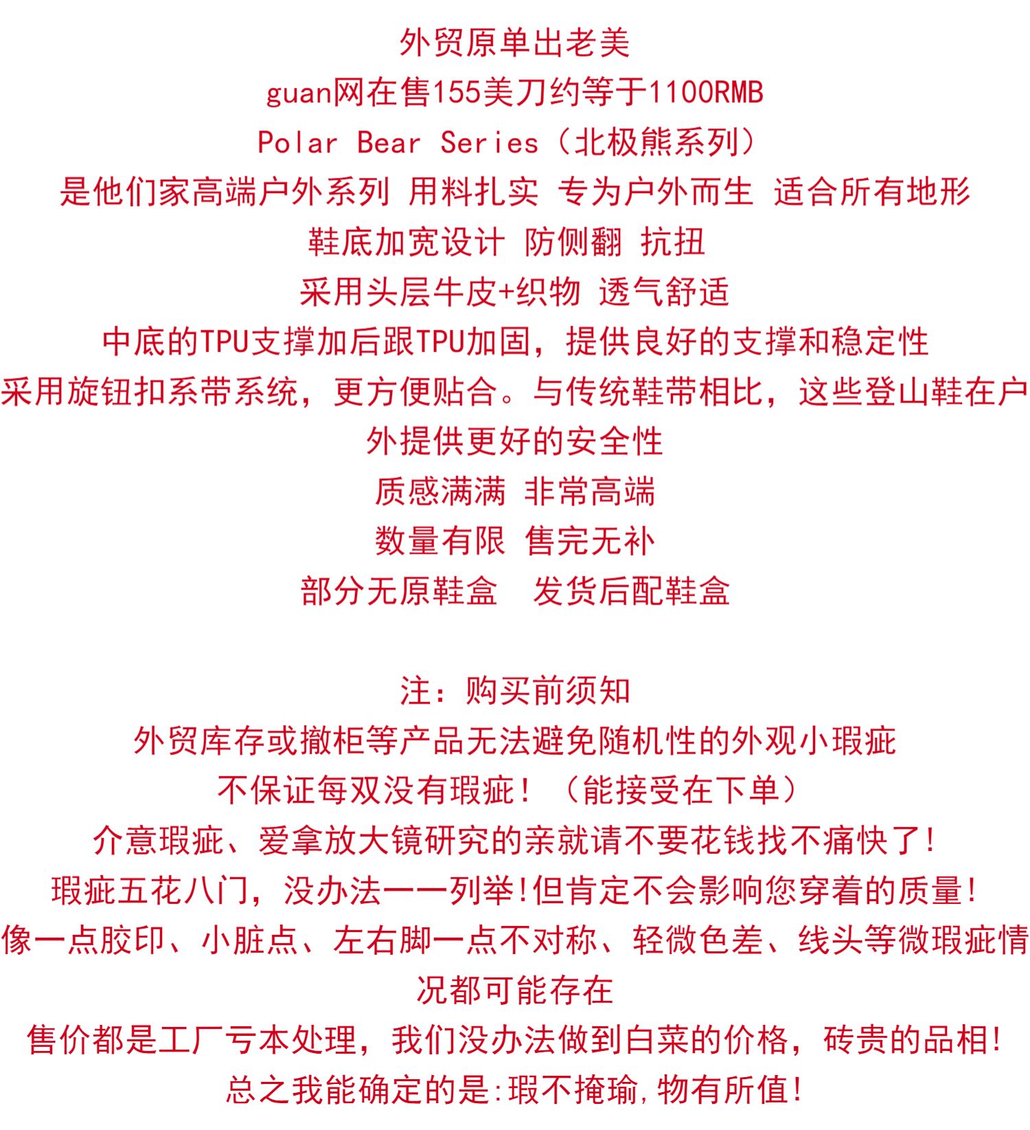 在售155美刀 高端系列頭層牛皮出老美戶外防水登山徒步男鞋旋鈕釦