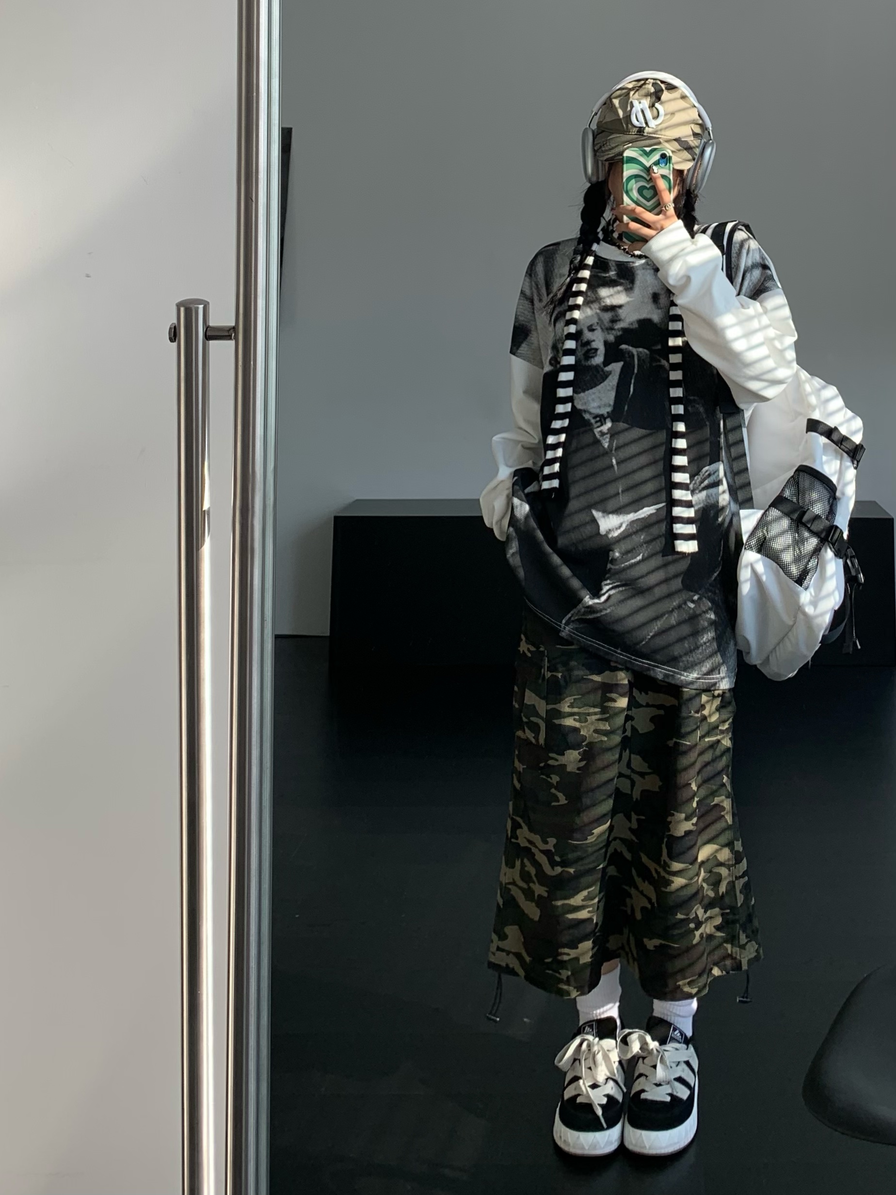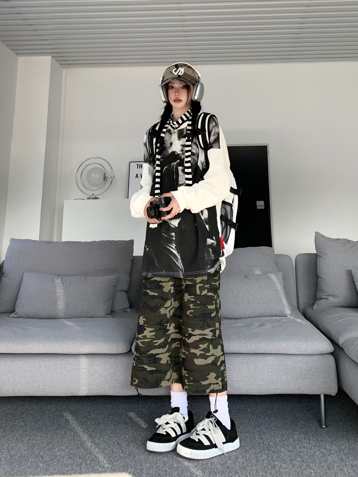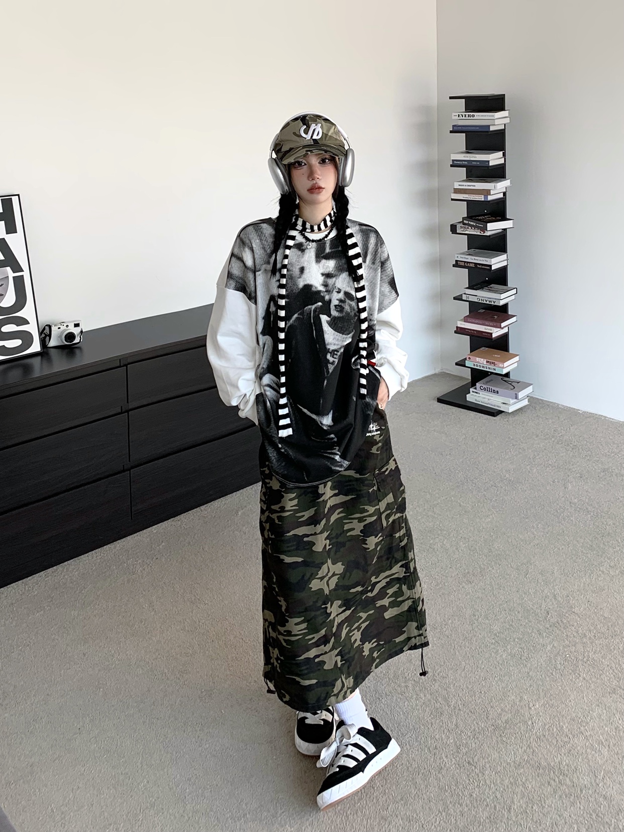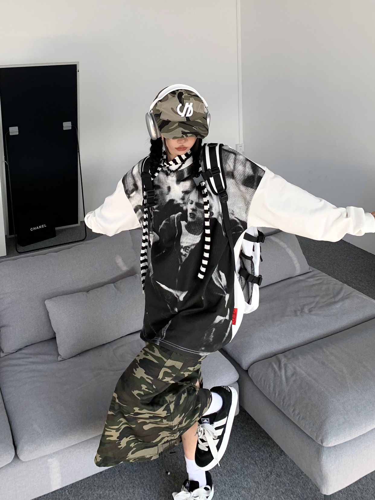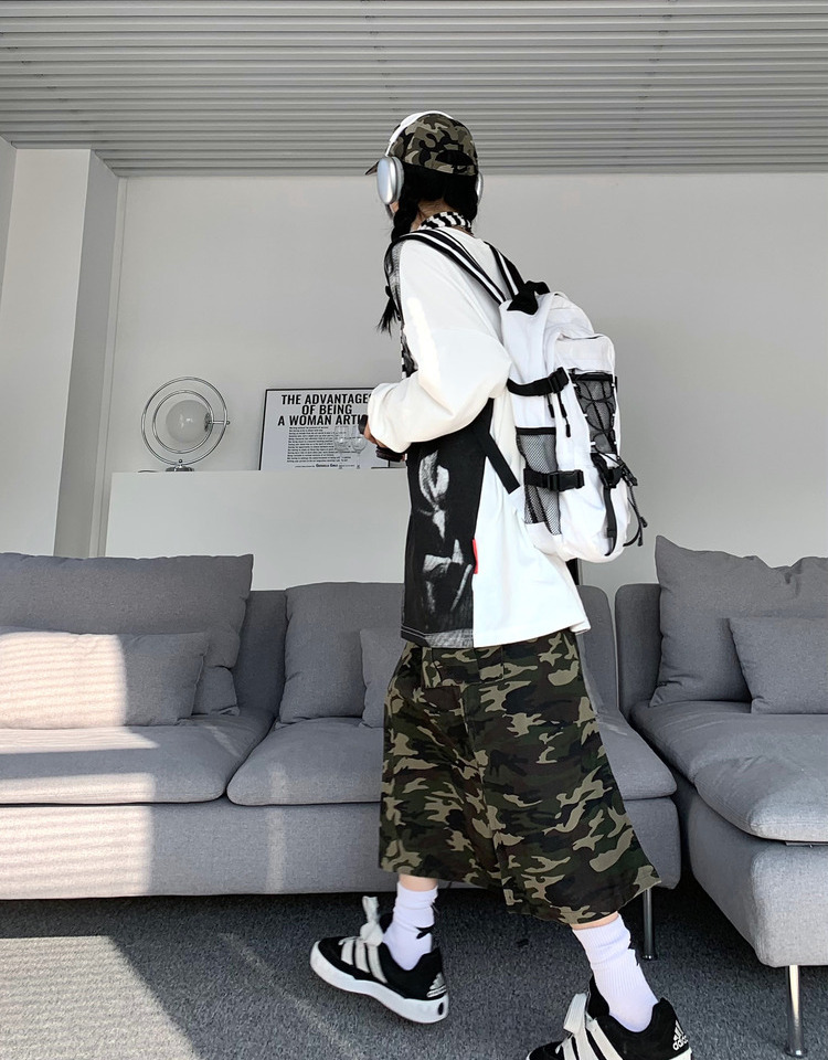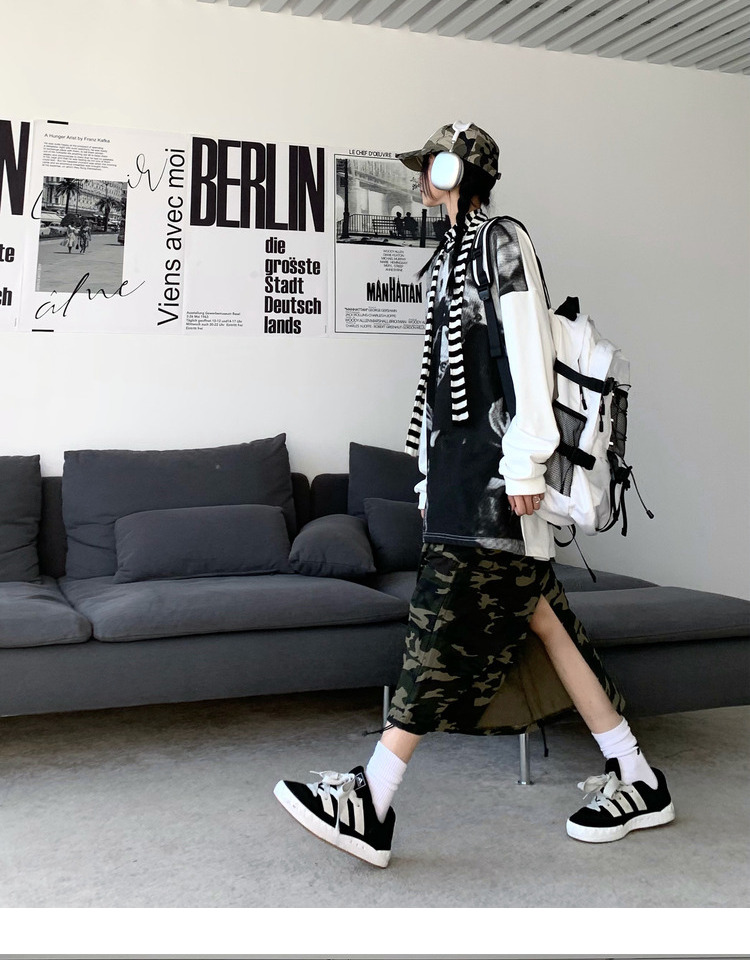ZZHenL 潮牌黑白影印衛衣男拼色圓領寬鬆百搭休閒拼接打底衫情侶