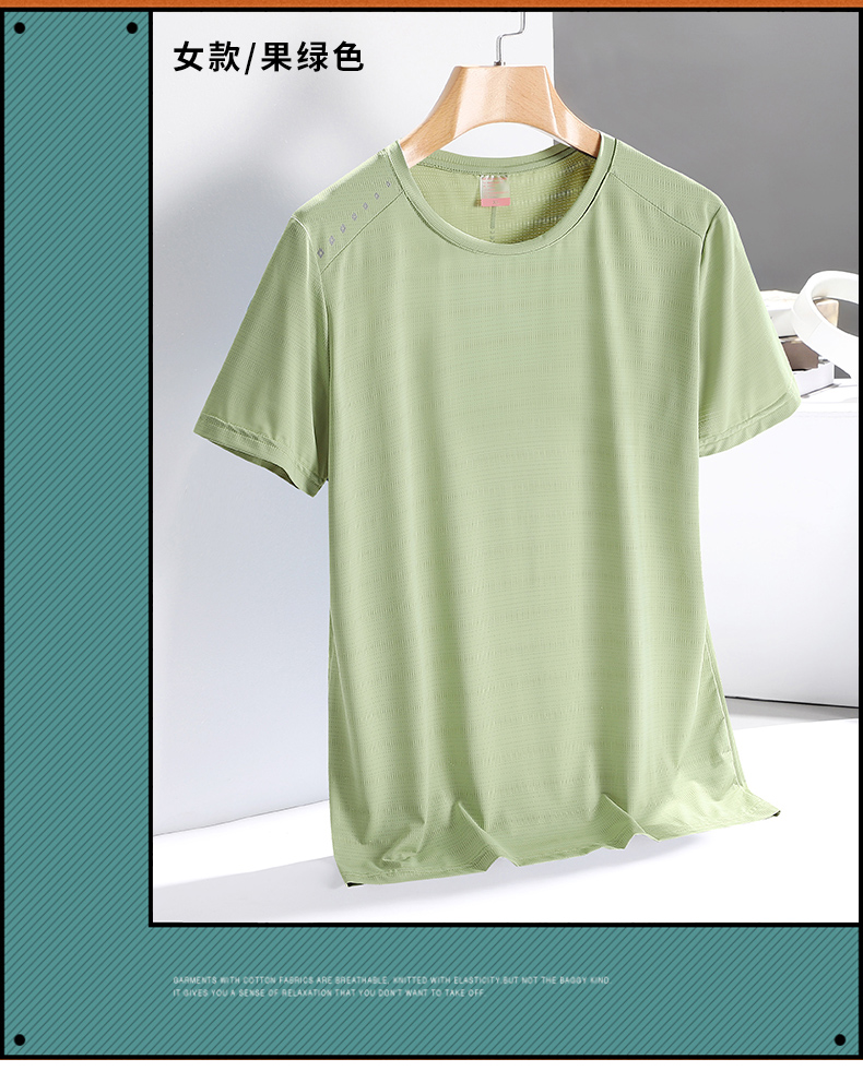 短袖t恤女圓領吸濕速乾運動T恤女裝2022春夏新款冰絲T健身服彈性t