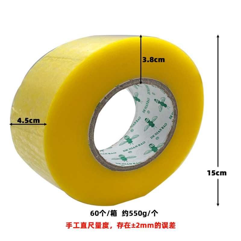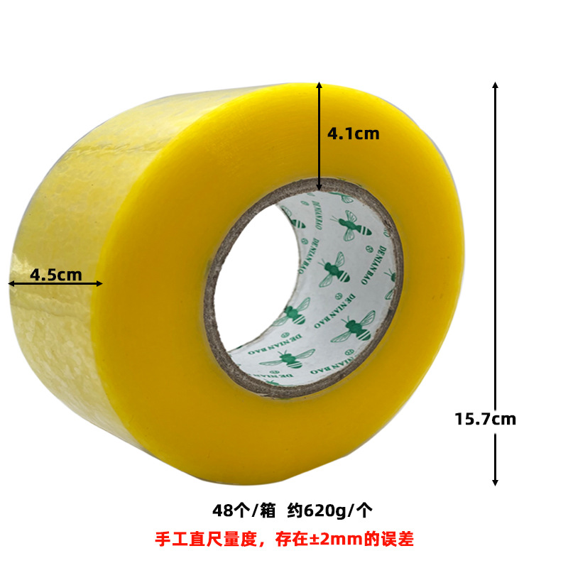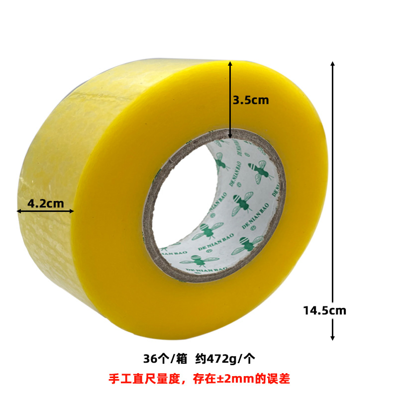 规格 透明【宽4.5*0.85CM厚长38】·整箱180卷,透明【宽4.5*1.05CM厚长50】·整箱144卷,透明【宽4.5*1.2CM厚长60】·整箱144卷,透明【宽4.5*1.5CM厚长75】·整箱144卷,透明【宽4.5*1.8CM厚长100】·整箱120卷,透明【宽4.5*2.3CM厚长130】·整箱90卷,透明【宽4.5*2.8CM厚长170】·整箱80卷,透明【宽4.5*3.2CM厚长220】·整箱72卷,透明【宽4.5*3.8CM厚长300】·整箱60卷,透明【宽4.5*4.1CM厚长350】·整箱48卷,透明【宽4.2*3.2CM厚长220】·整箱72卷,透明【宽4.2*3.5CM厚长260】·整箱36卷,透明【宽5.5*1.8CM厚长100】·整箱100卷,透明【宽5.5*2.3CM厚长130】·整箱85卷,透明【宽5.5*3.0CM厚长190】·整箱60卷,米黄【宽4.5*3.1CM厚长220】·整箱72卷,米黄【宽5.5*2.9CM厚长190】·整箱60卷,米黄【宽5.5*2.2CM厚长130】·整箱85卷