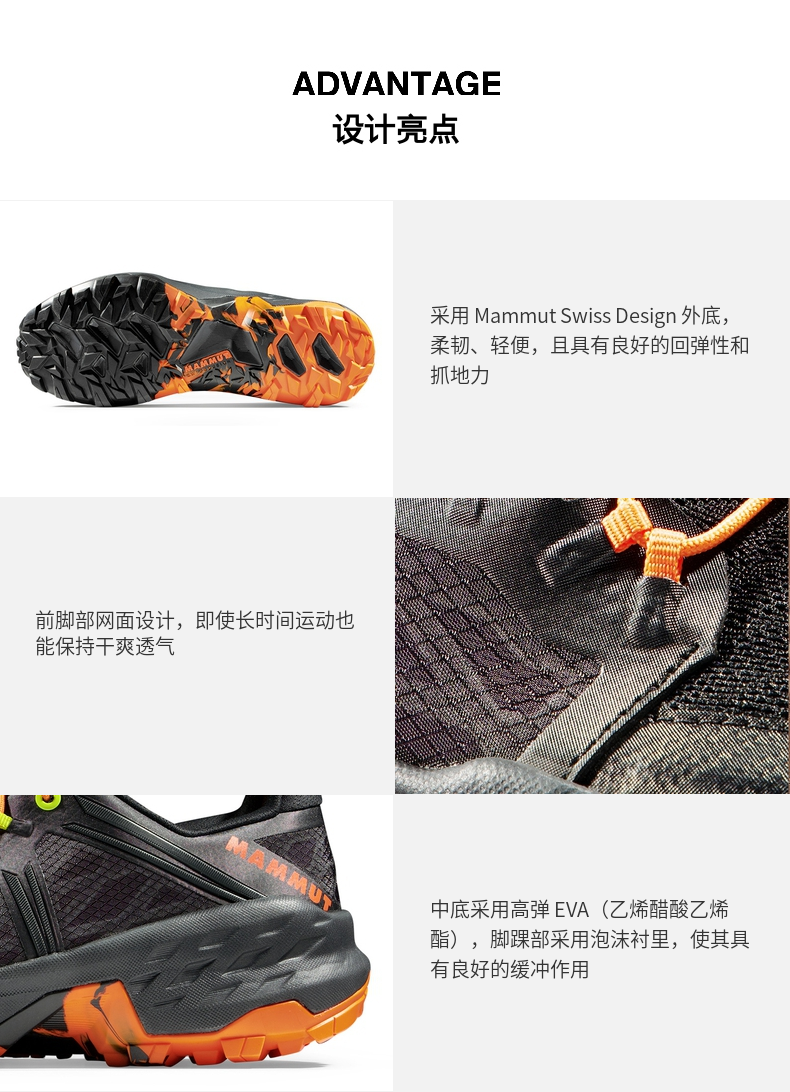 MAMMUT猛獁象Sertig 男士戶外時尚減震舒適低幫越野跑步鞋