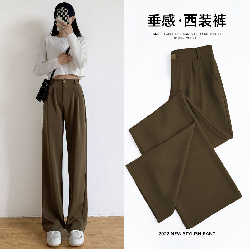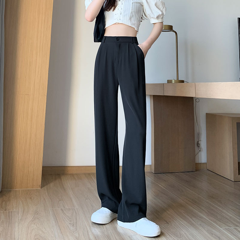 阔腿裤子女夏季垂坠感长裤小个子高腰显瘦宽松直筒拖地裤西装裤