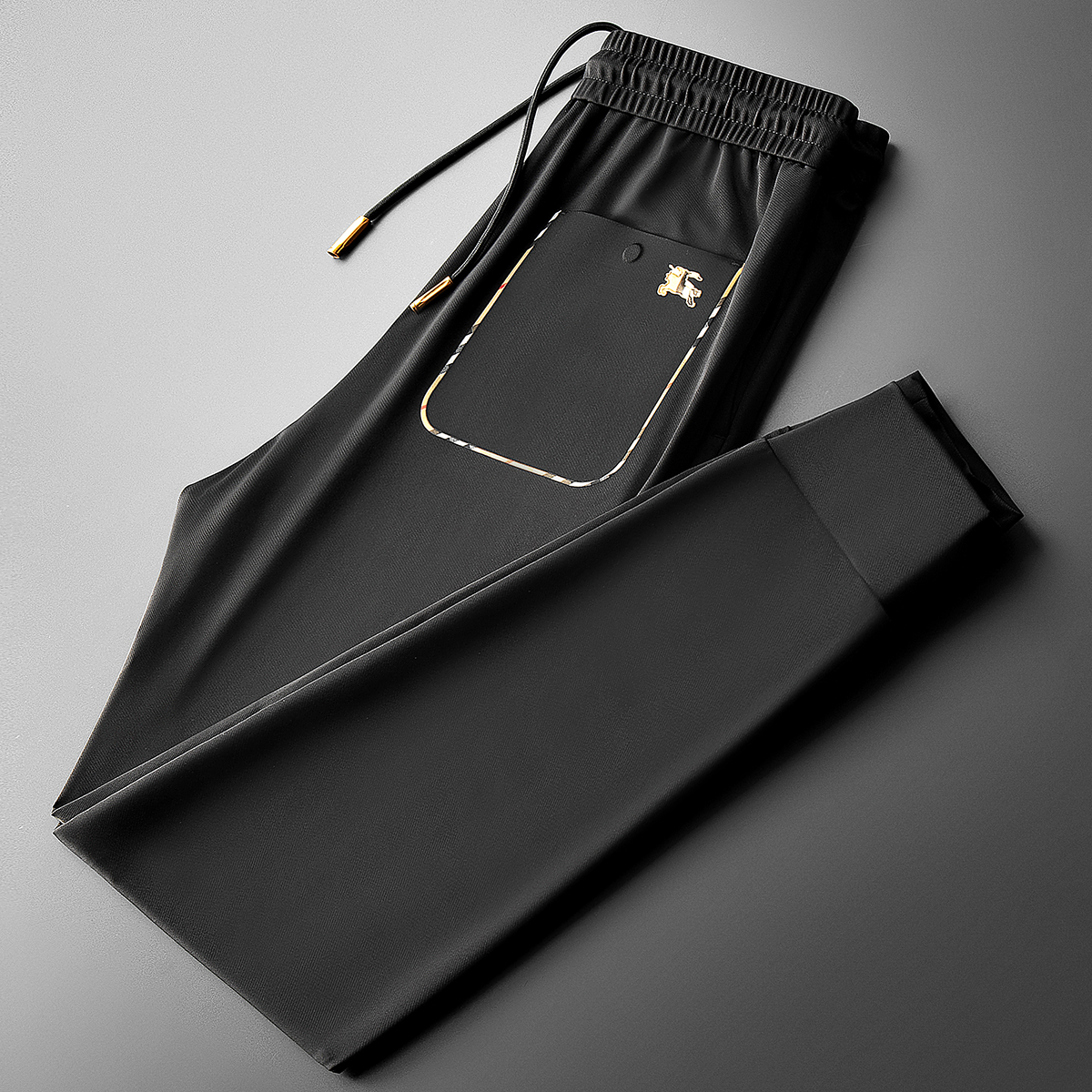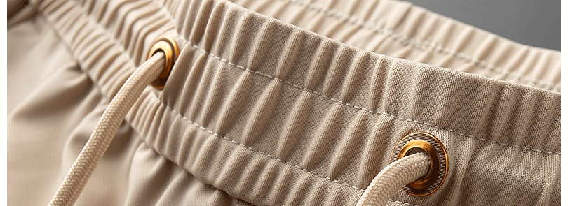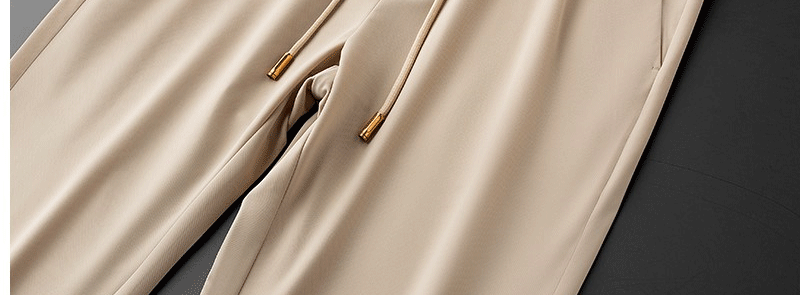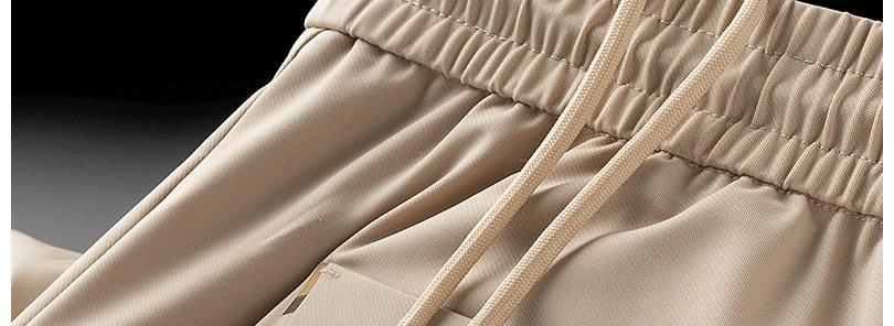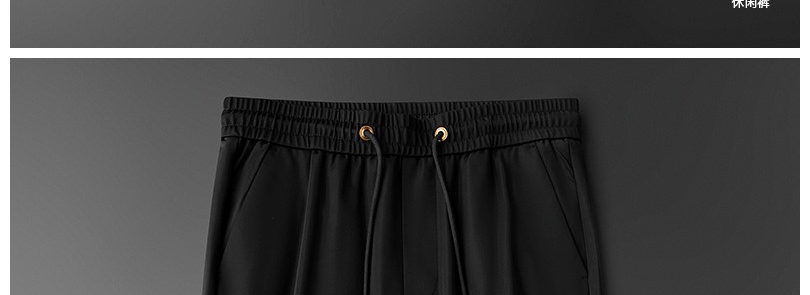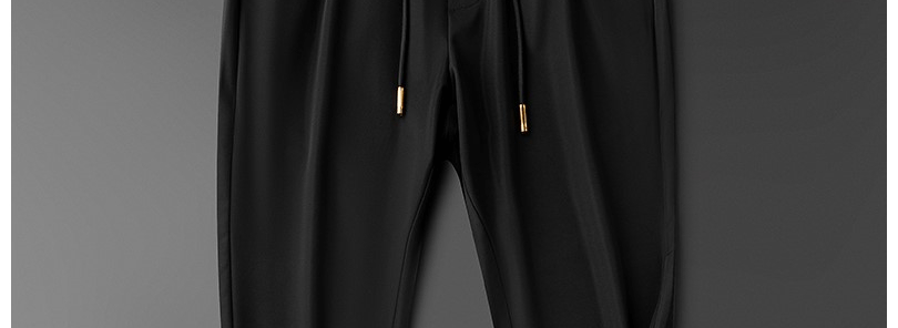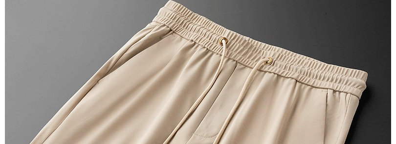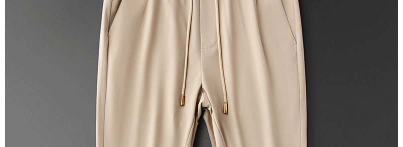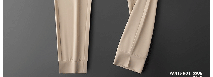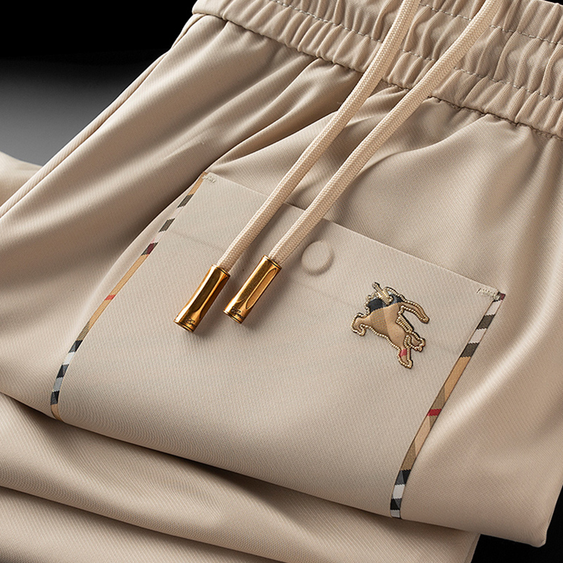 輕奢歐貨冰絲薄款休閒褲夏季戰馬男士修身束腳卡其色運動厚棉褲子潮
