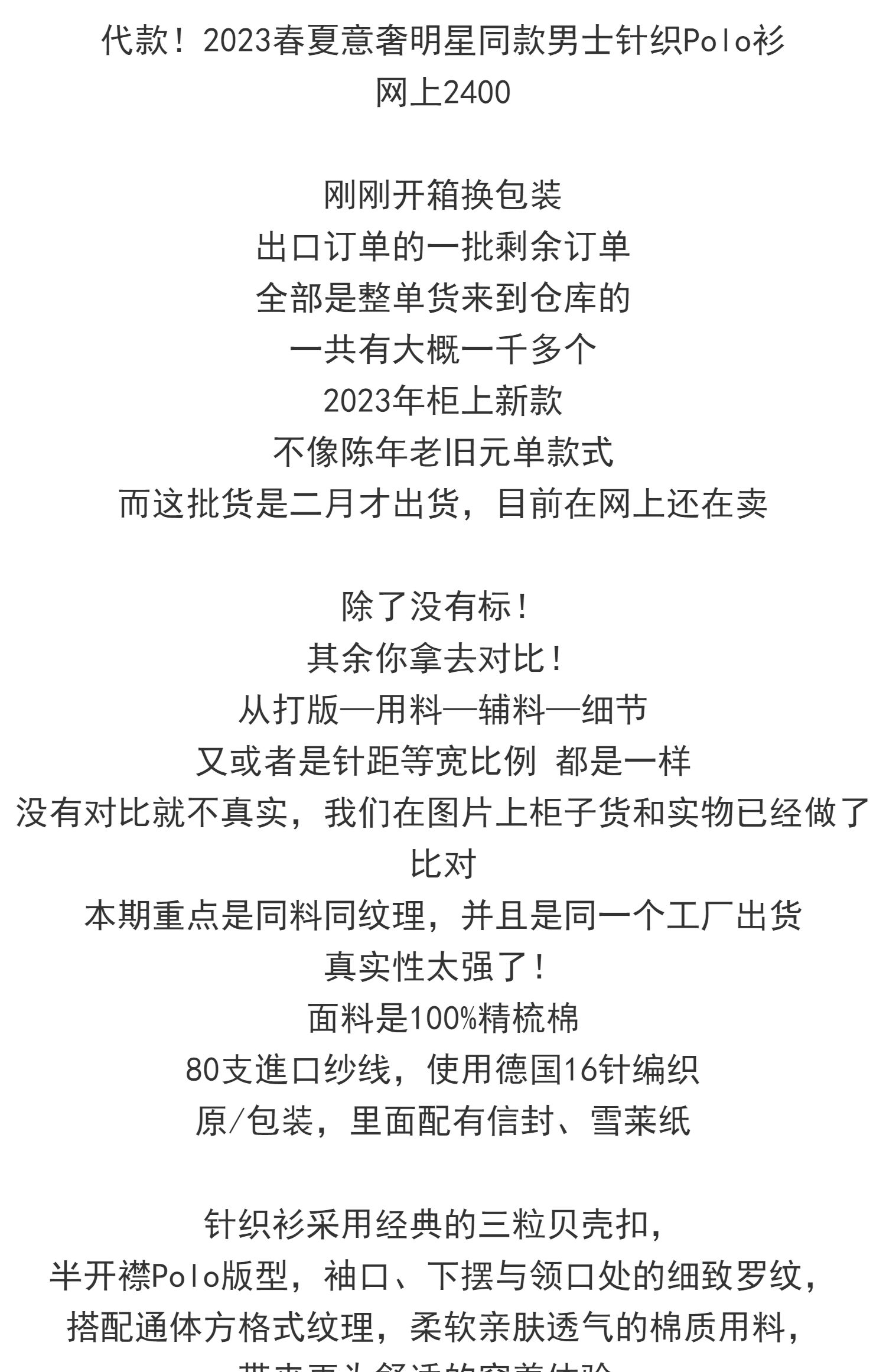 代嚴款!2023春夏意奢!櫃上2400!男士針織POLO衫