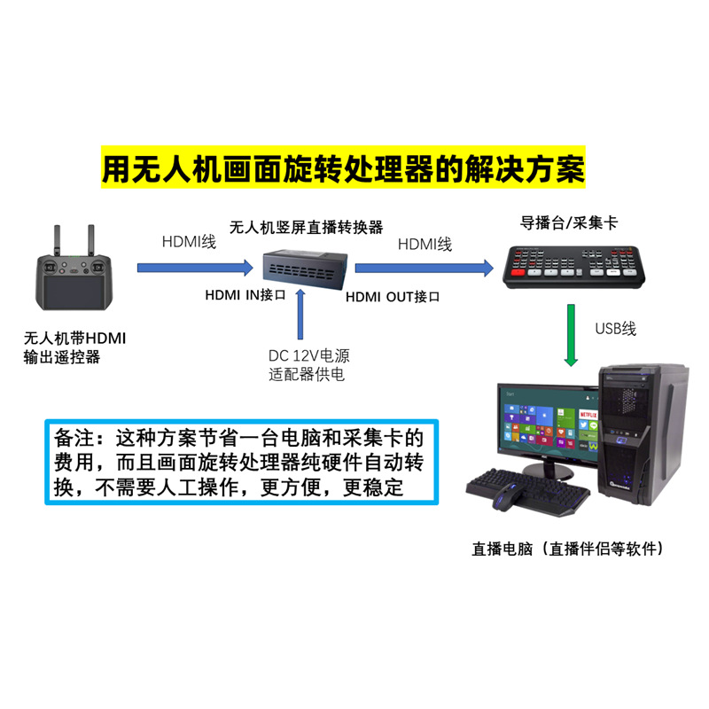 mini3pro无人机横屏转竖屏转换器90度旋转进导播台抖音直播技术