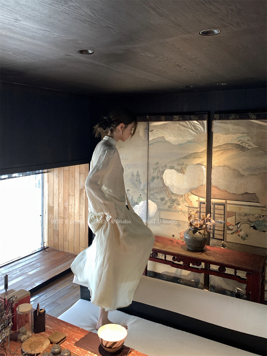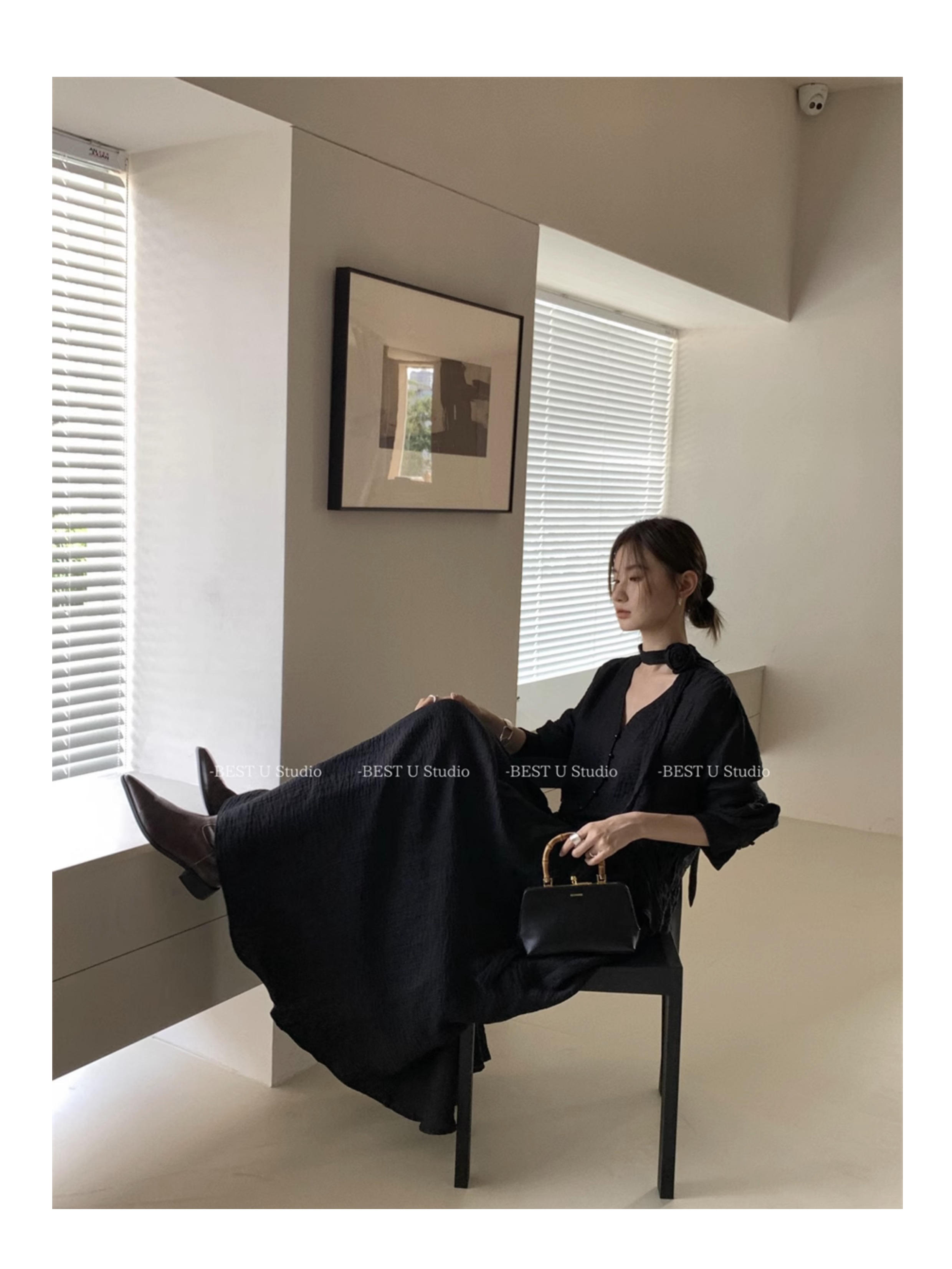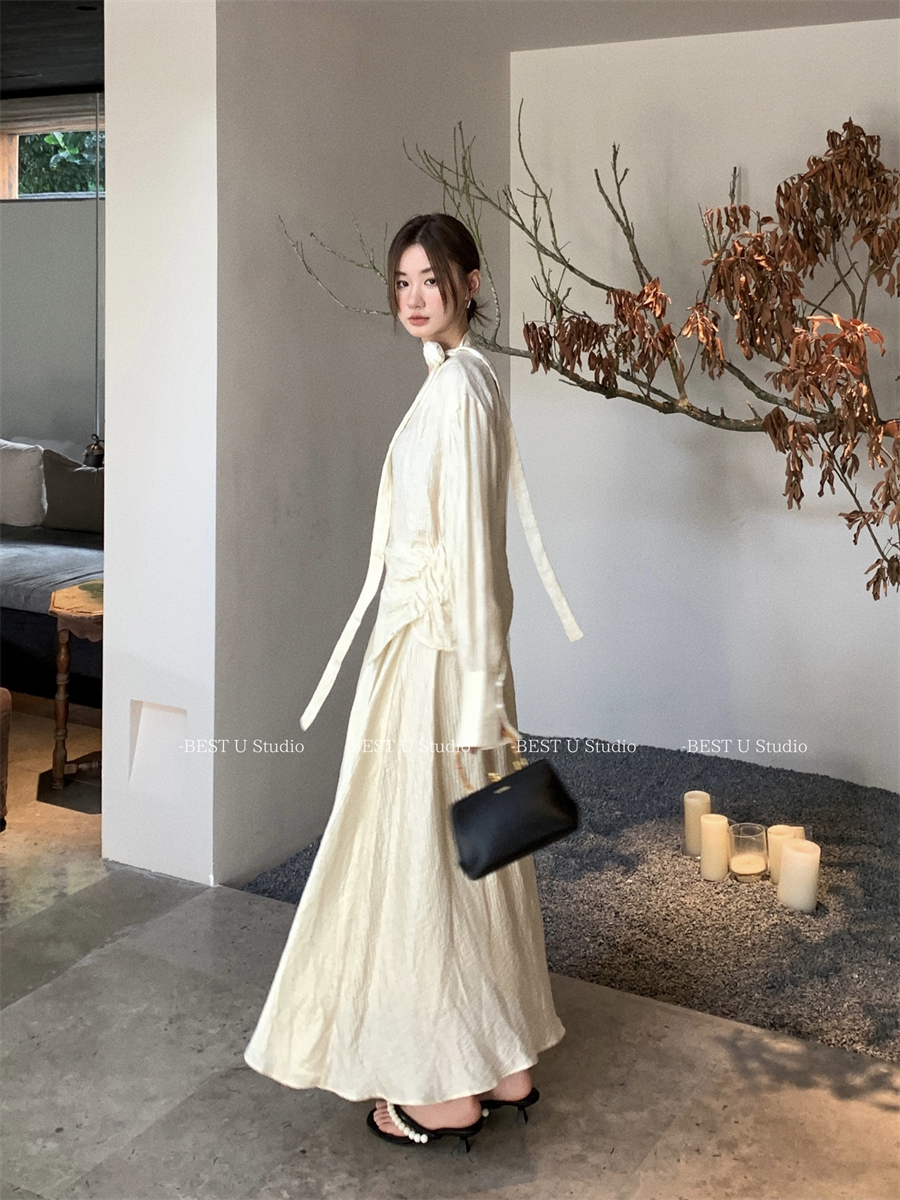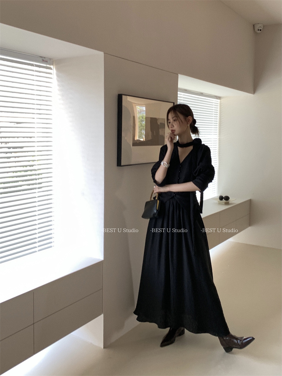 Best U新中式禪意純色褶皺半身裙女秋冬新款百搭顯瘦百褶長版裙子
