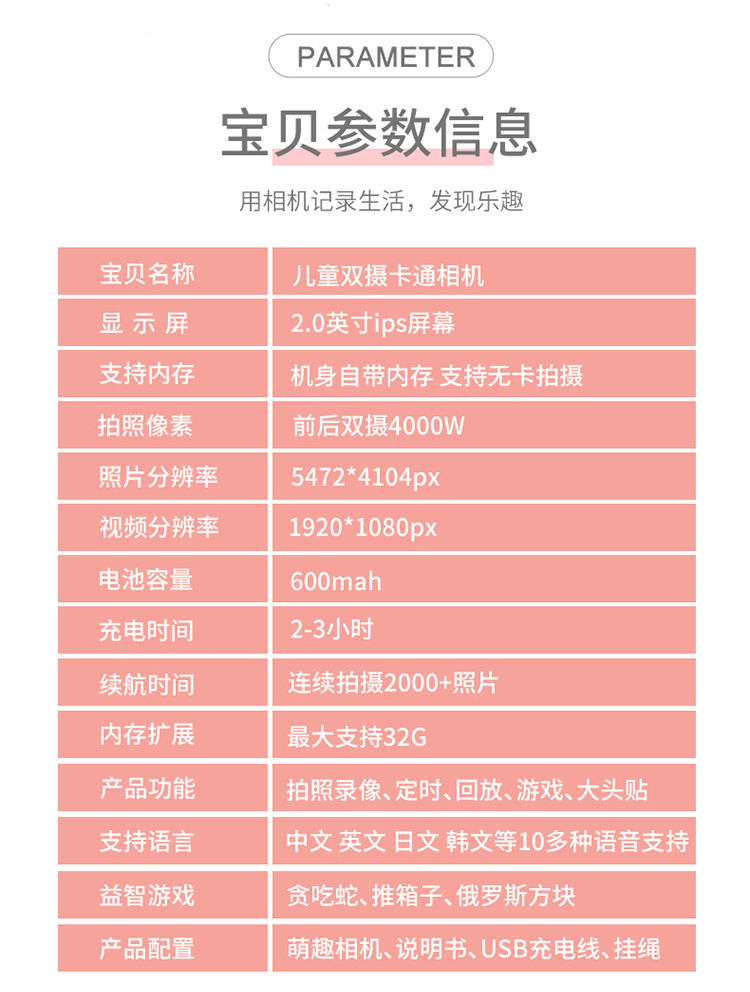 型号 儿童相机