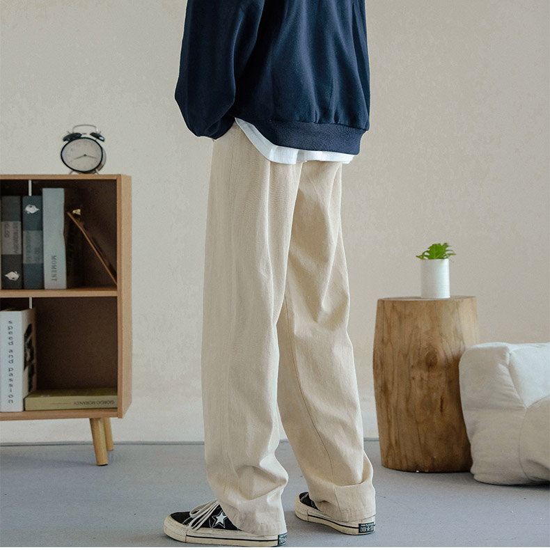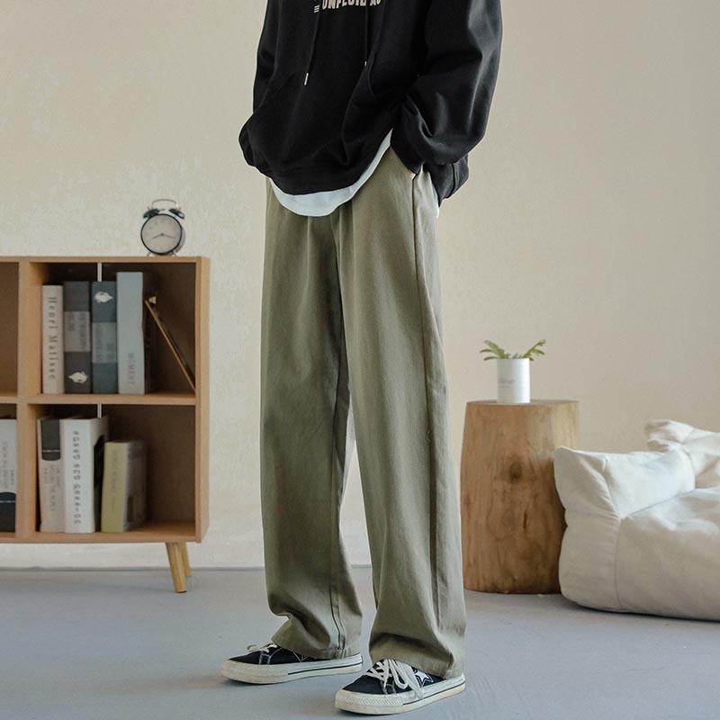 日系褲子女春秋季2023新款直筒寬鬆闊腿褲垂感休閒長褲子夏季薄款
