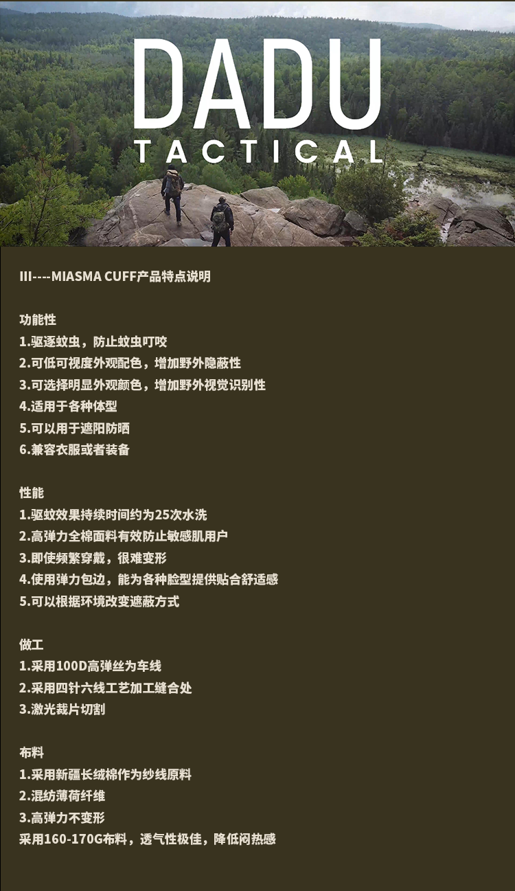 DADU瘴氣系列防曬驅蚊戰術袖套戶外露營半臉頭套