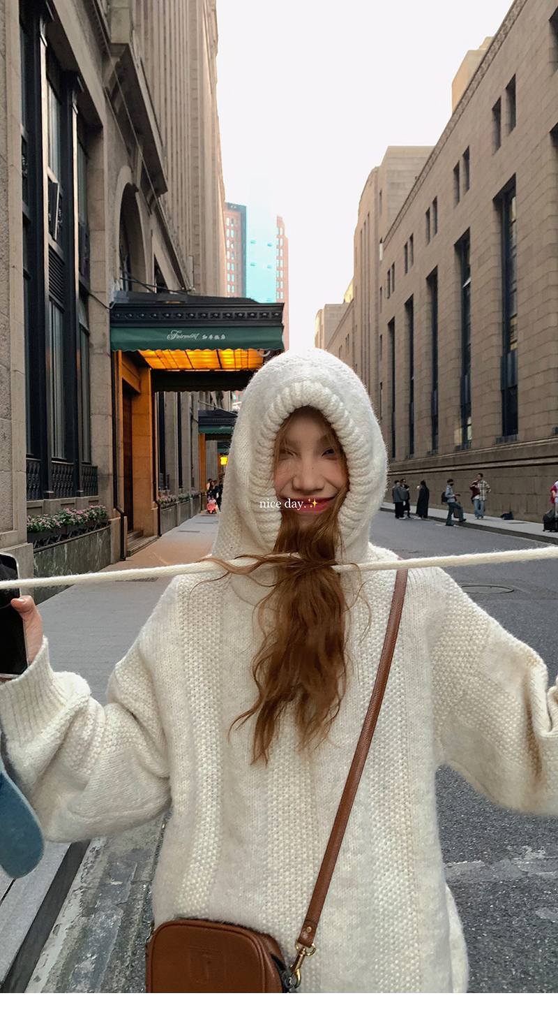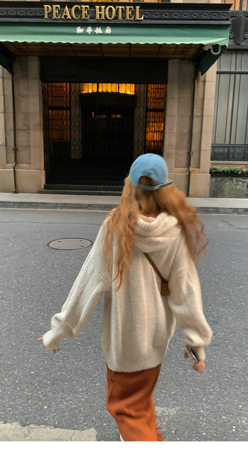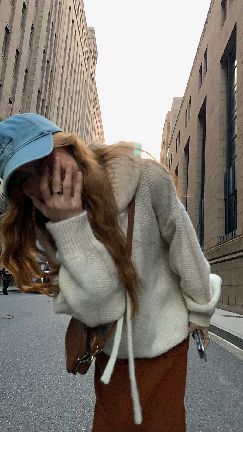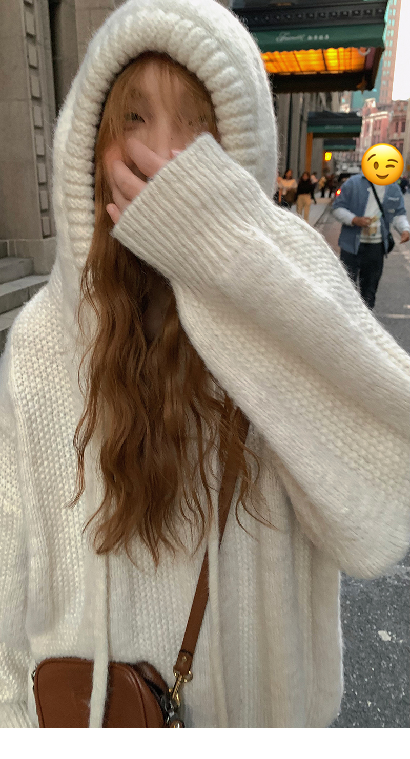 滷滷lulu 820克重長毛款連帽毛衣女冬寬鬆百搭慵懶風套頭毛針織衫